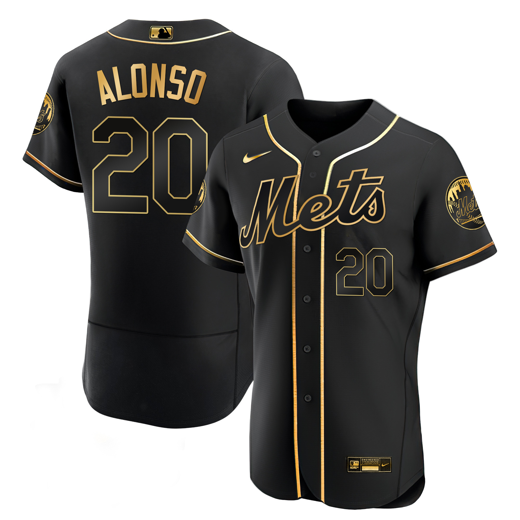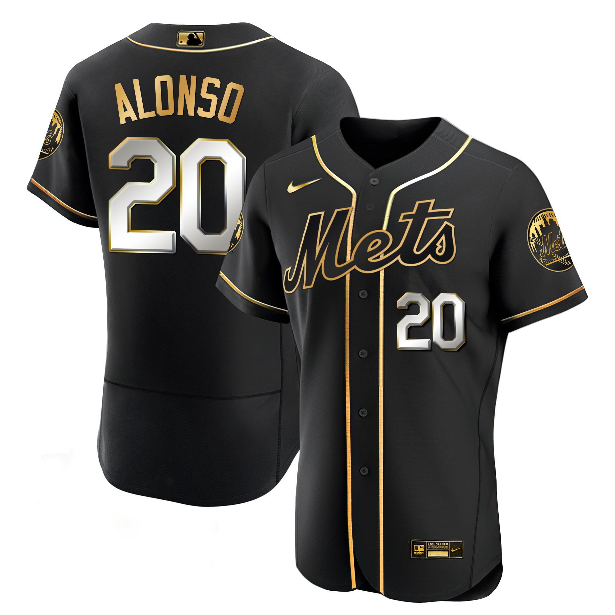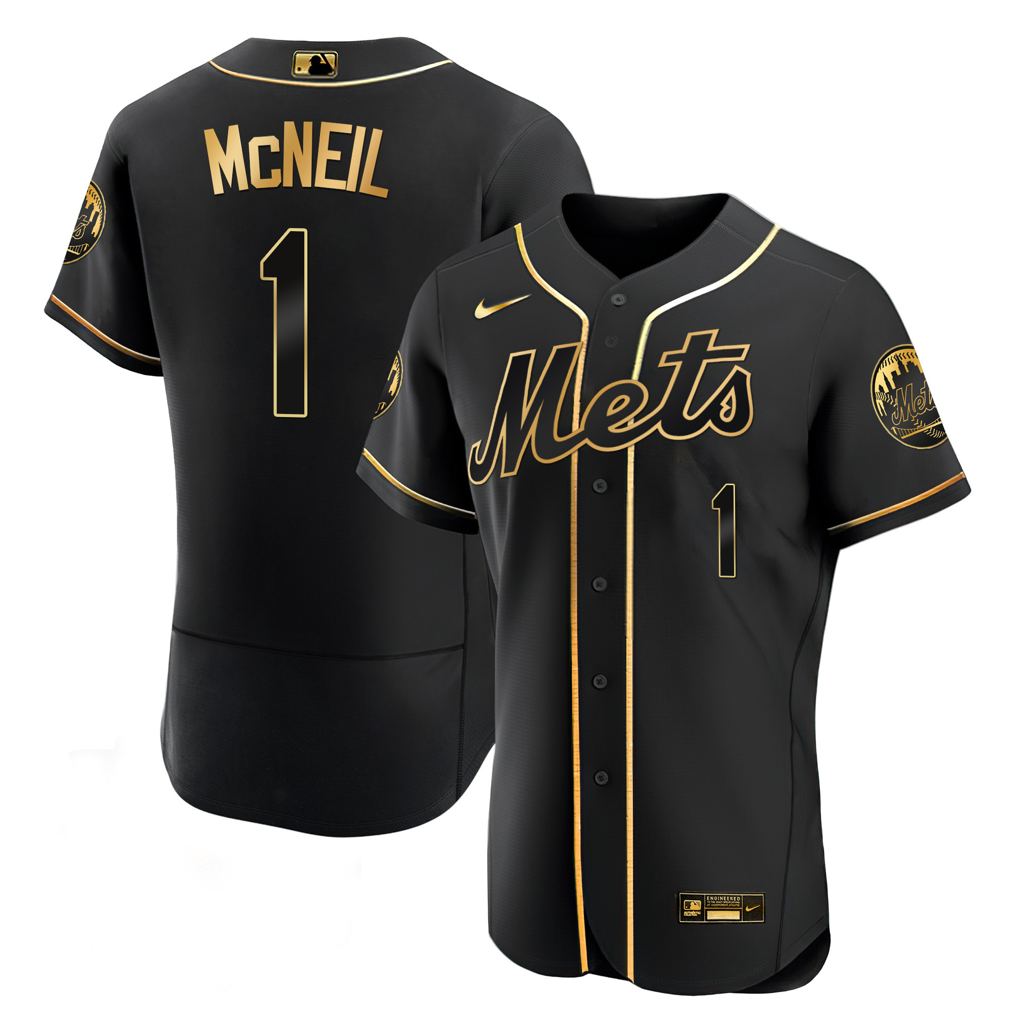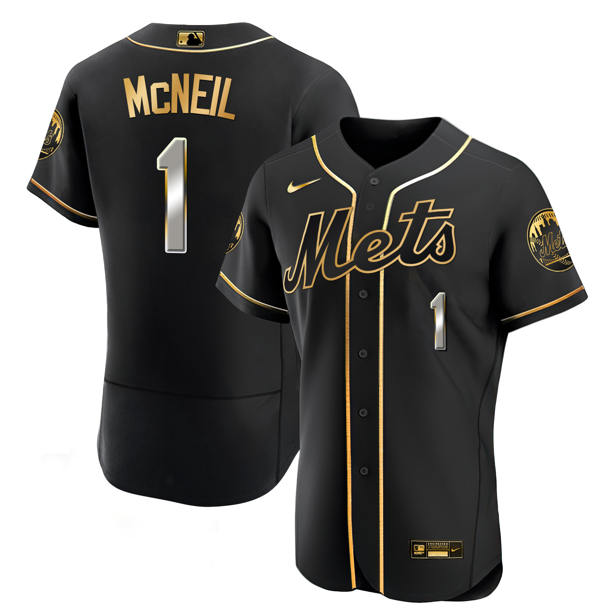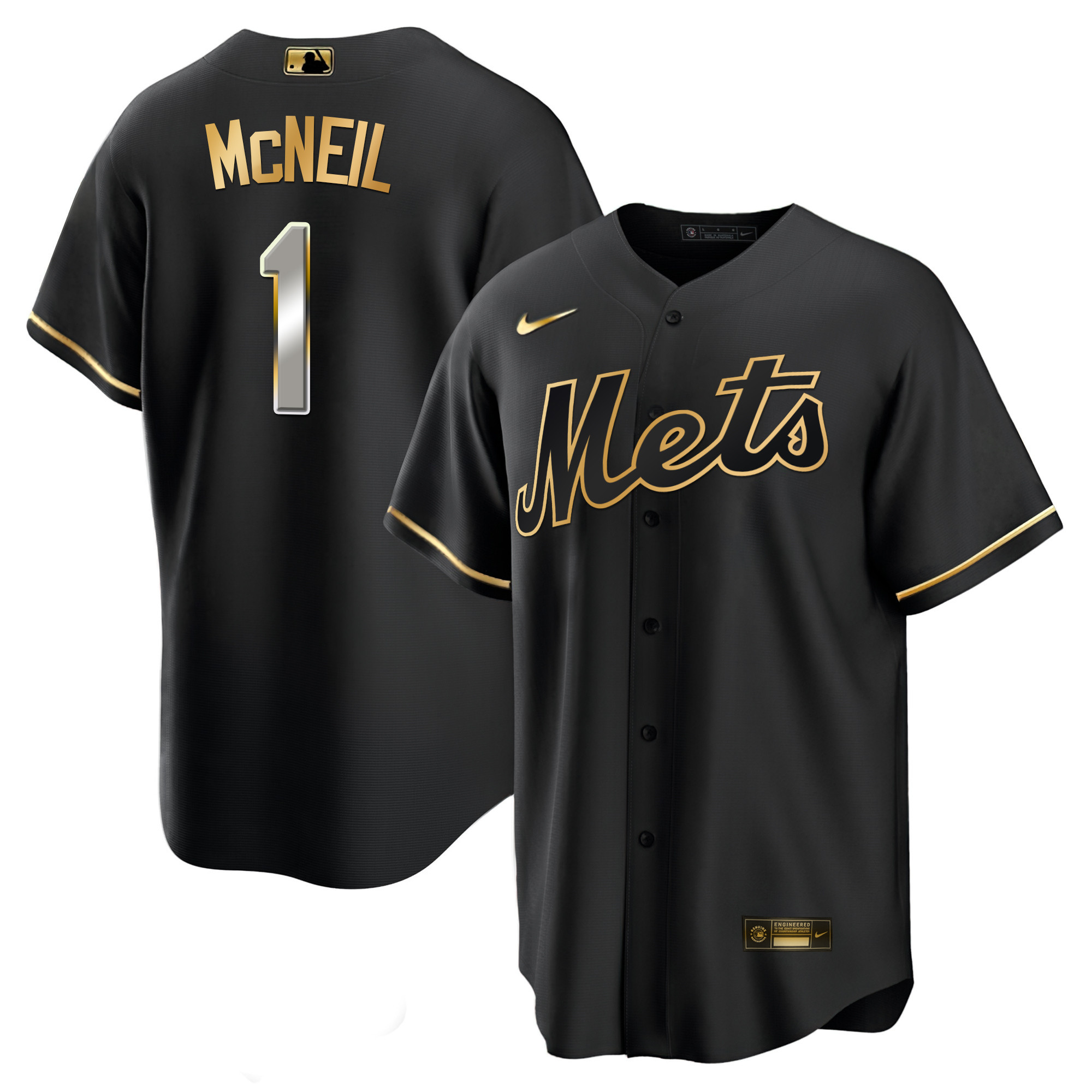 Men’s New York Mets Black Limited & Gold Jersey – All Stitched