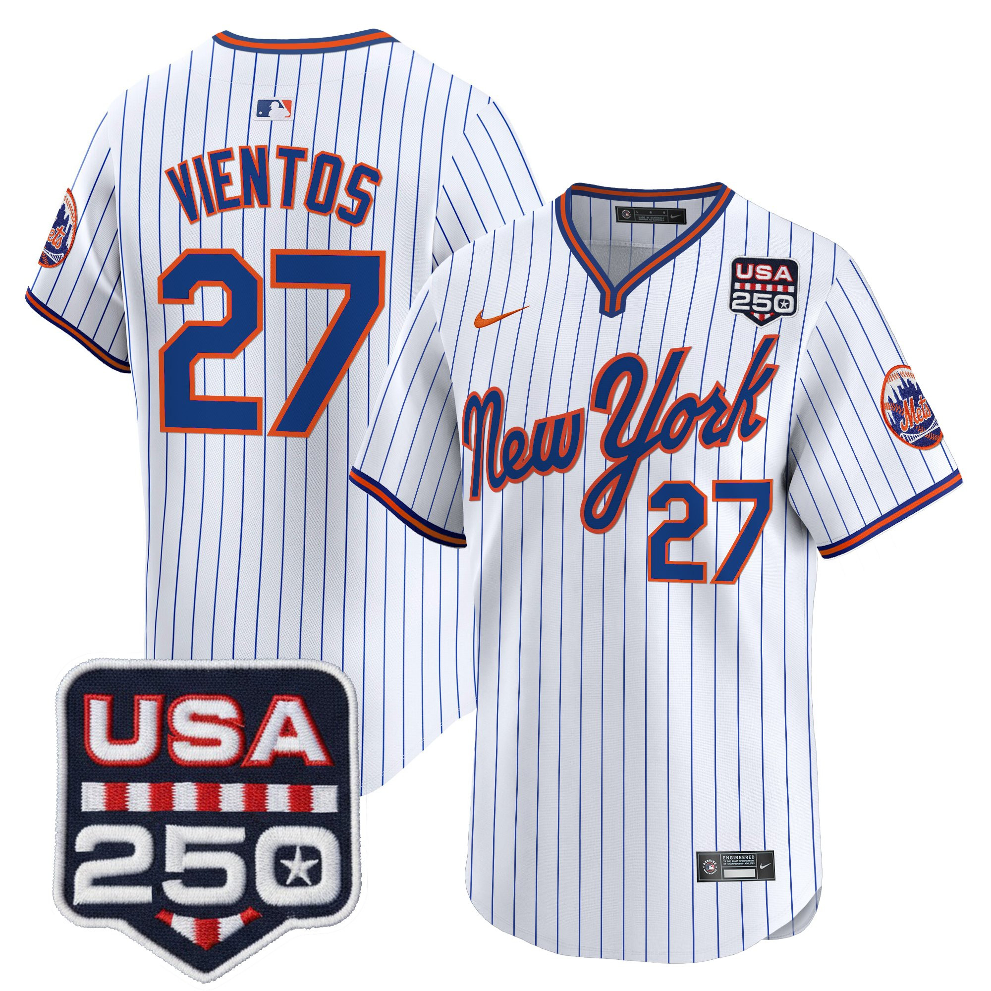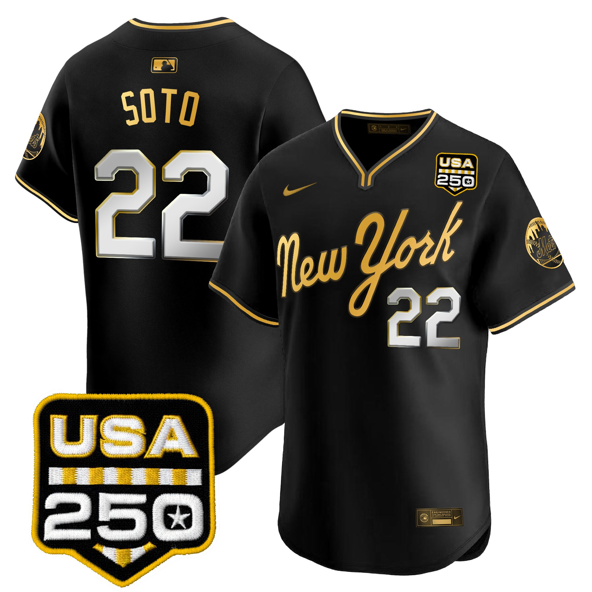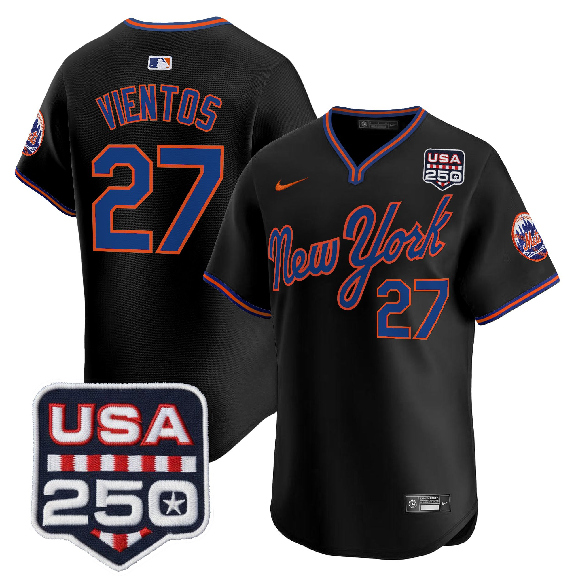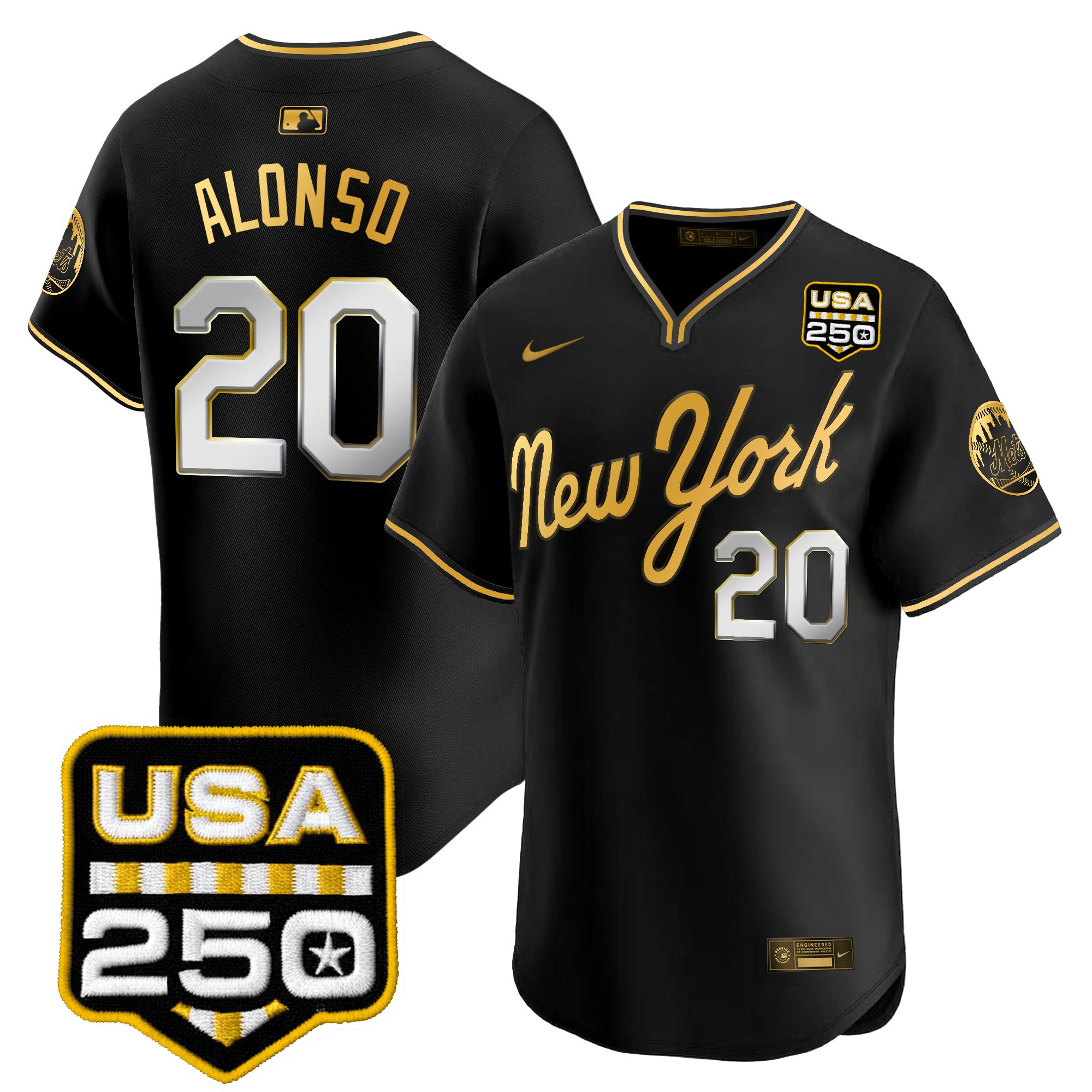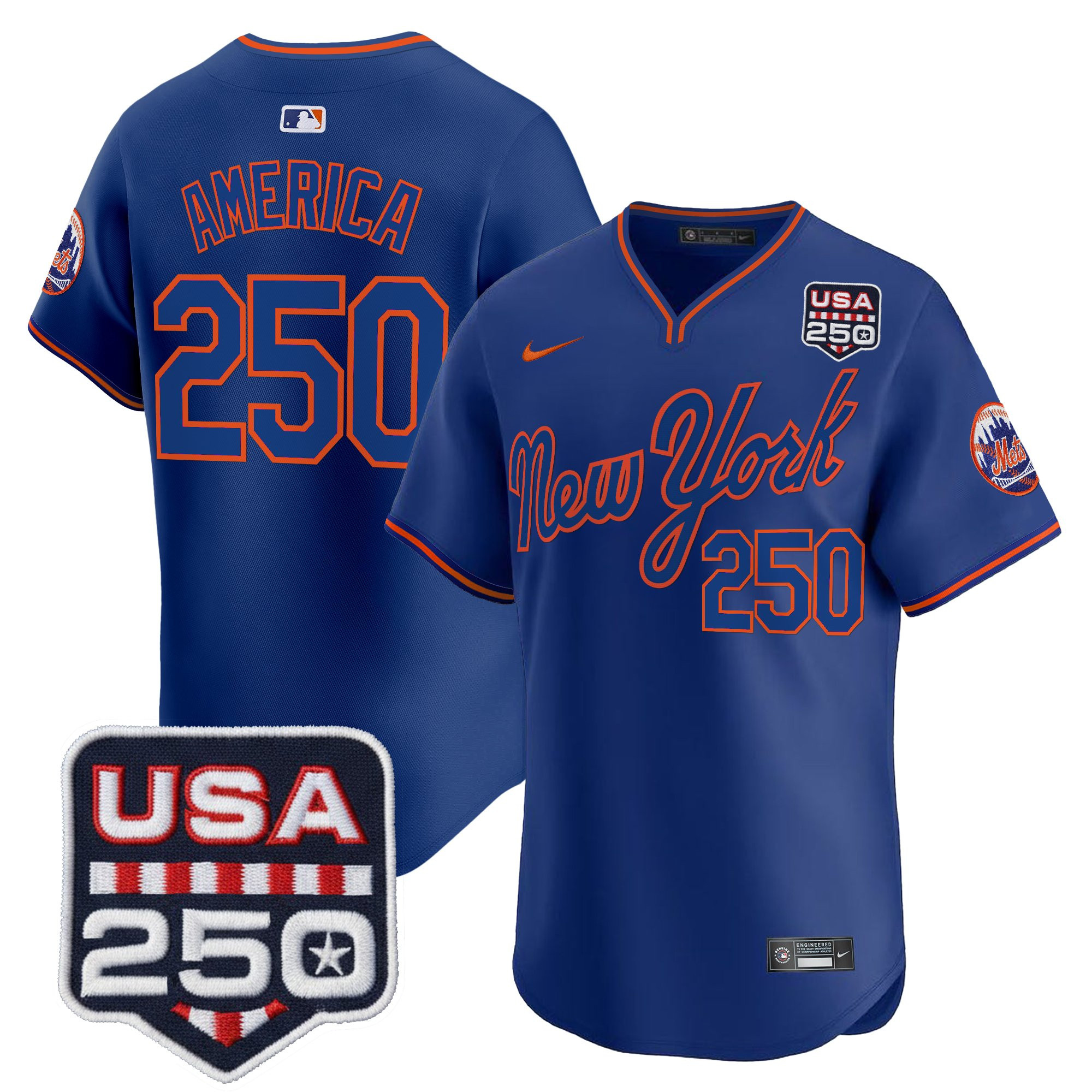 Men’s New York Mets Road Alternate & 250America Patch Vapor Limited Jersey – All Stitched