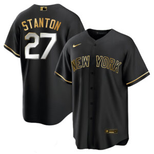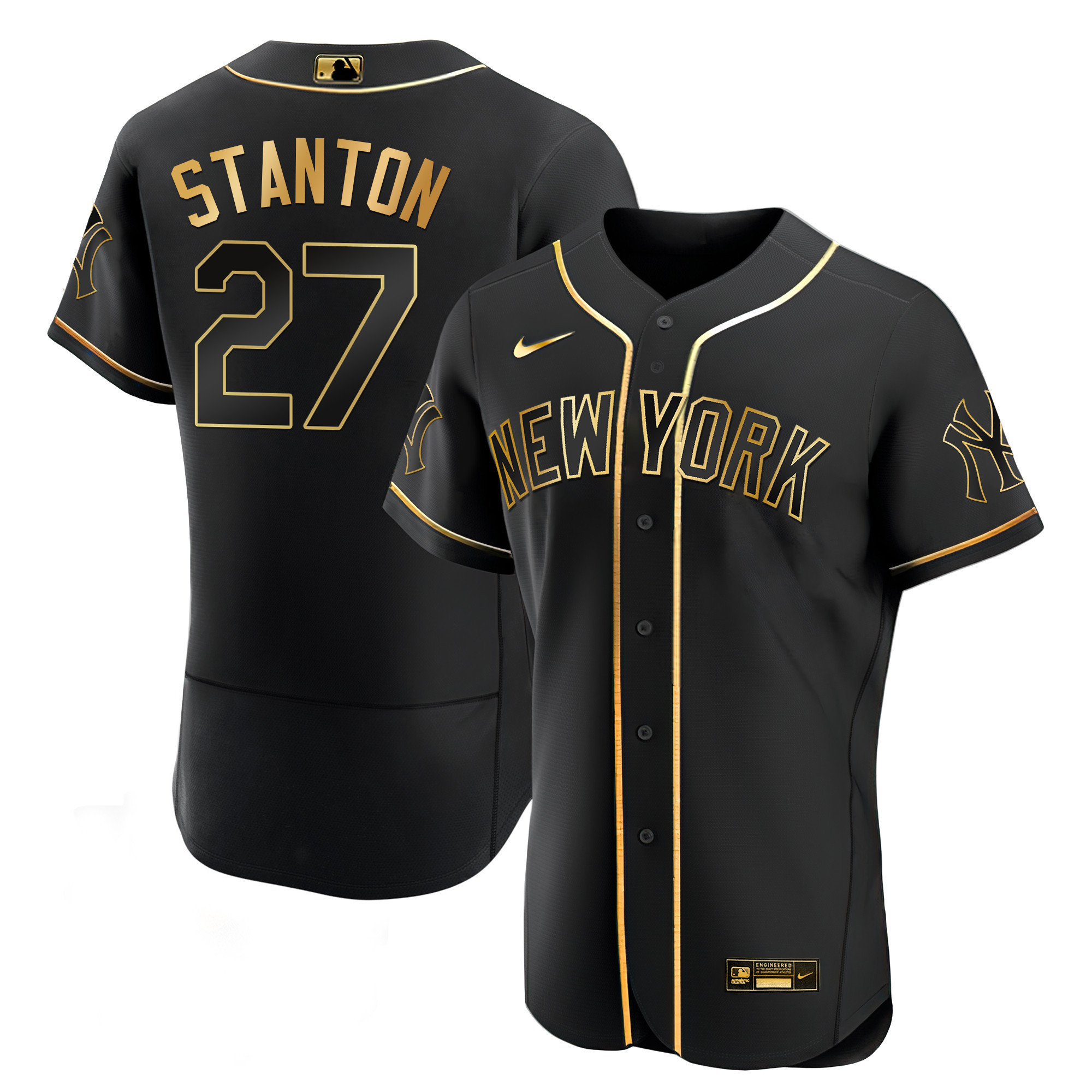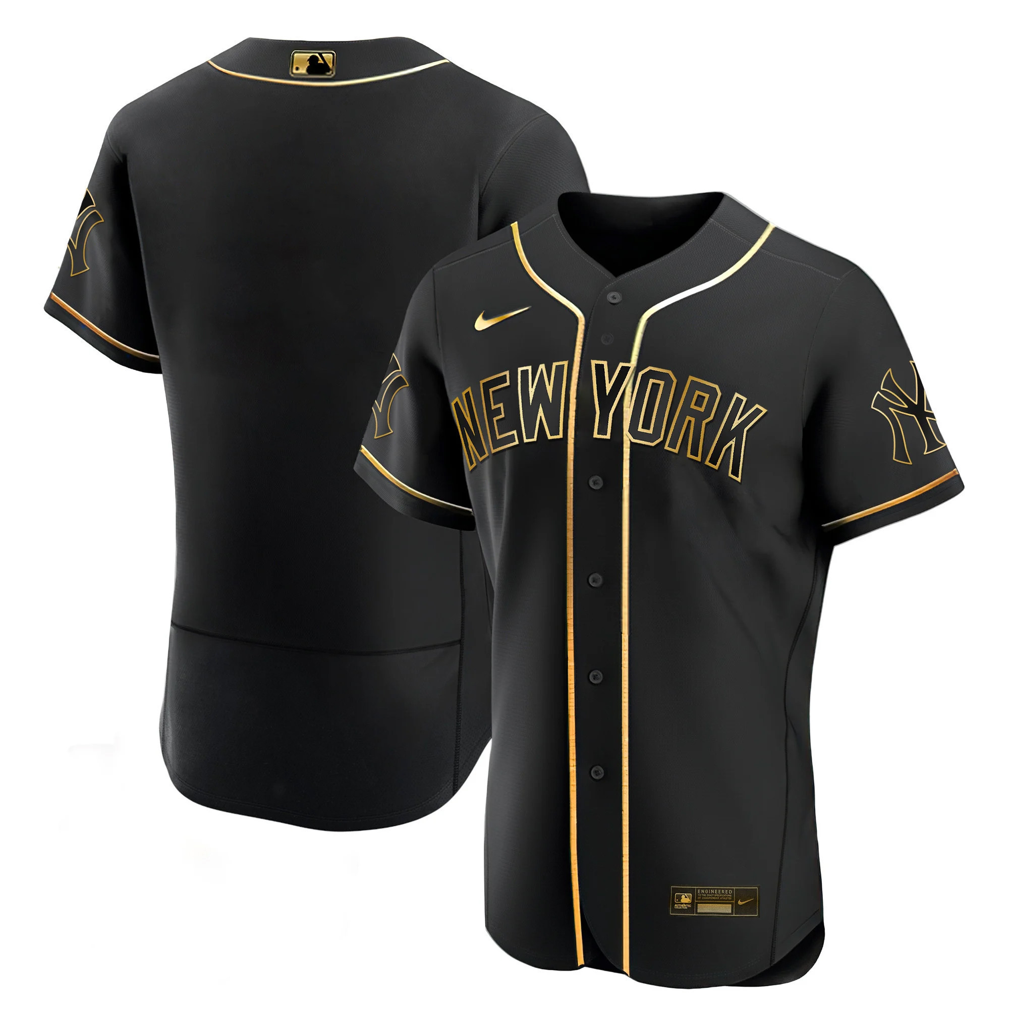 Men’s New York Yankees Black Limited & Gold Jersey – All Stitched