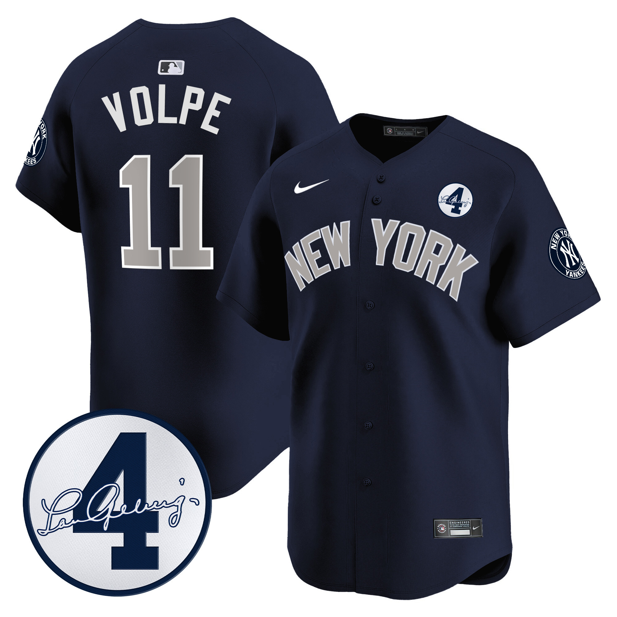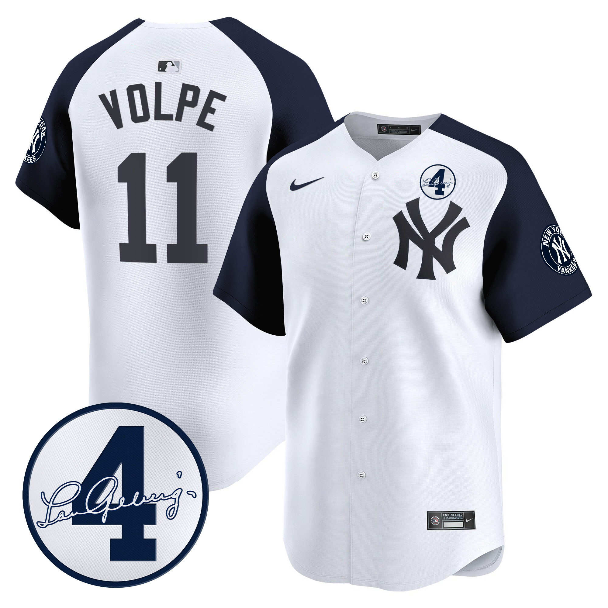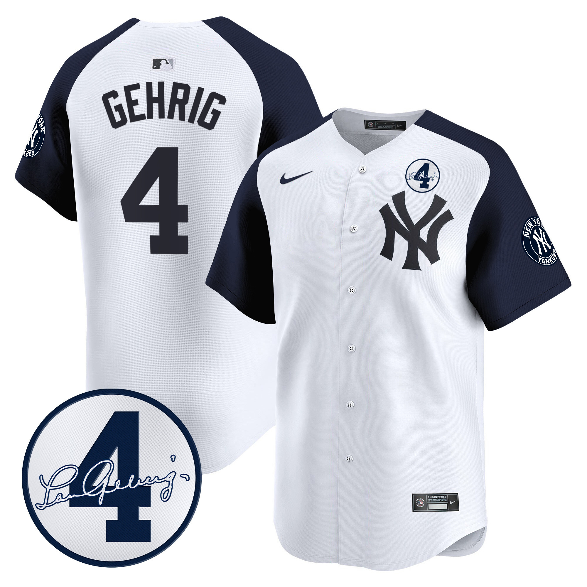 Men’s New York Yankees Lou Gehrig Patch Vapor Premier Limited Jersey – All Stitched