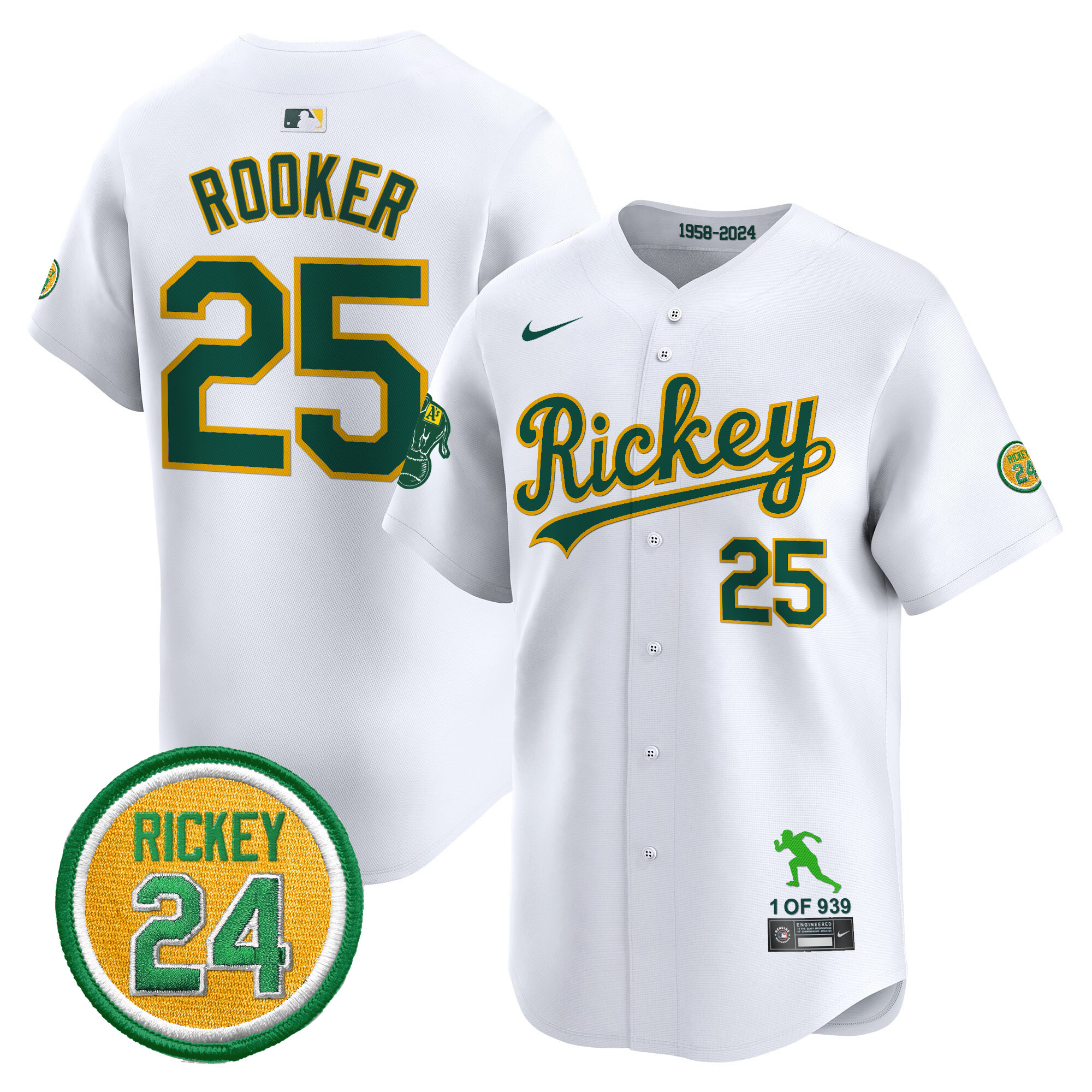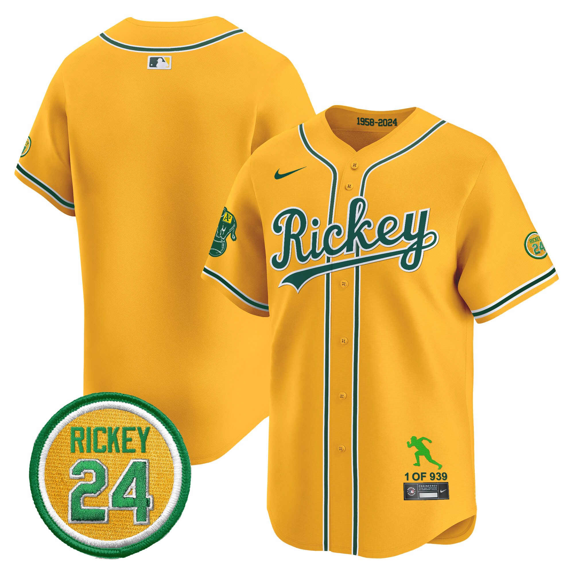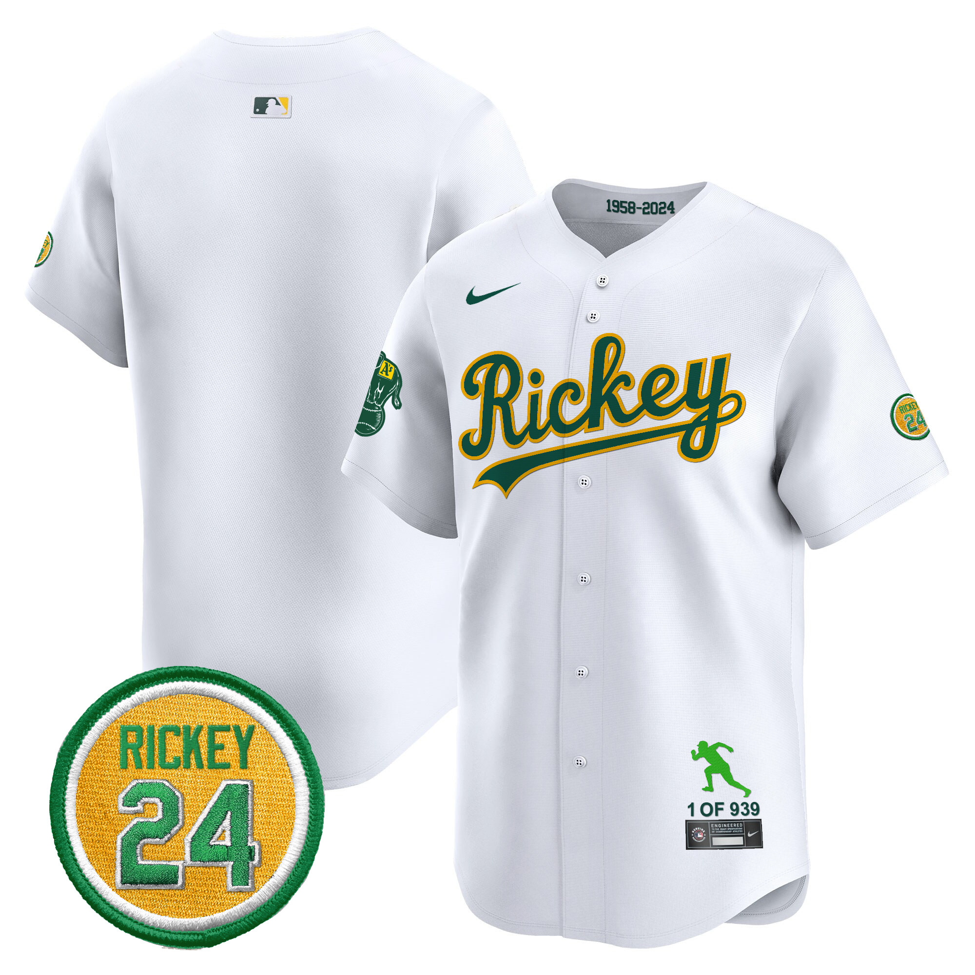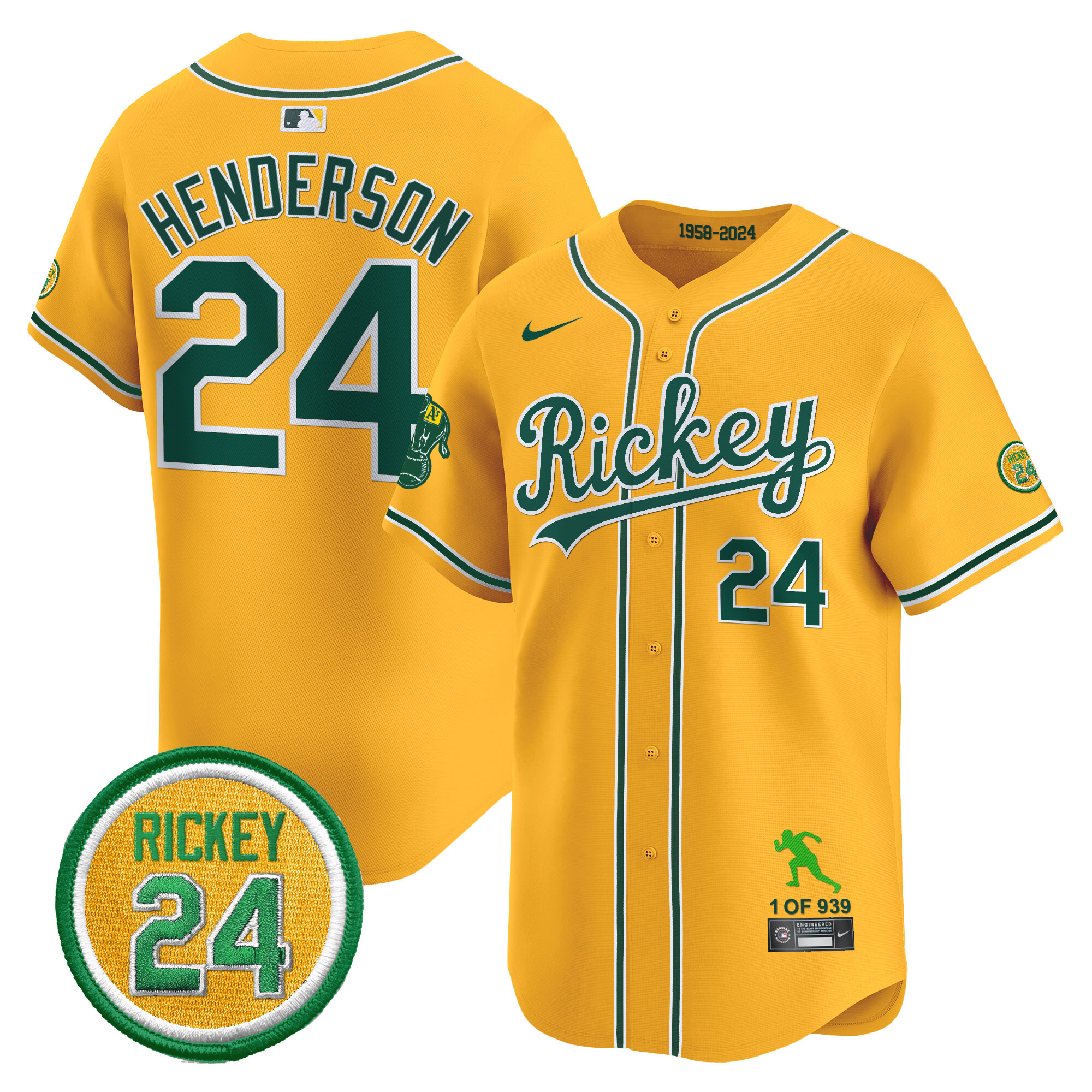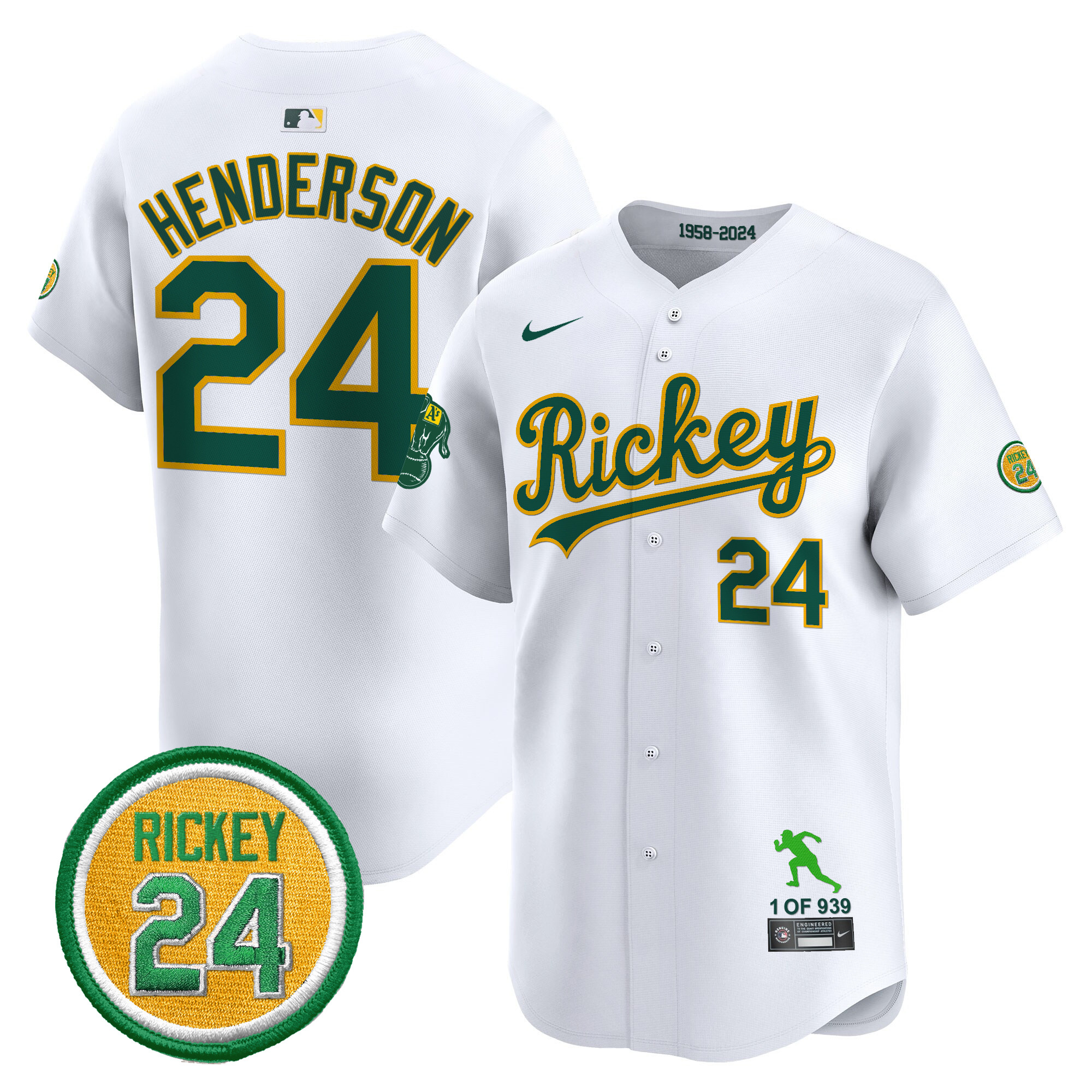 Men’s Oakland Athletics Rickey Tribute style Vapor Premier Limited Jersey – All Stitched