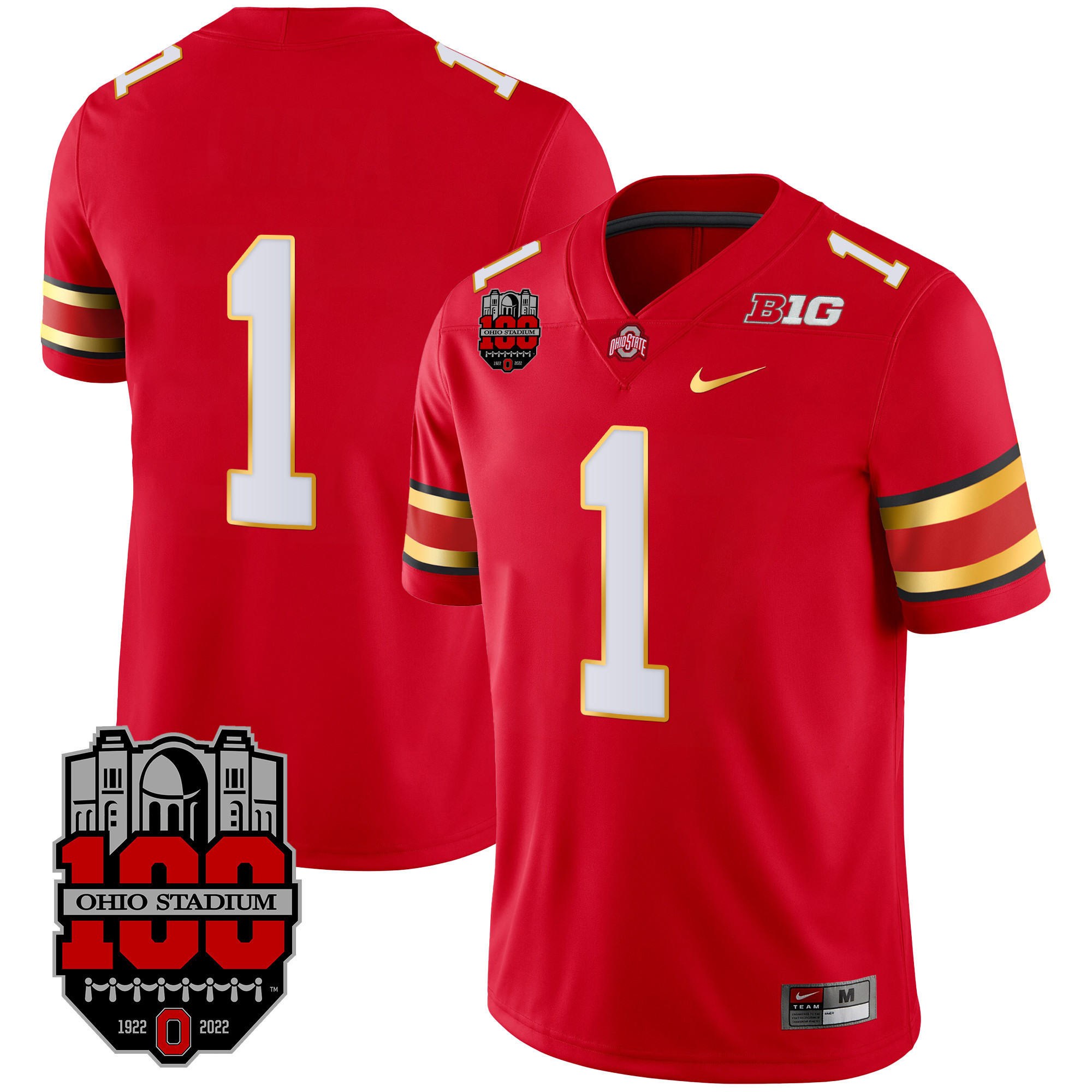 Men’s Ohio State Buckeyes Gold Trim Jersey – All Stitched