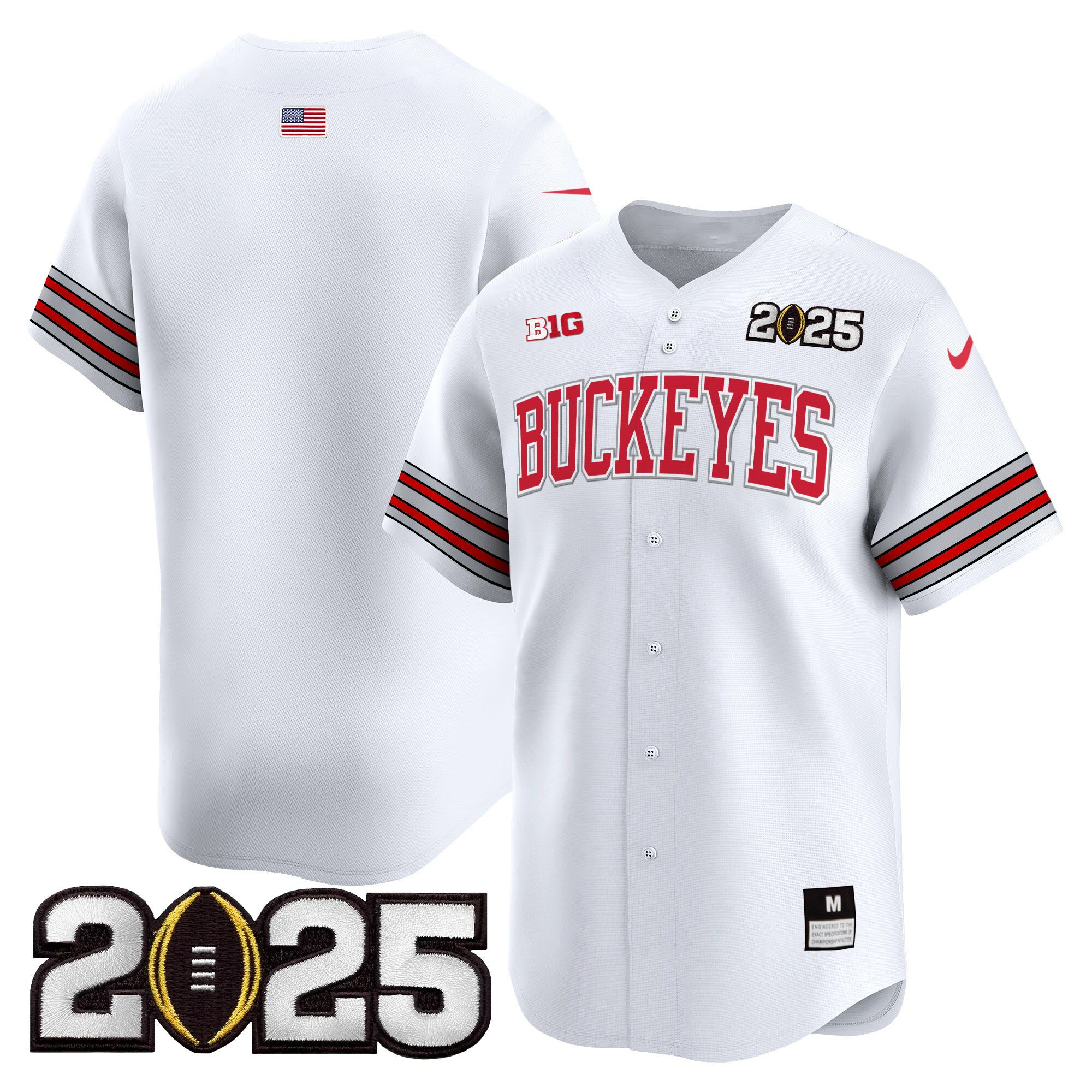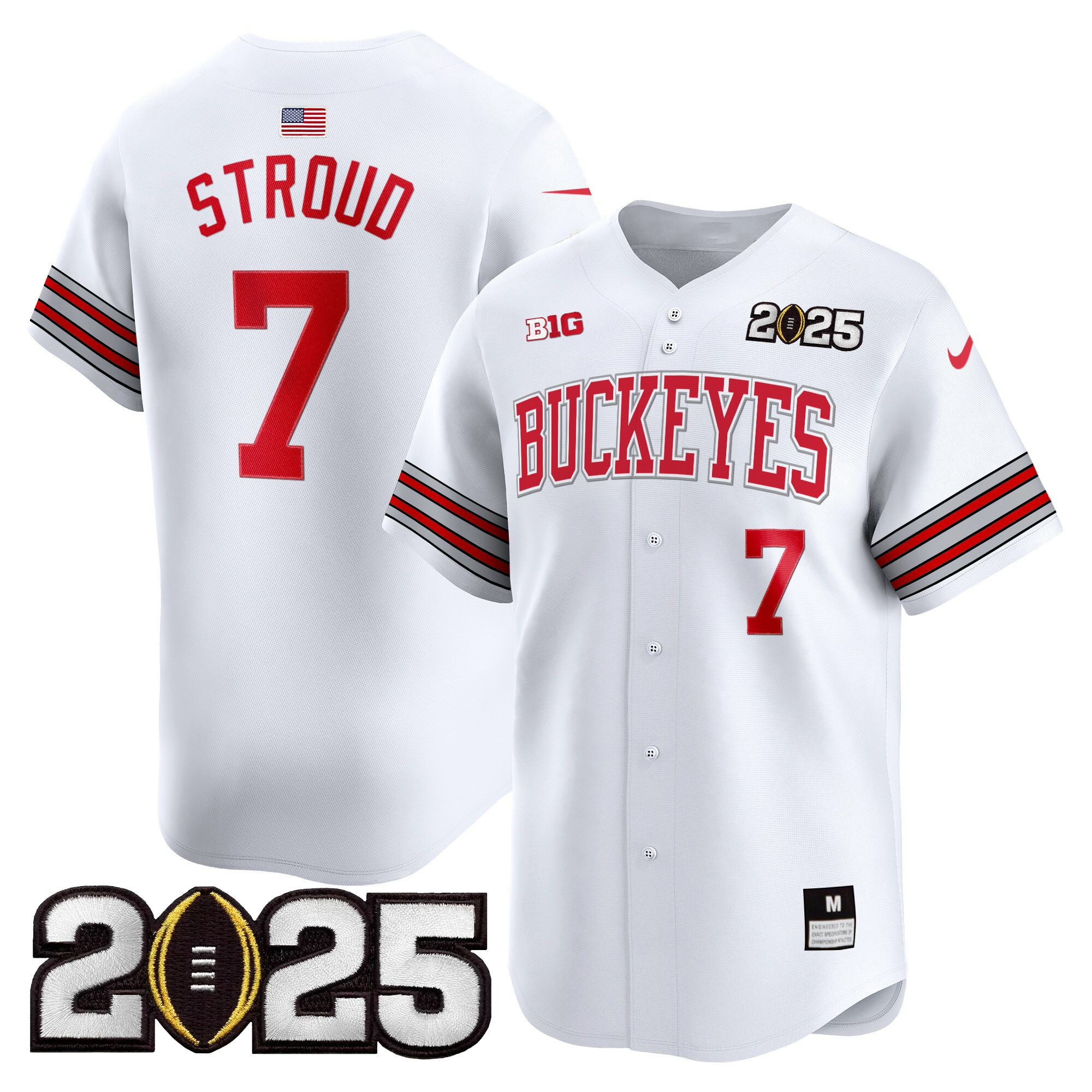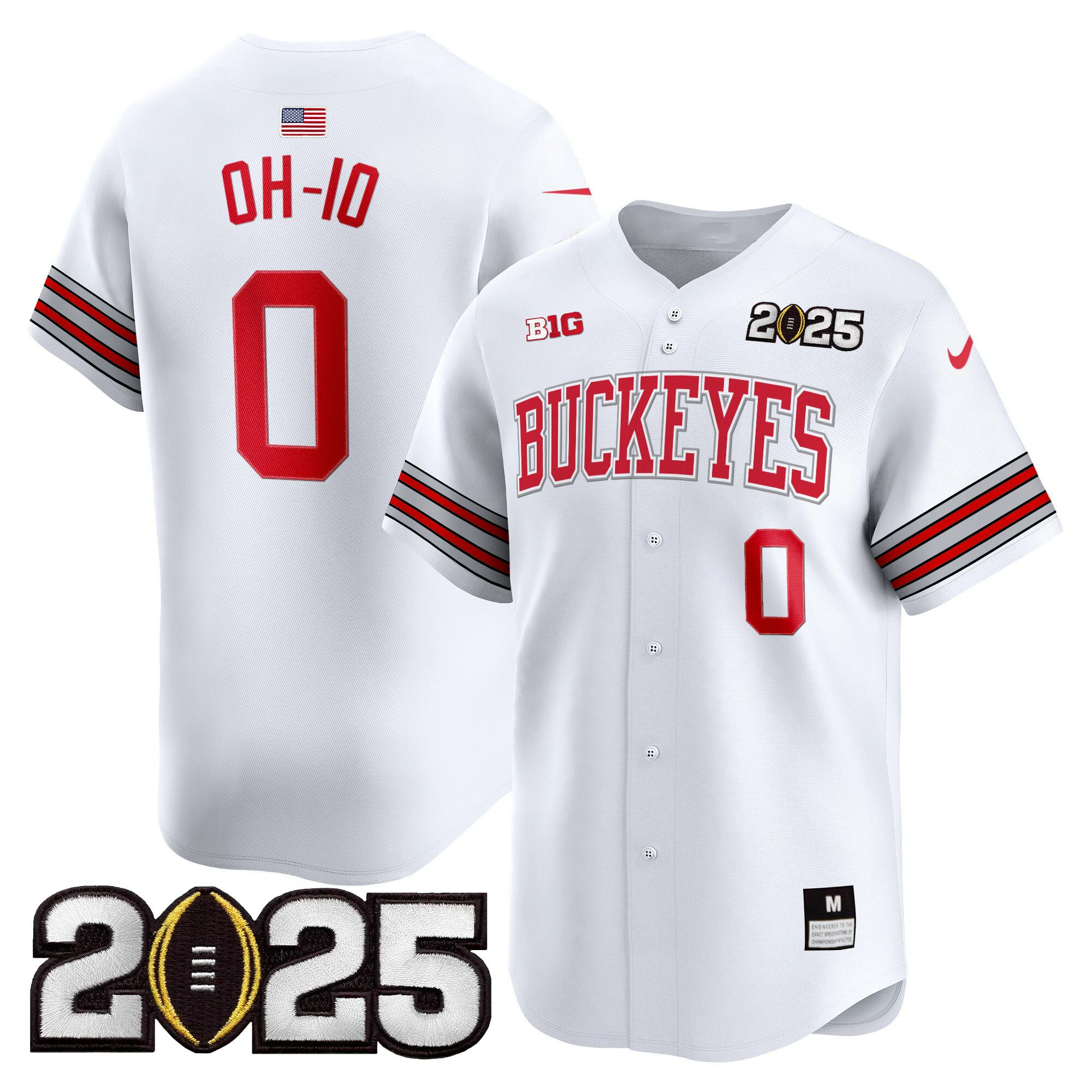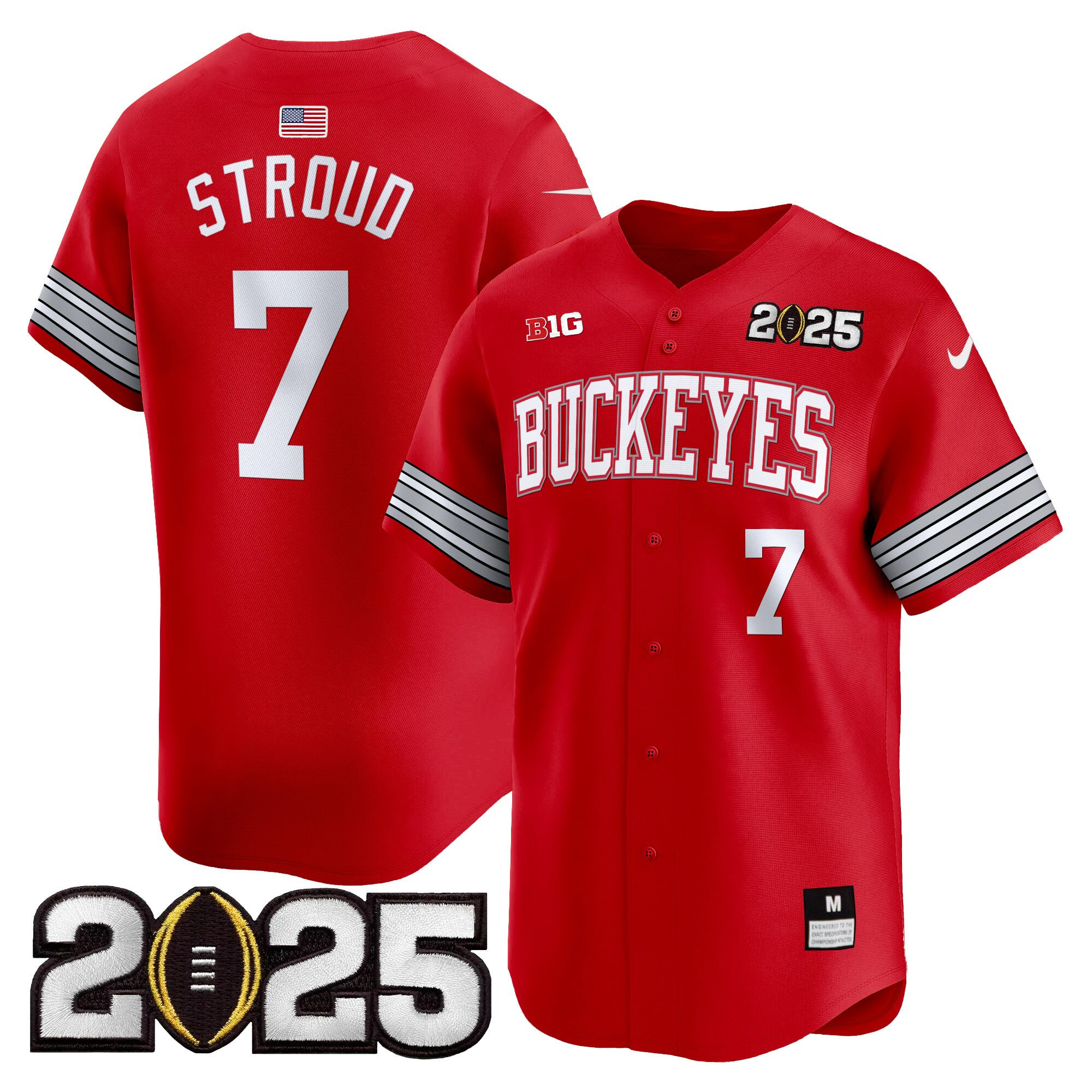 Men’s Ohio State Buckeyes ‘Heritage Stripe’ 2025 CFP Final Patch Vapor Baseball Jersey – All Stitched