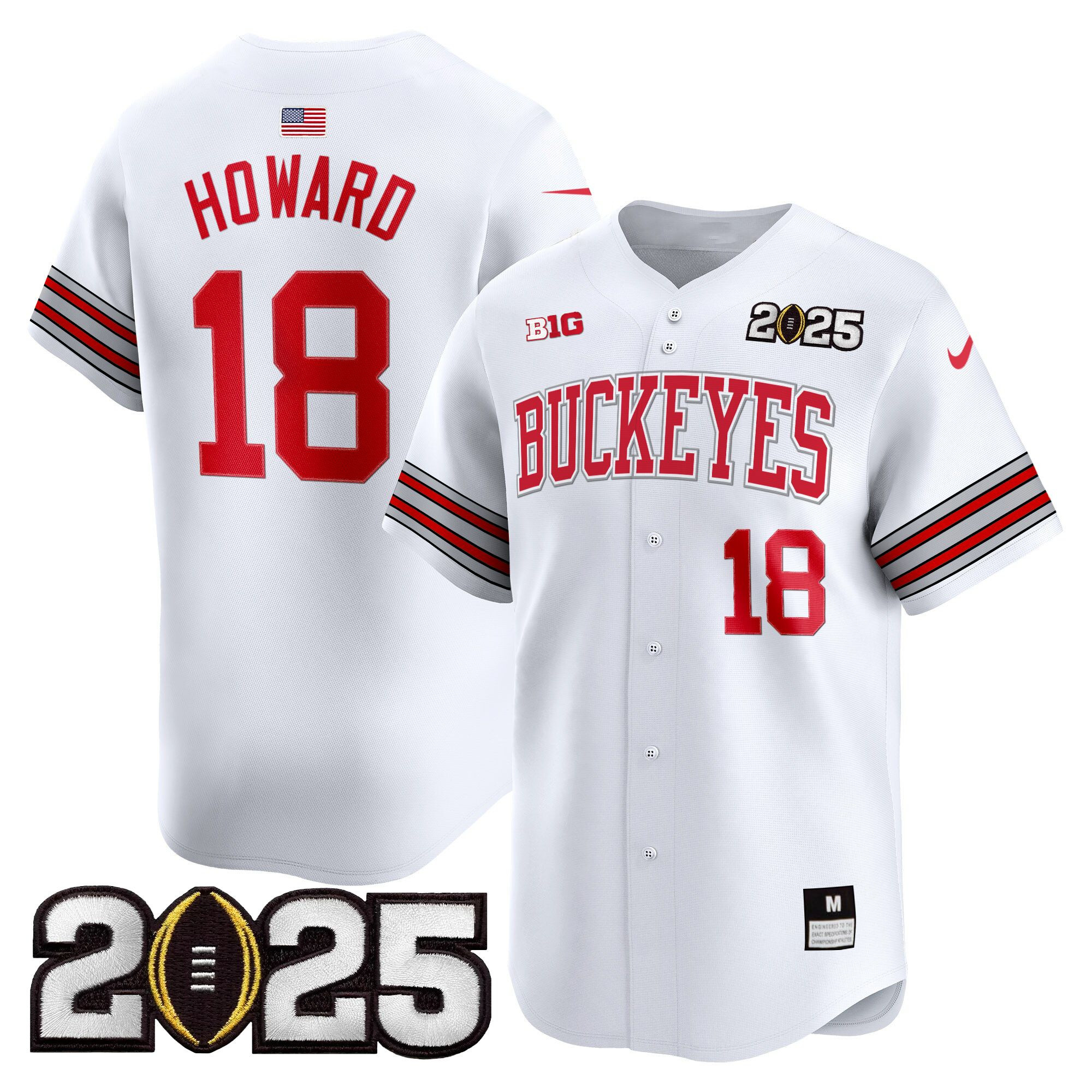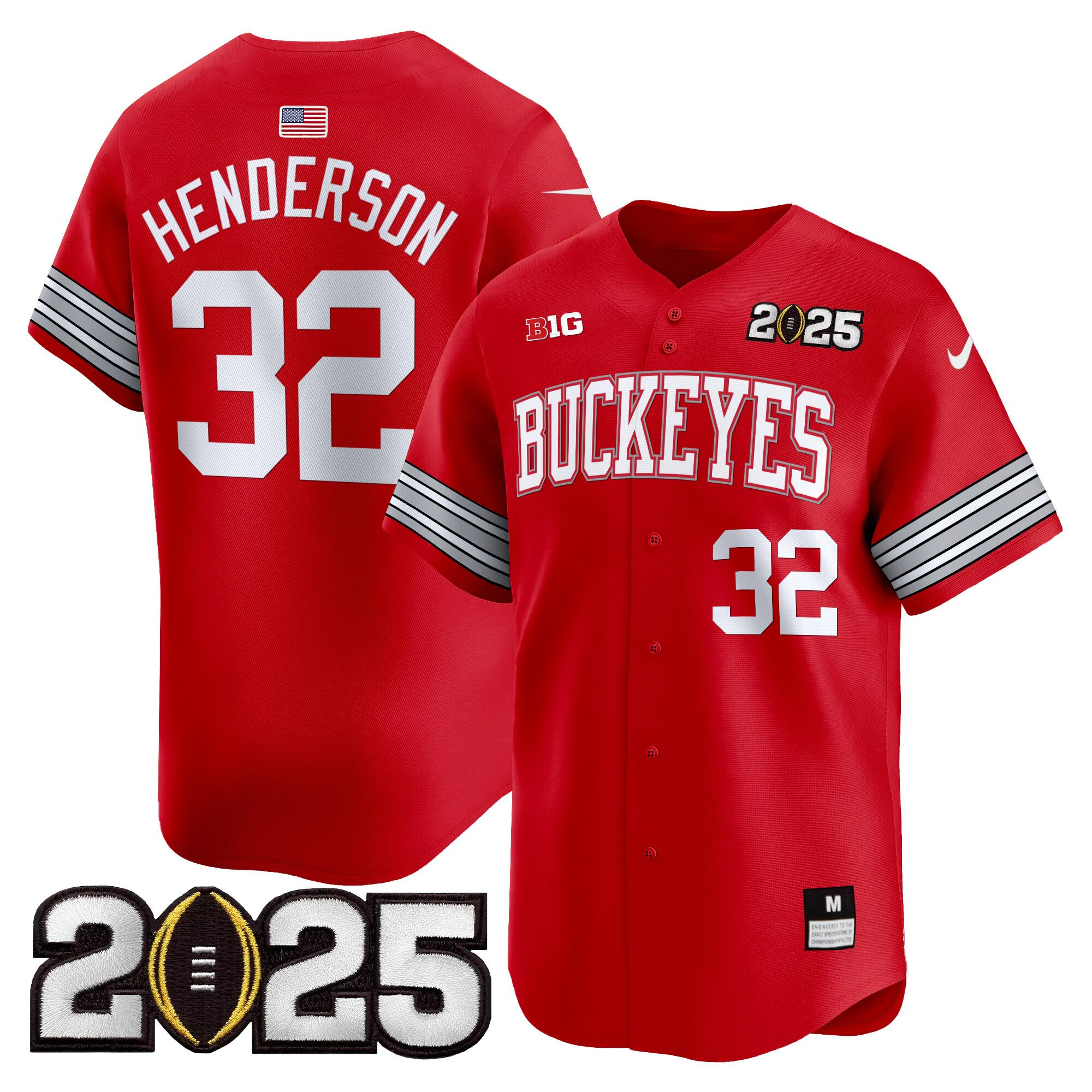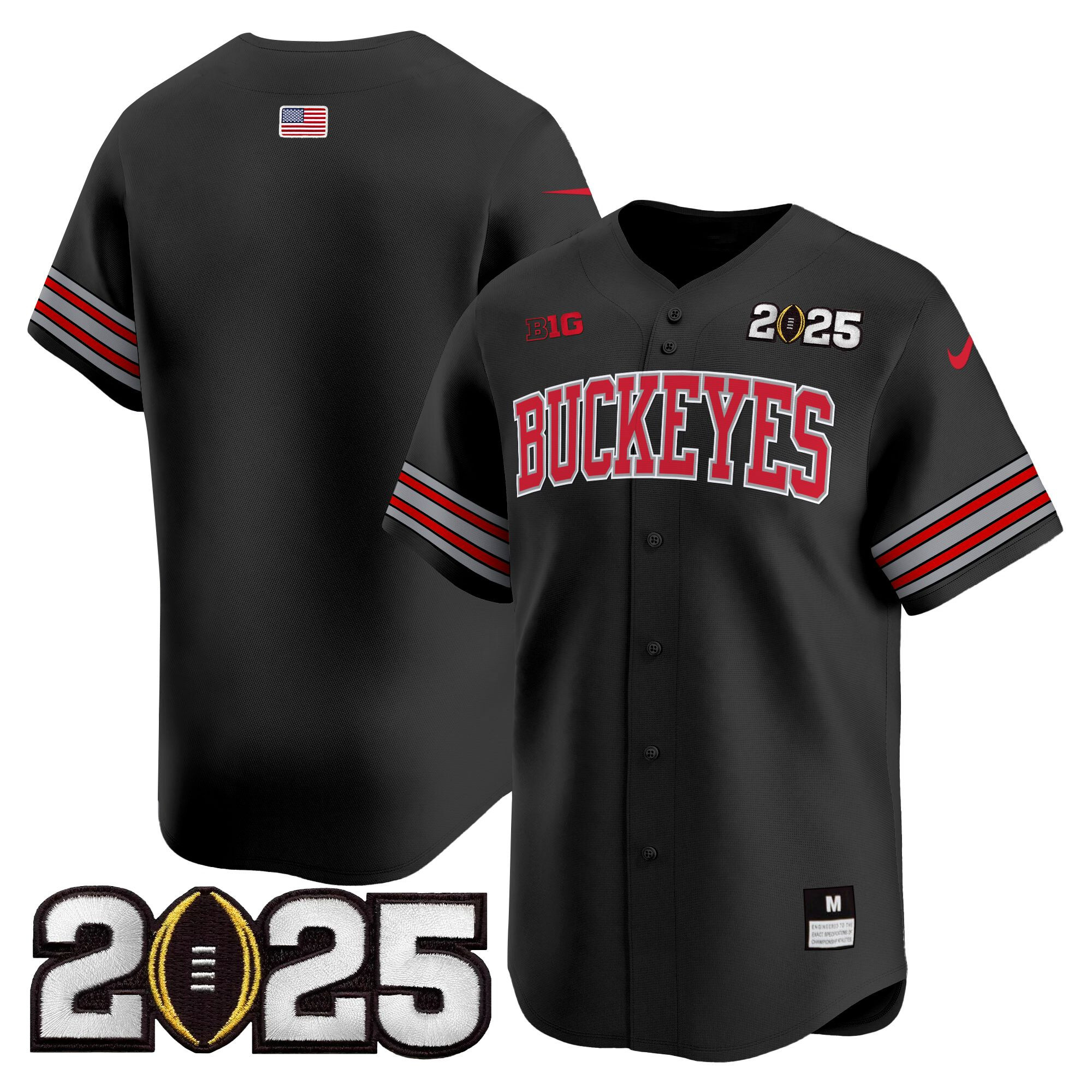 Men’s Ohio State Buckeyes ‘Heritage Stripe’ 2025 CFP Final Patch Vapor Baseball Jersey – All Stitched