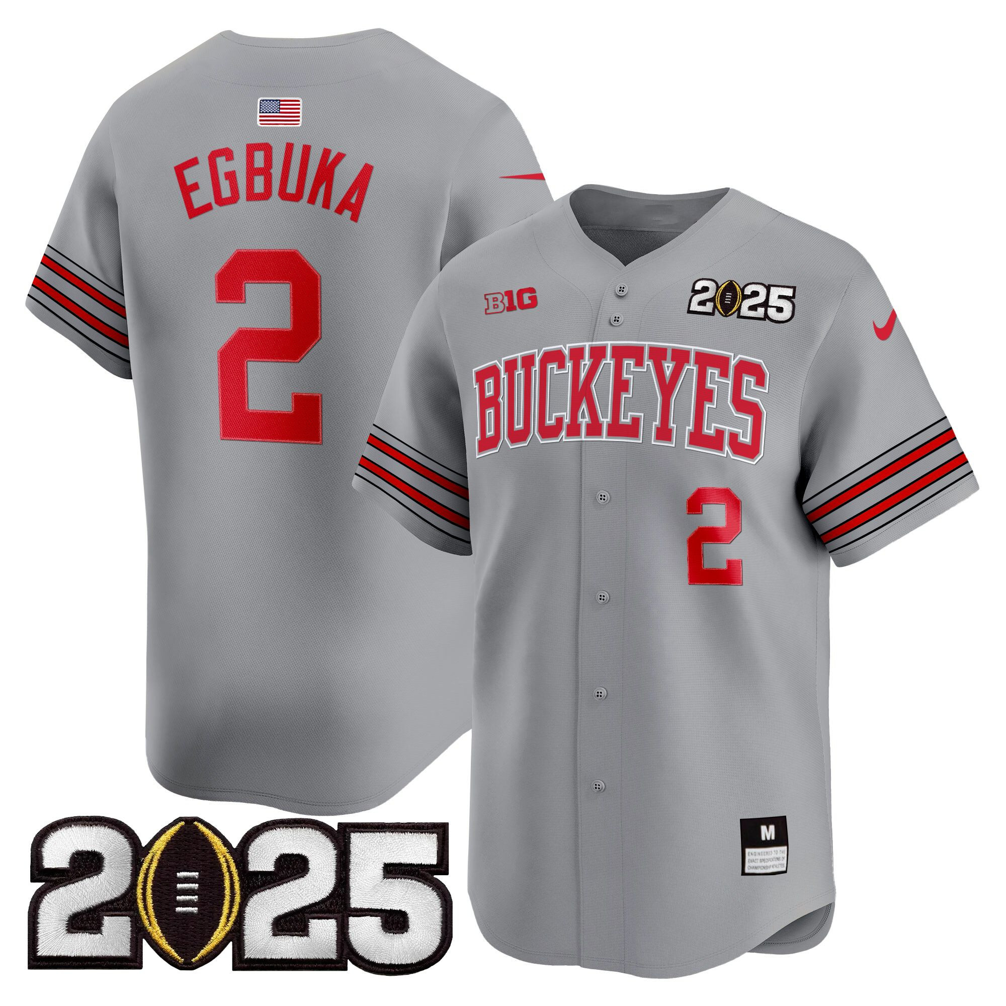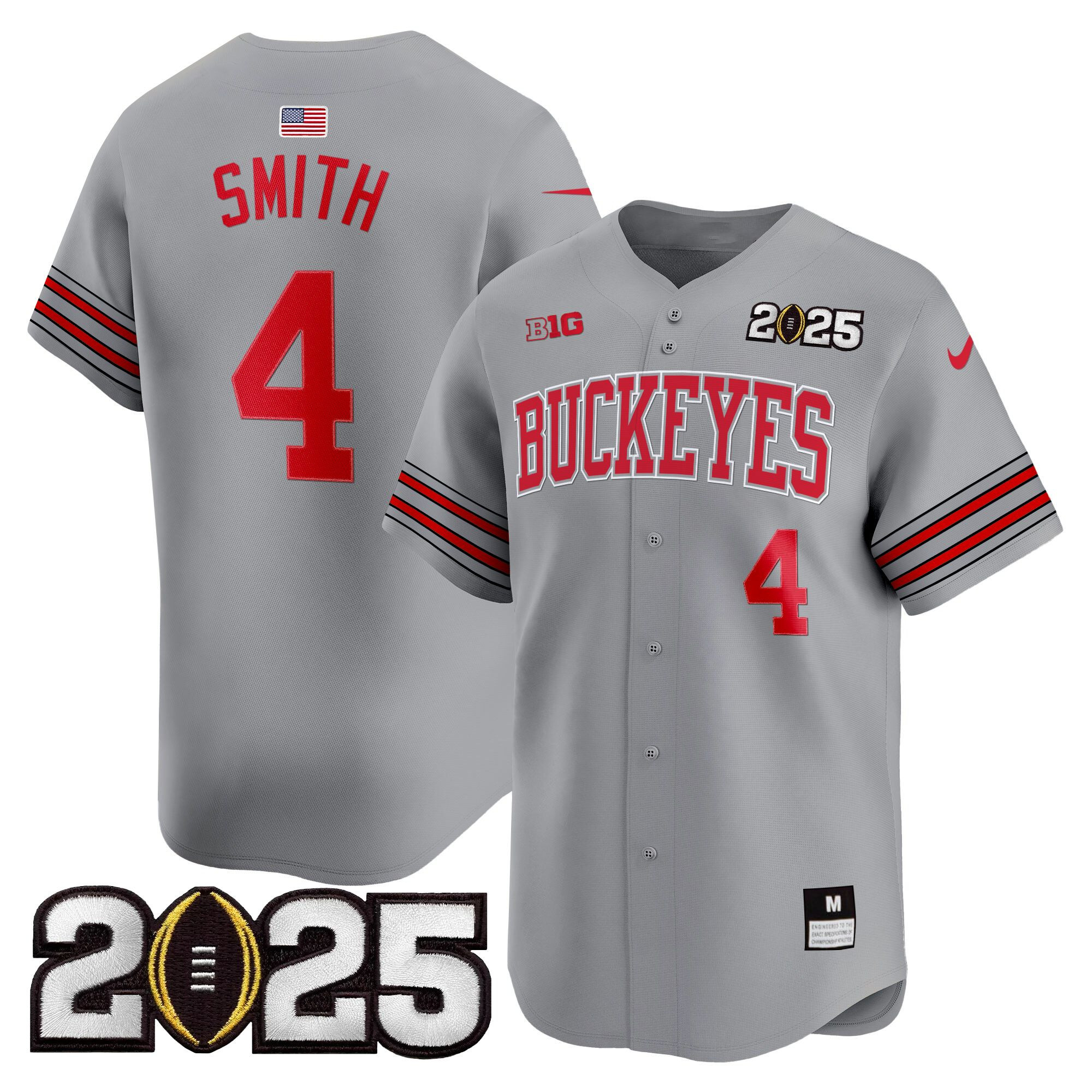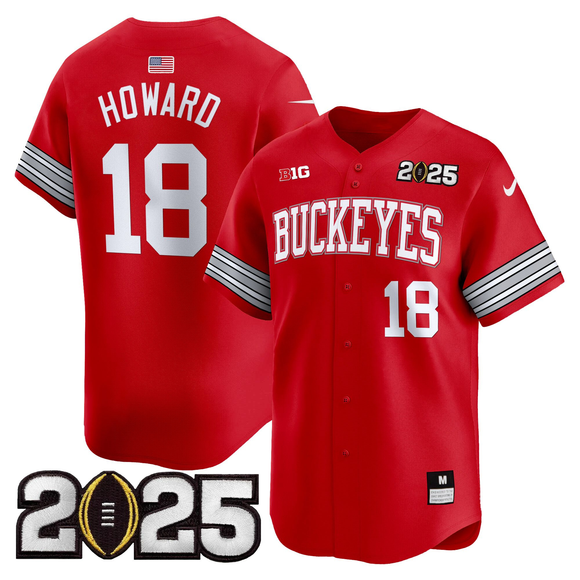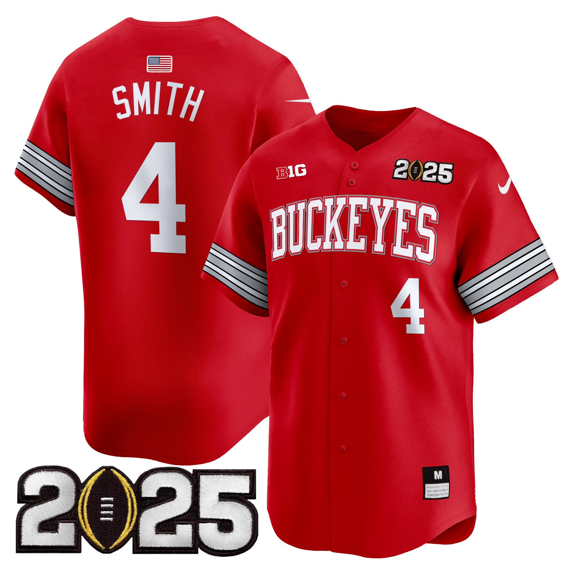 Men’s Ohio State Buckeyes ‘Heritage Stripe’ 2025 CFP Final Patch Vapor Baseball Jersey – All Stitched