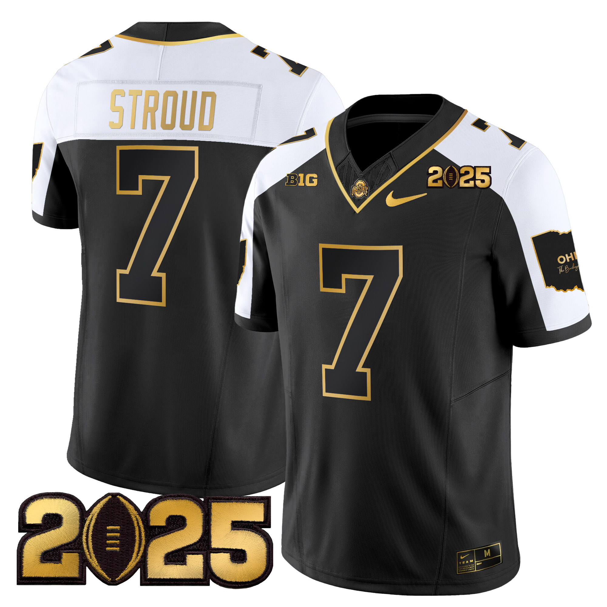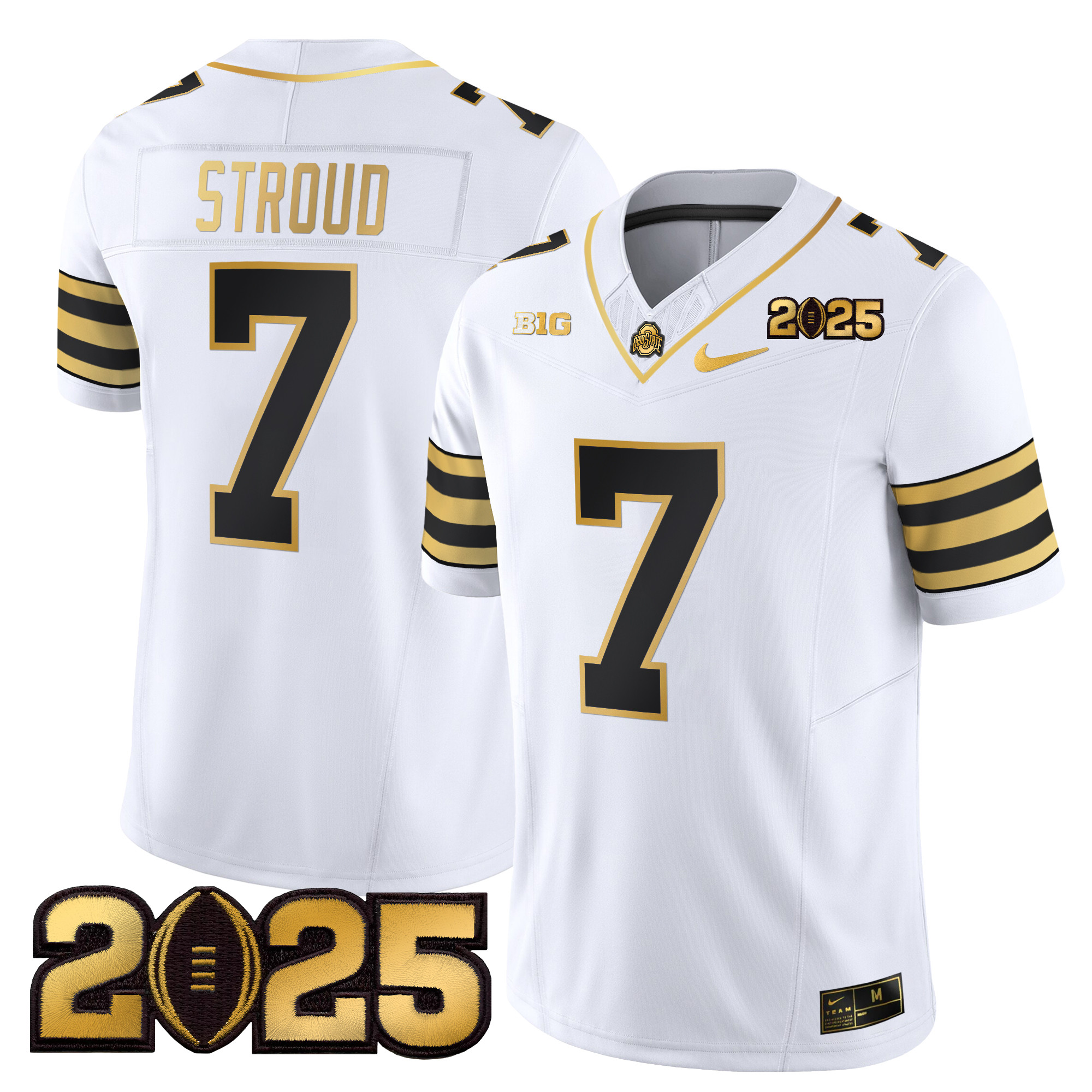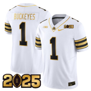 Men’s Ohio State Buckeyes ‘Heritage Stripe’ CFP Final Patch Gold Vapor Limited Jersey – All Stitched