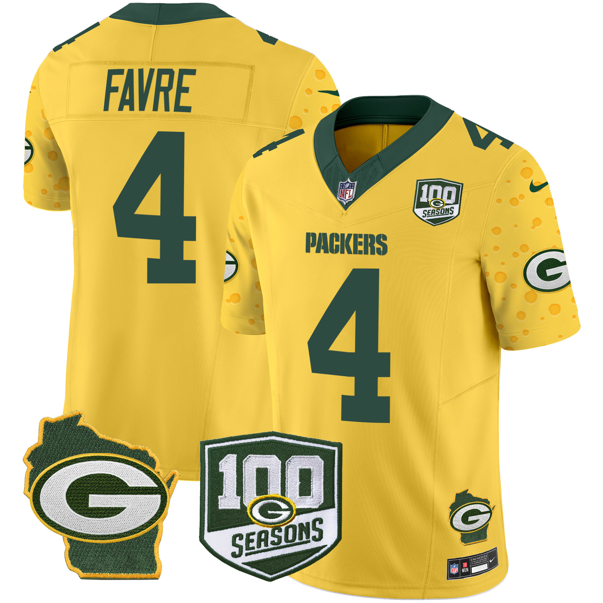 Men’s Packers 100th Season & Home Patch Cheese Vapor Limited Jersey – All Stitched