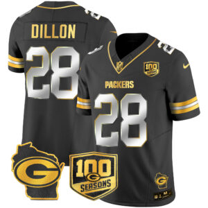 Men’s Packers 100th Season & Home Patch Gold Vapor Limited Jersey – All Stitched