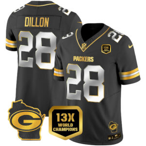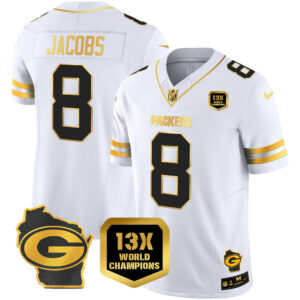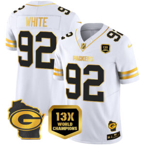 Men’s Packers 13 Time World Champions & Home Patch Gold Vapor Jersey – All Stitched