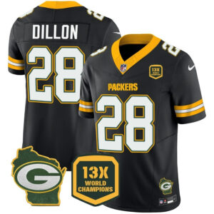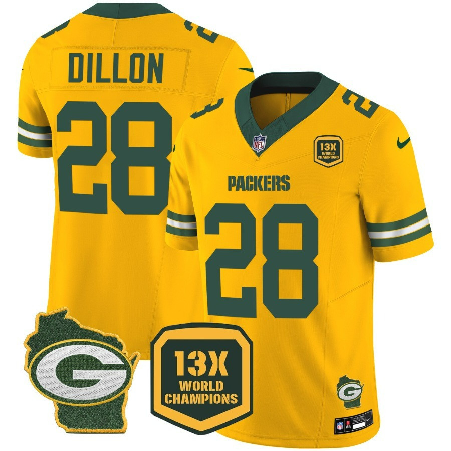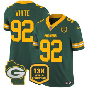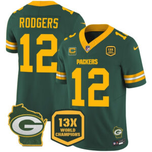 Men’s Packers 13 Time World Champions & Home Patch Vapor Jersey – All Stitched