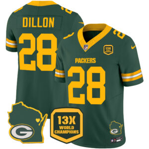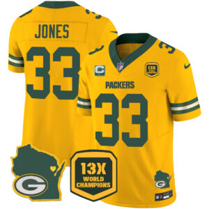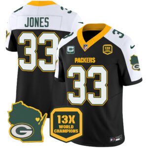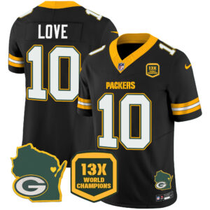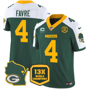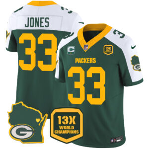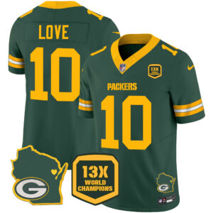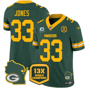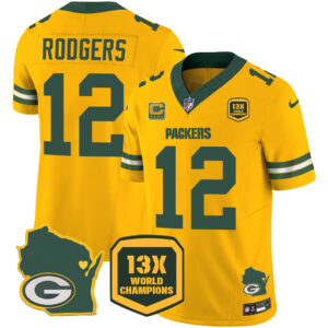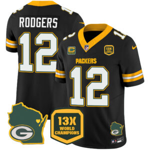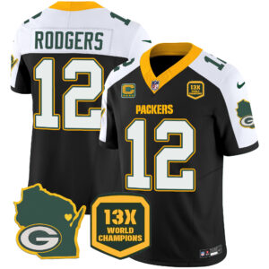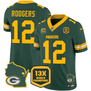 Men’s Packers 13 Time World Champions & Home Patch Vapor Jersey V2 – All Stitched
