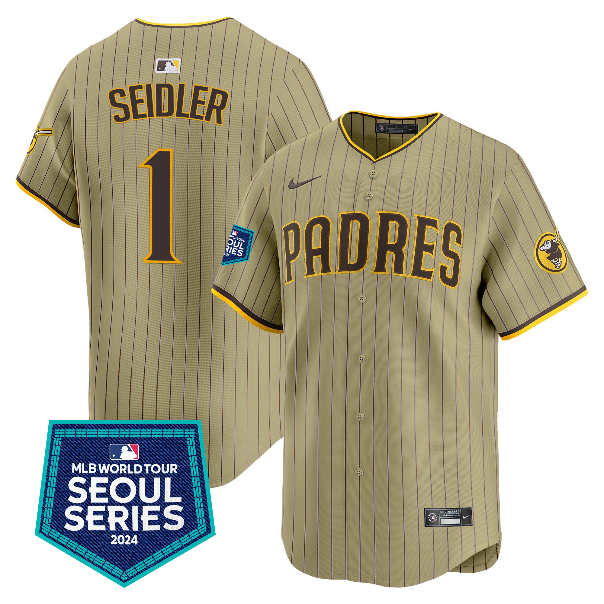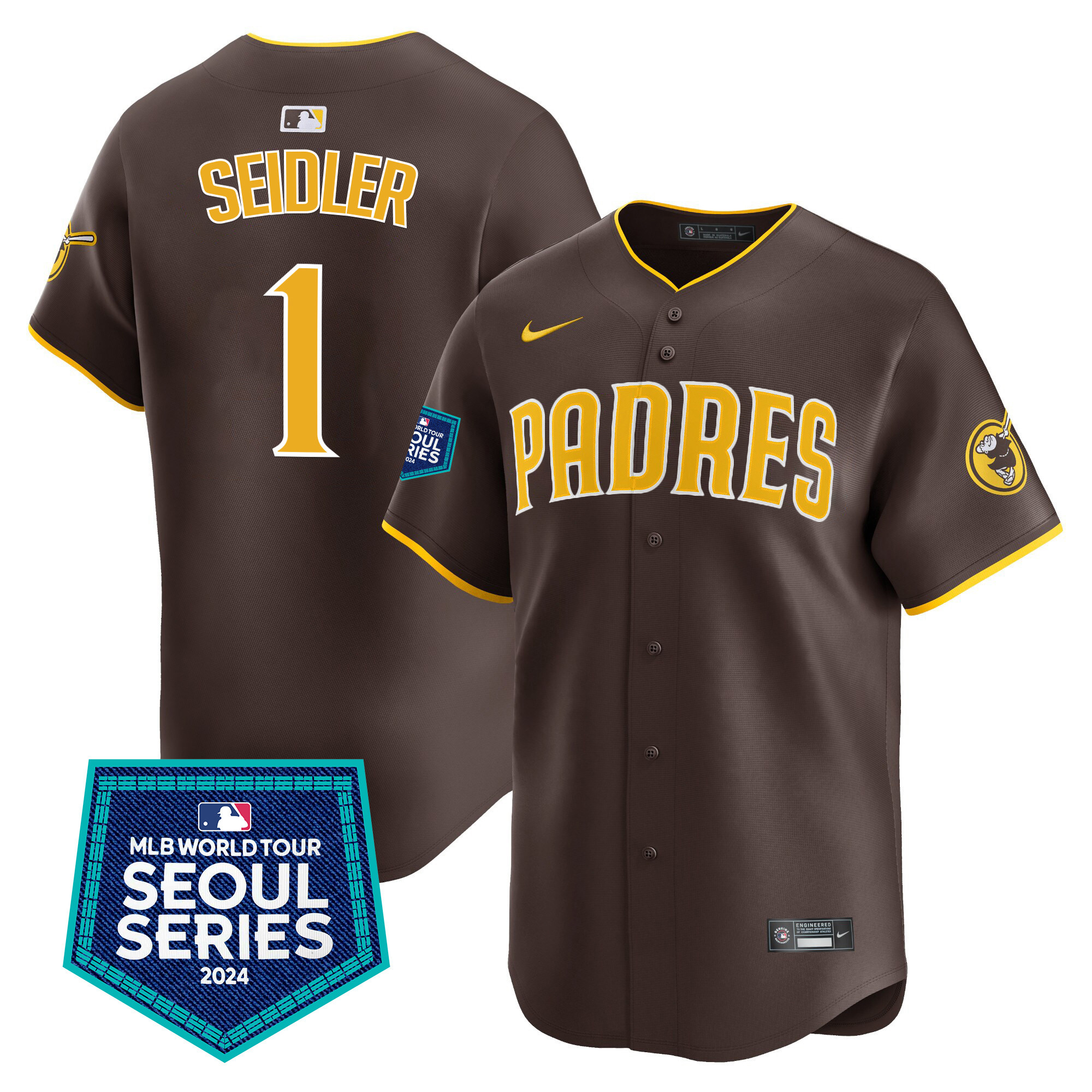 Men’s Padres 2024 World Tour Seoul Series Patch Vapor Premier Limited Jersey – All Stitched
