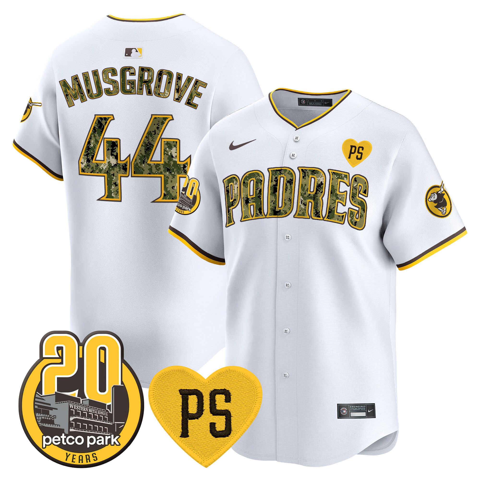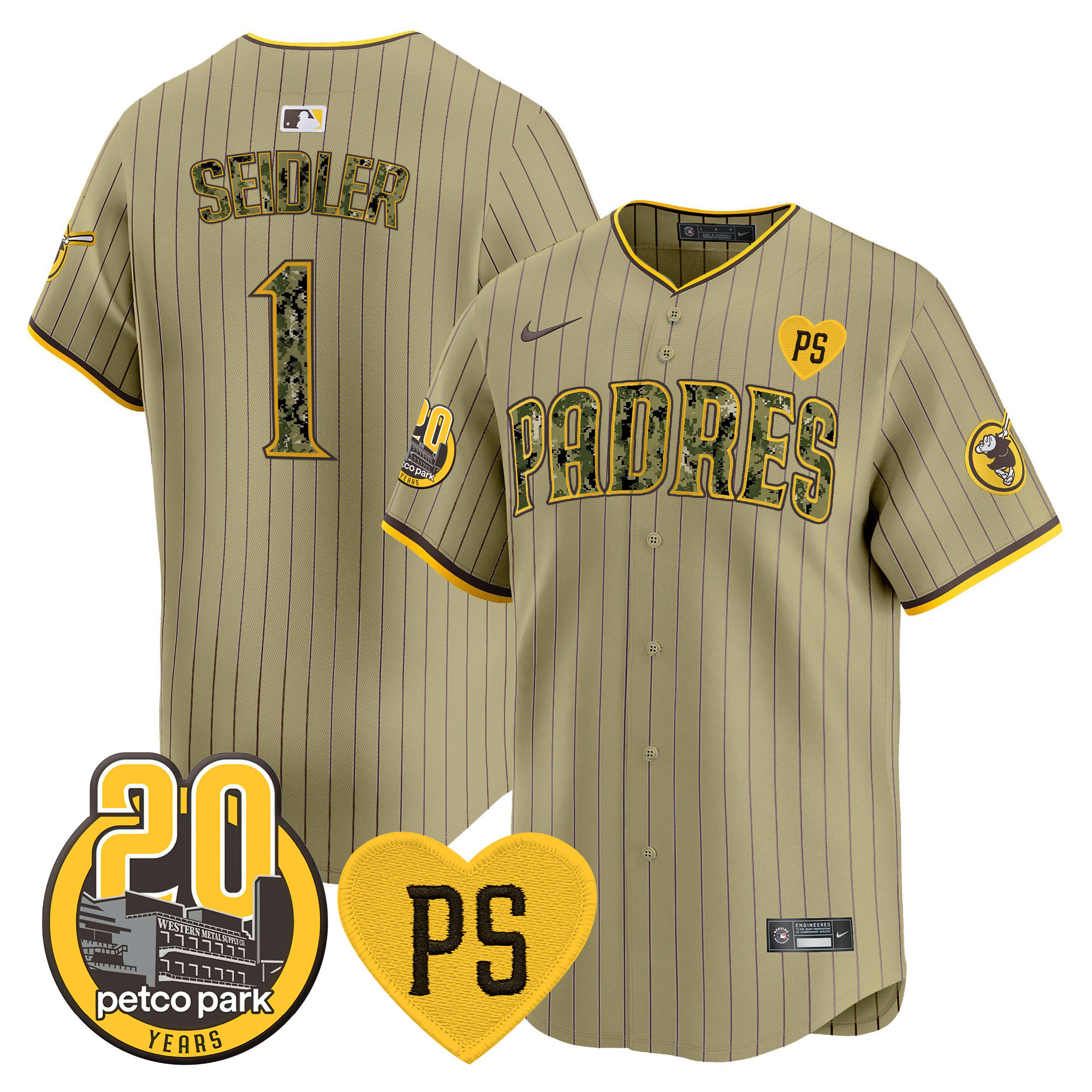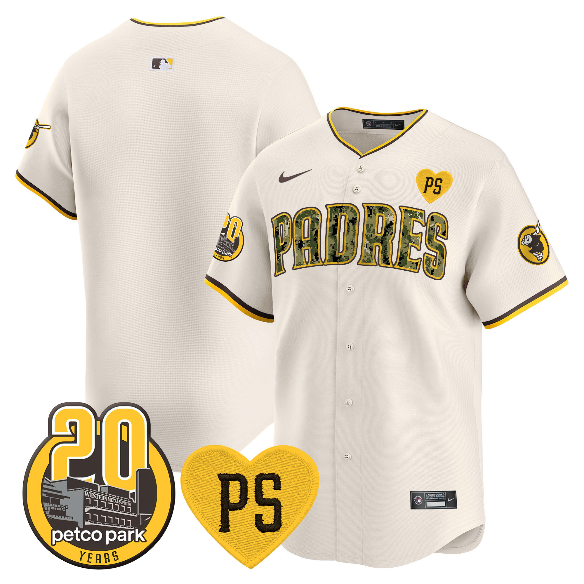 Men’s Padres “For Peter” & Petco Park 20th Patch USMC Vapor Premier Limited Jersey V2 – All Stitched