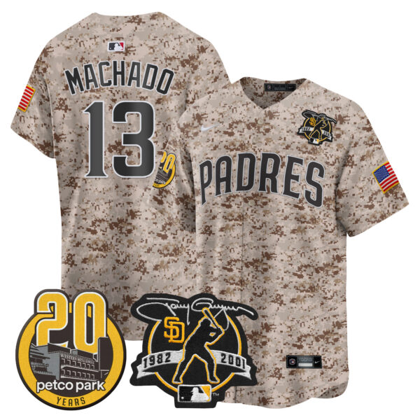 Men’s Padres Tony Gwynn & Petco Park 20th Patch USMC Vapor Premier Limited Jersey – All Stitched