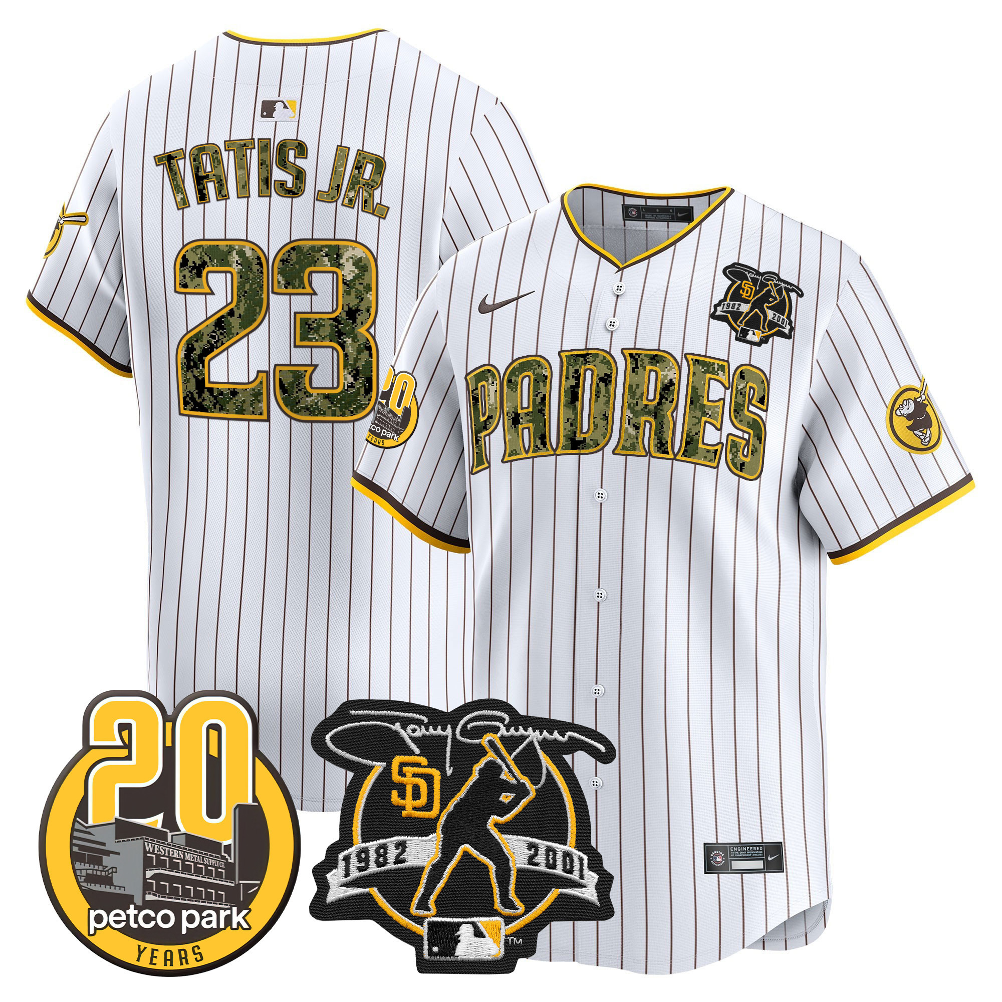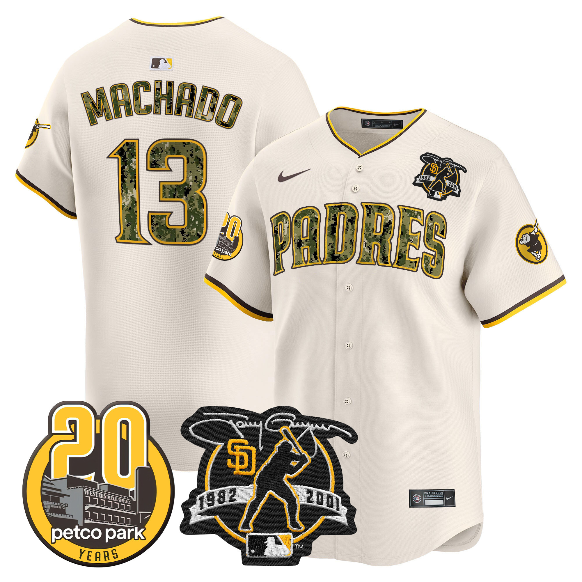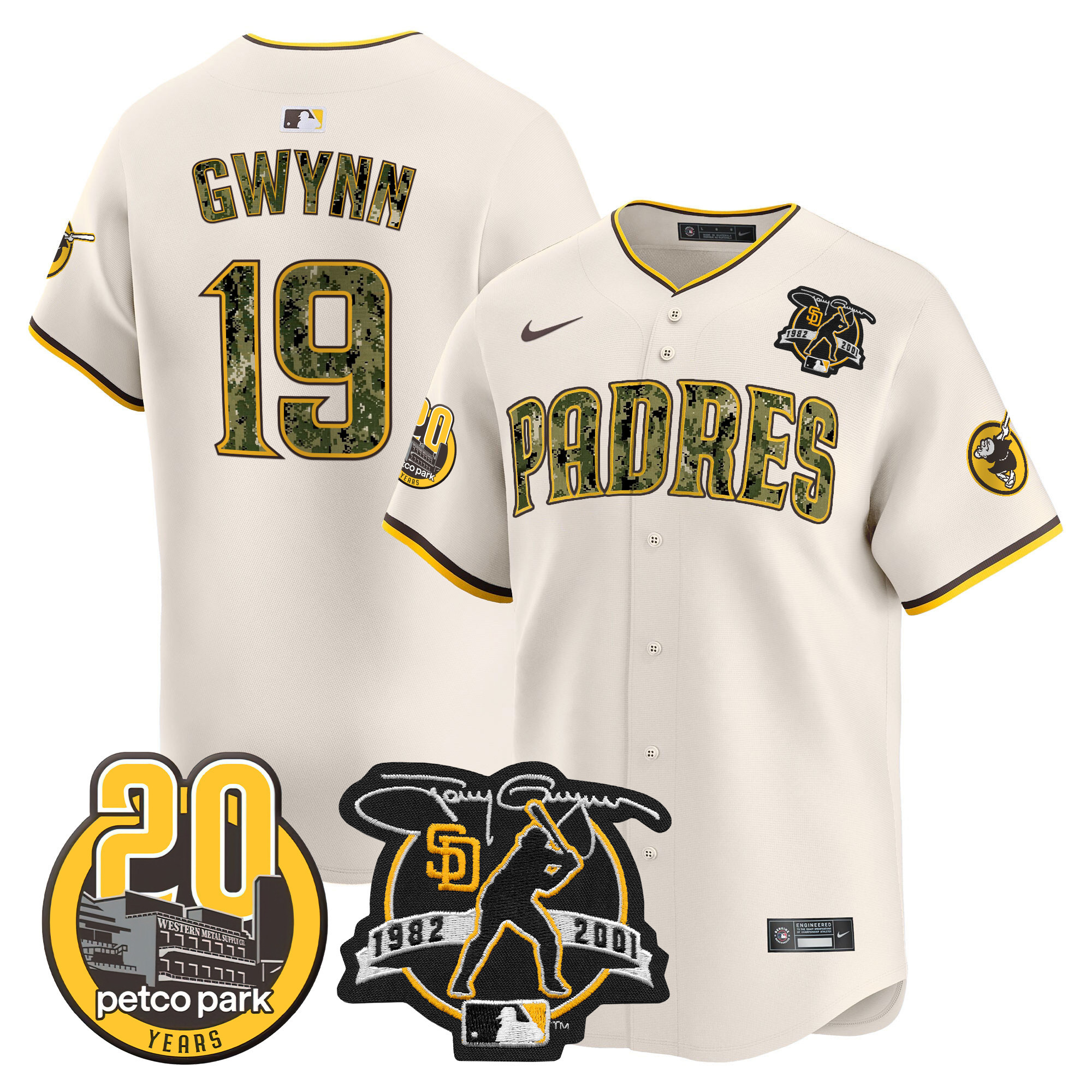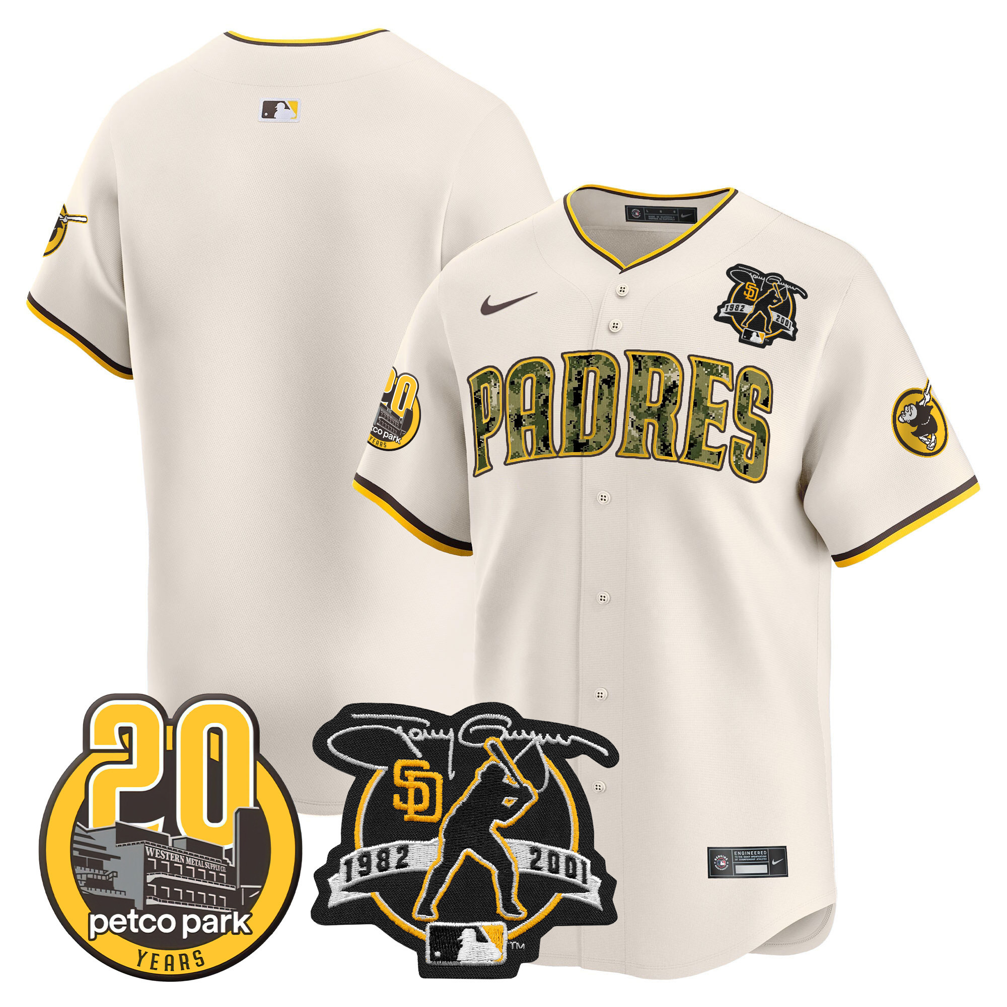 Men’s Padres Tony Gwynn & Petco Park 20th Patch USMC Vapor Premier Limited Jersey V2 – All Stitched