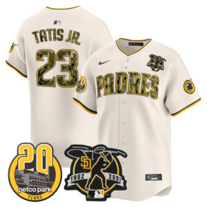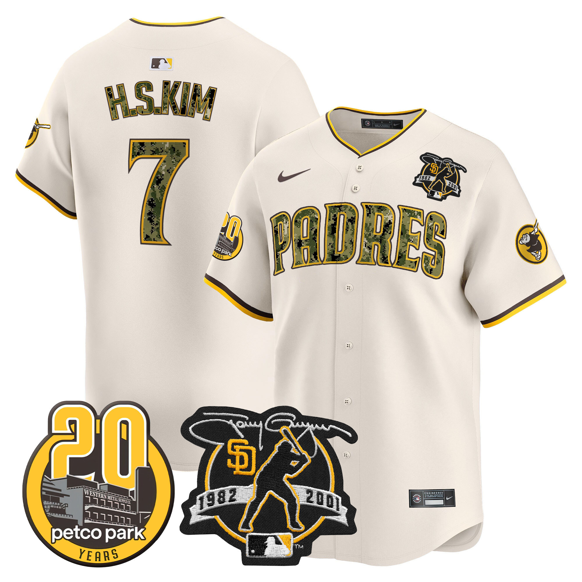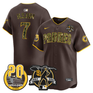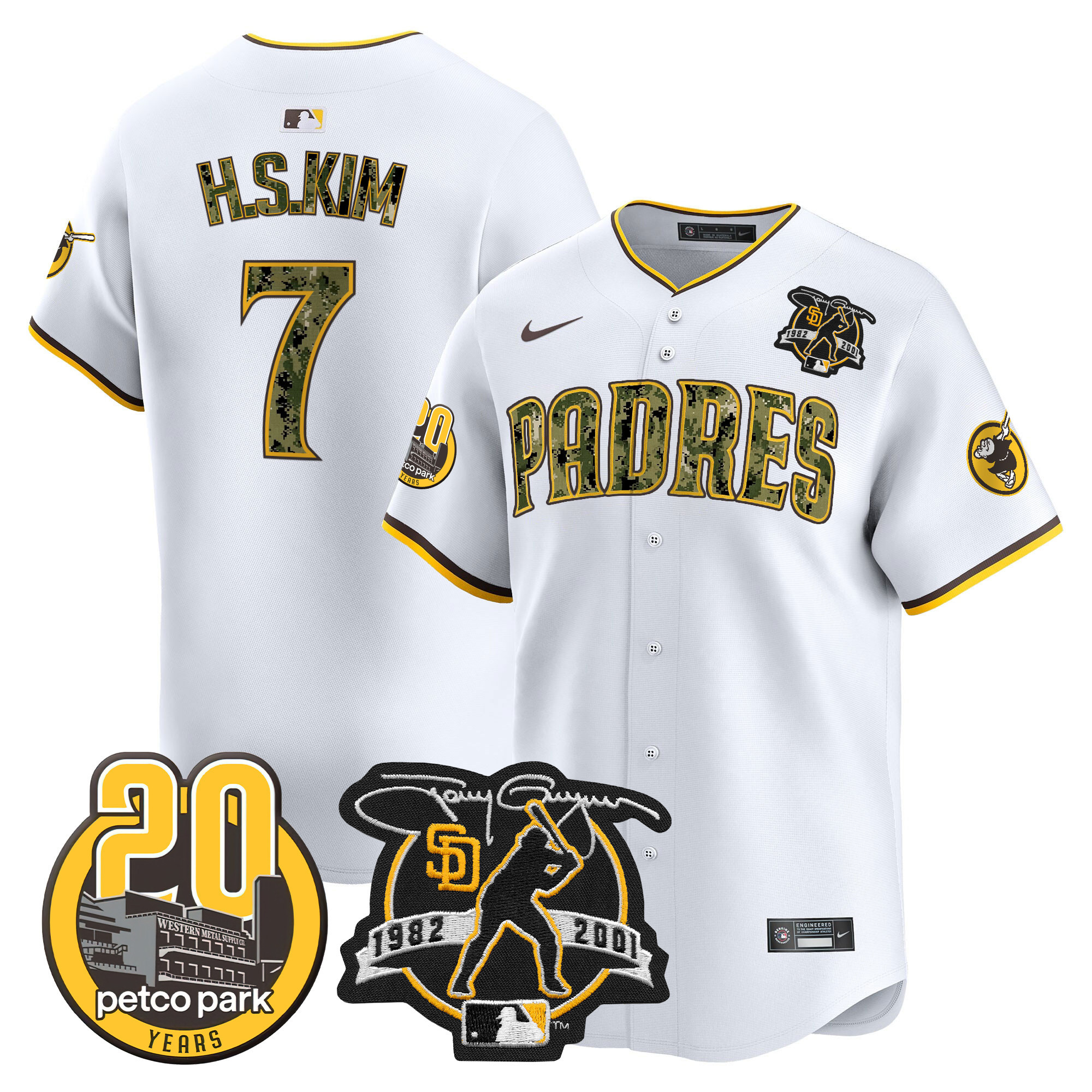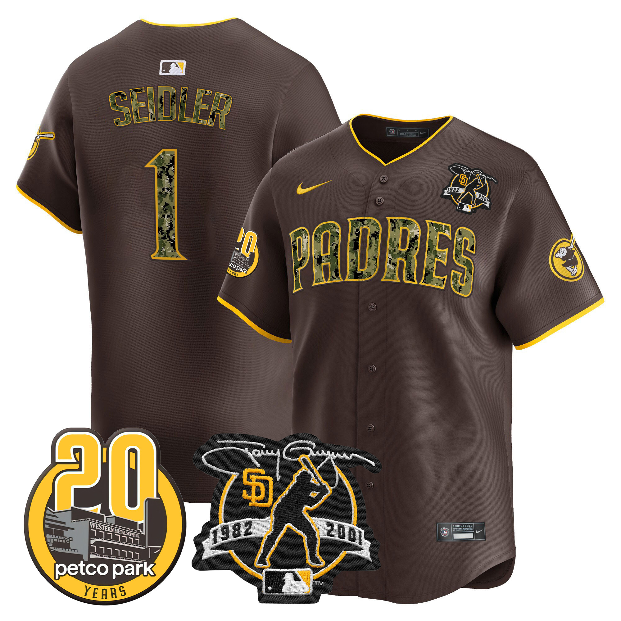 Men’s Padres Tony Gwynn & Petco Park 20th Patch USMC Vapor Premier Limited Jersey V2 – All Stitched