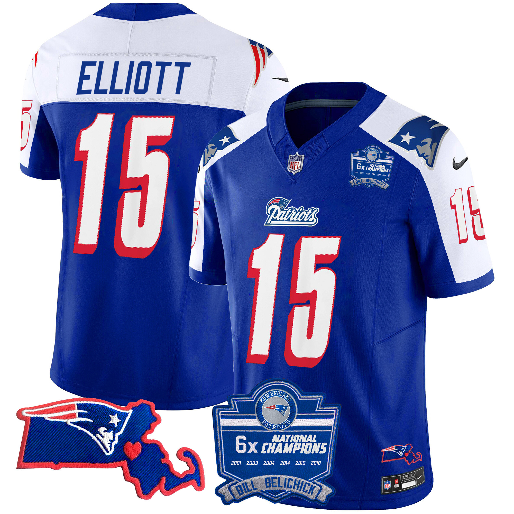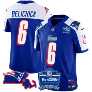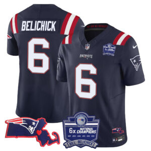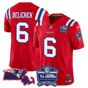 Men’s Patriots Bill Belichick 6x Champions Patch Vapor Jersey – All Stitched