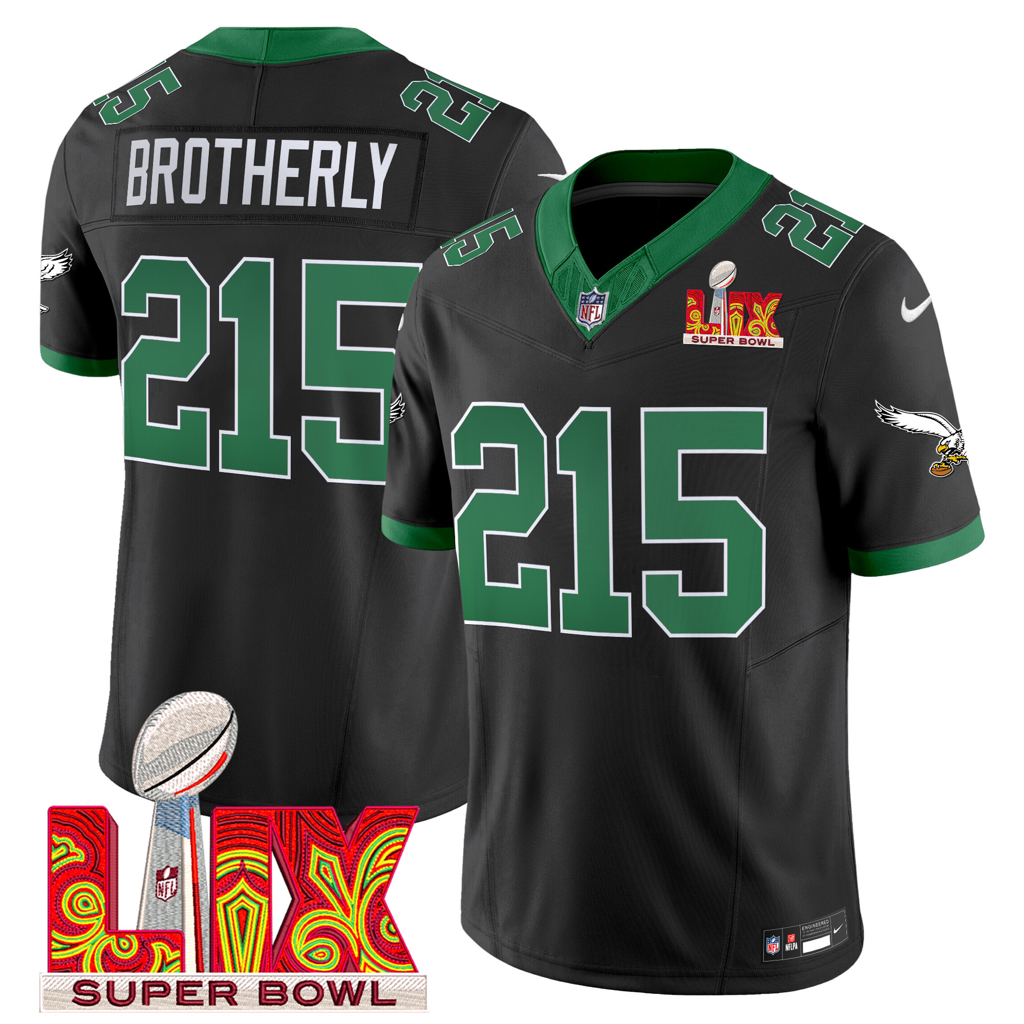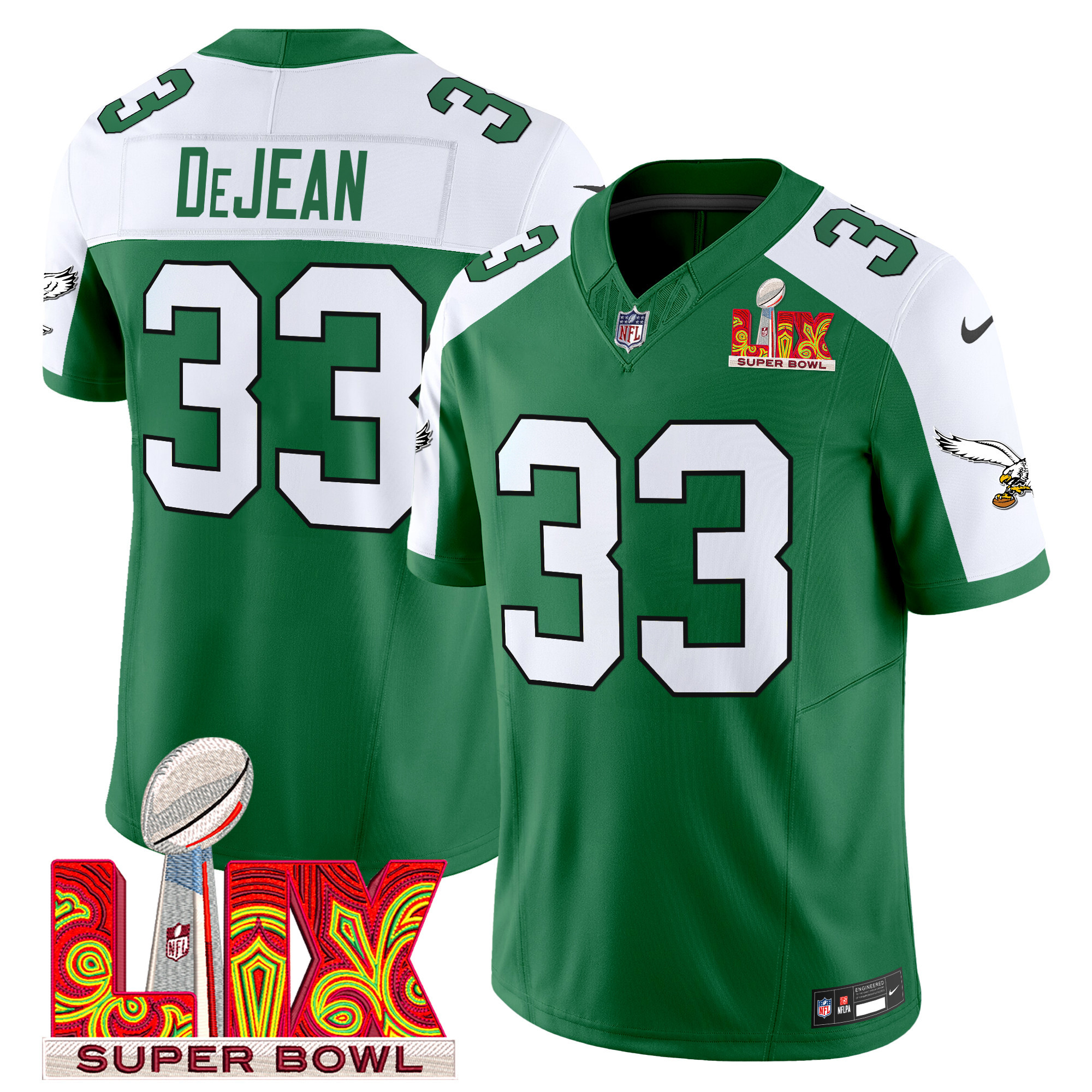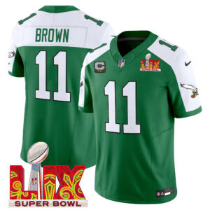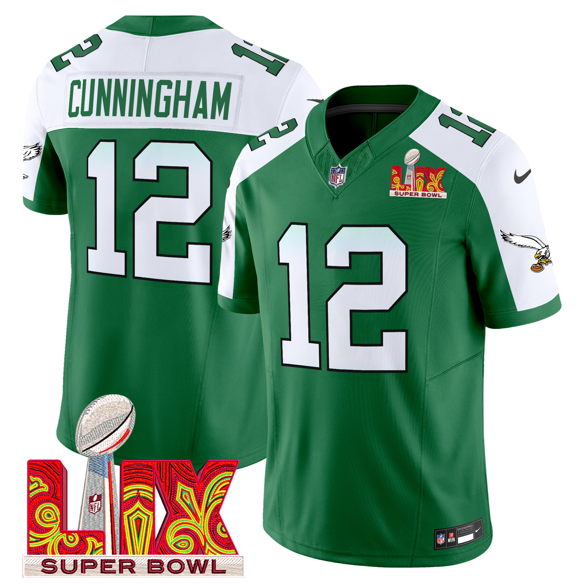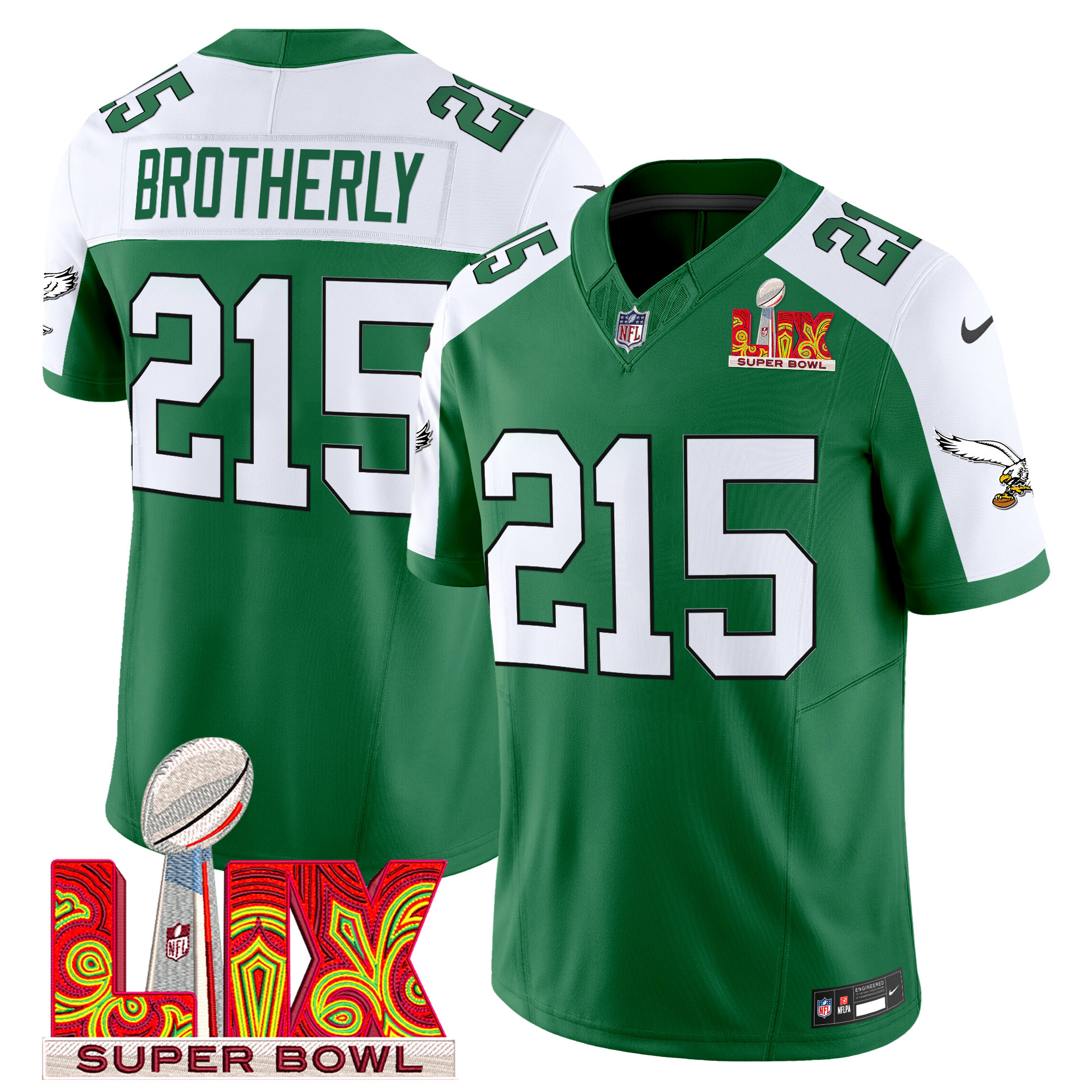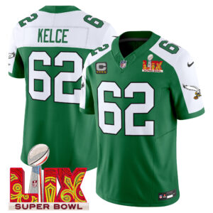 Men’s Philadelphia Eagles Kelly Green Super Bowl LIX Patch Vapor Limited Jersey – All Stitched