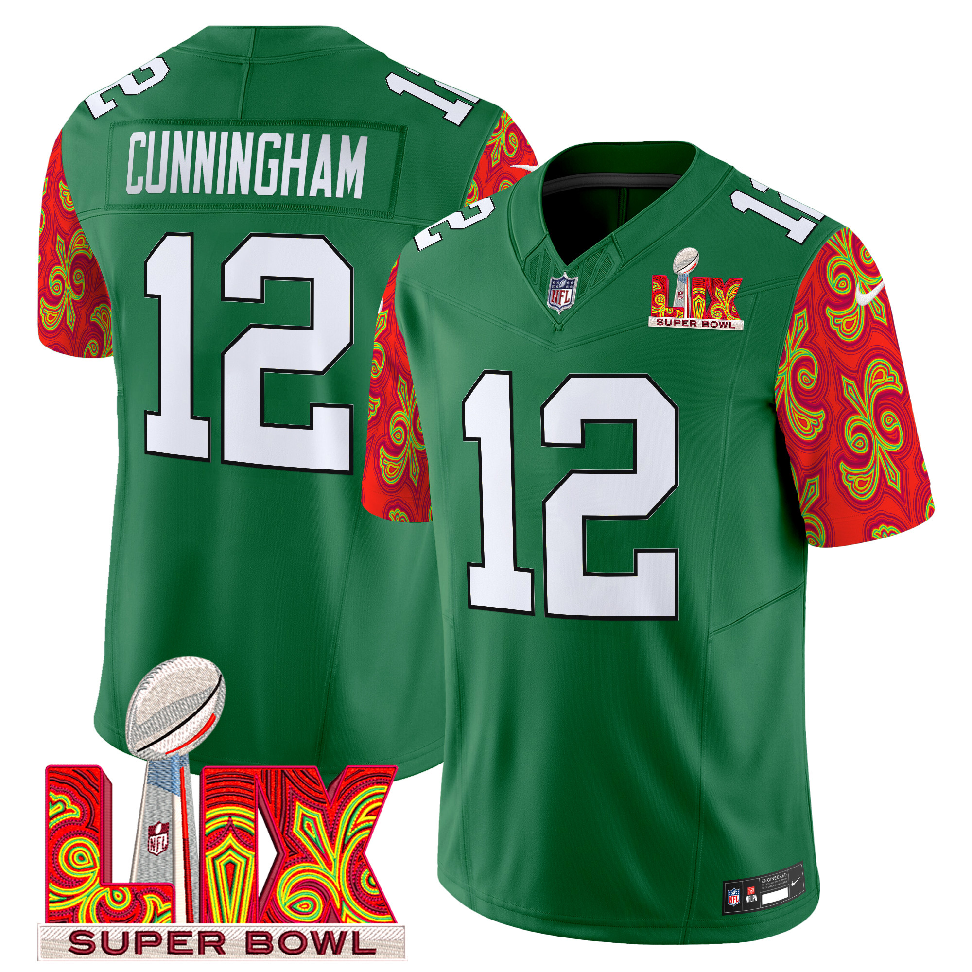 Men’s Philadelphia Eagles Kelly Green Super Bowl LIX Style Vapor Limited Jersey – All Stitched