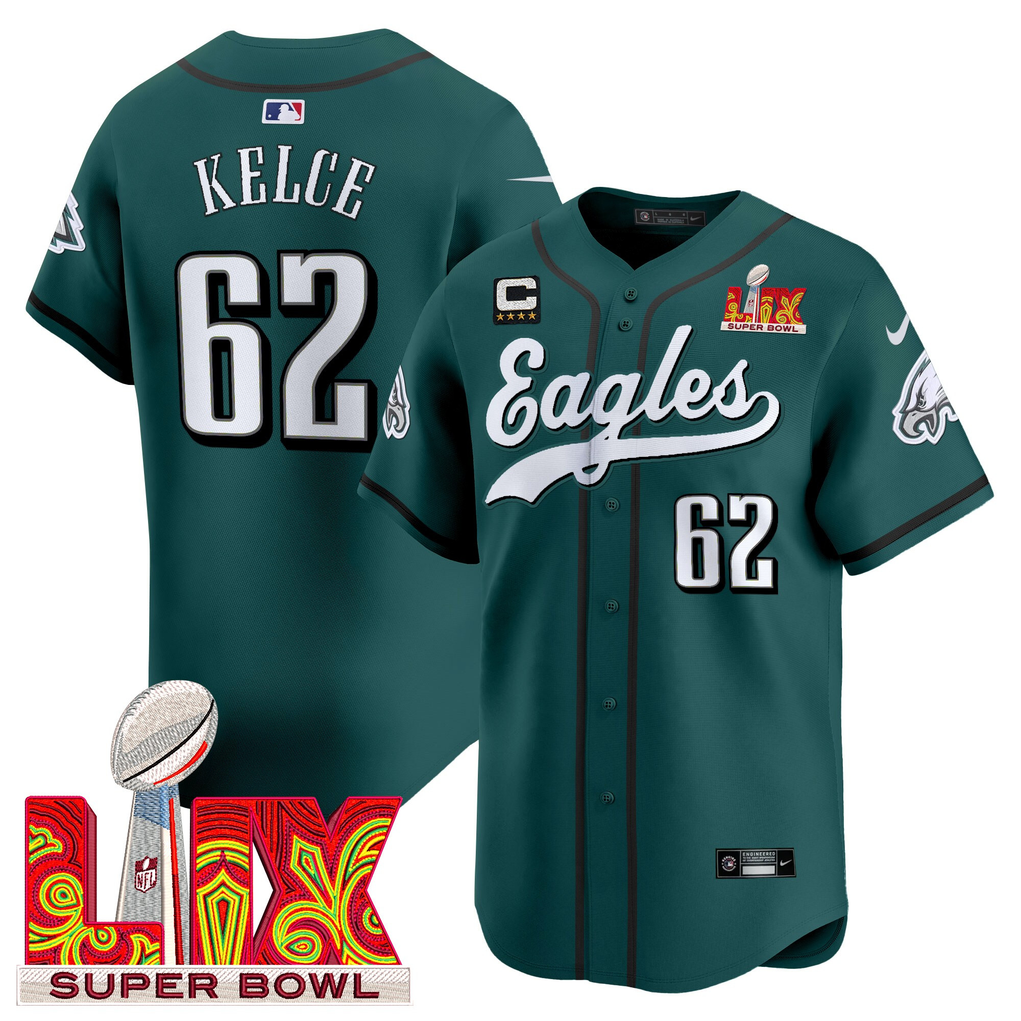 Men’s Philadelphia Eagles Midnight Green Super Bowl LIX Vapor Baseball Jersey – All Stitched