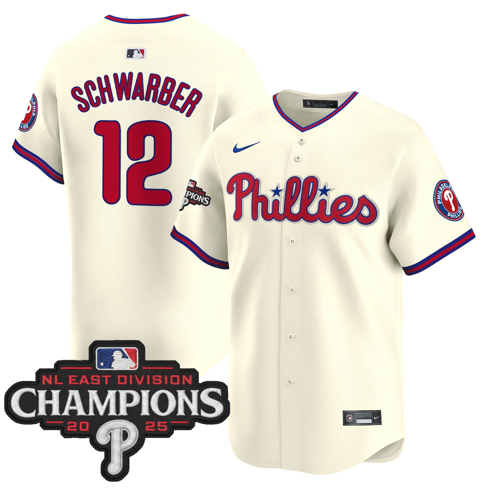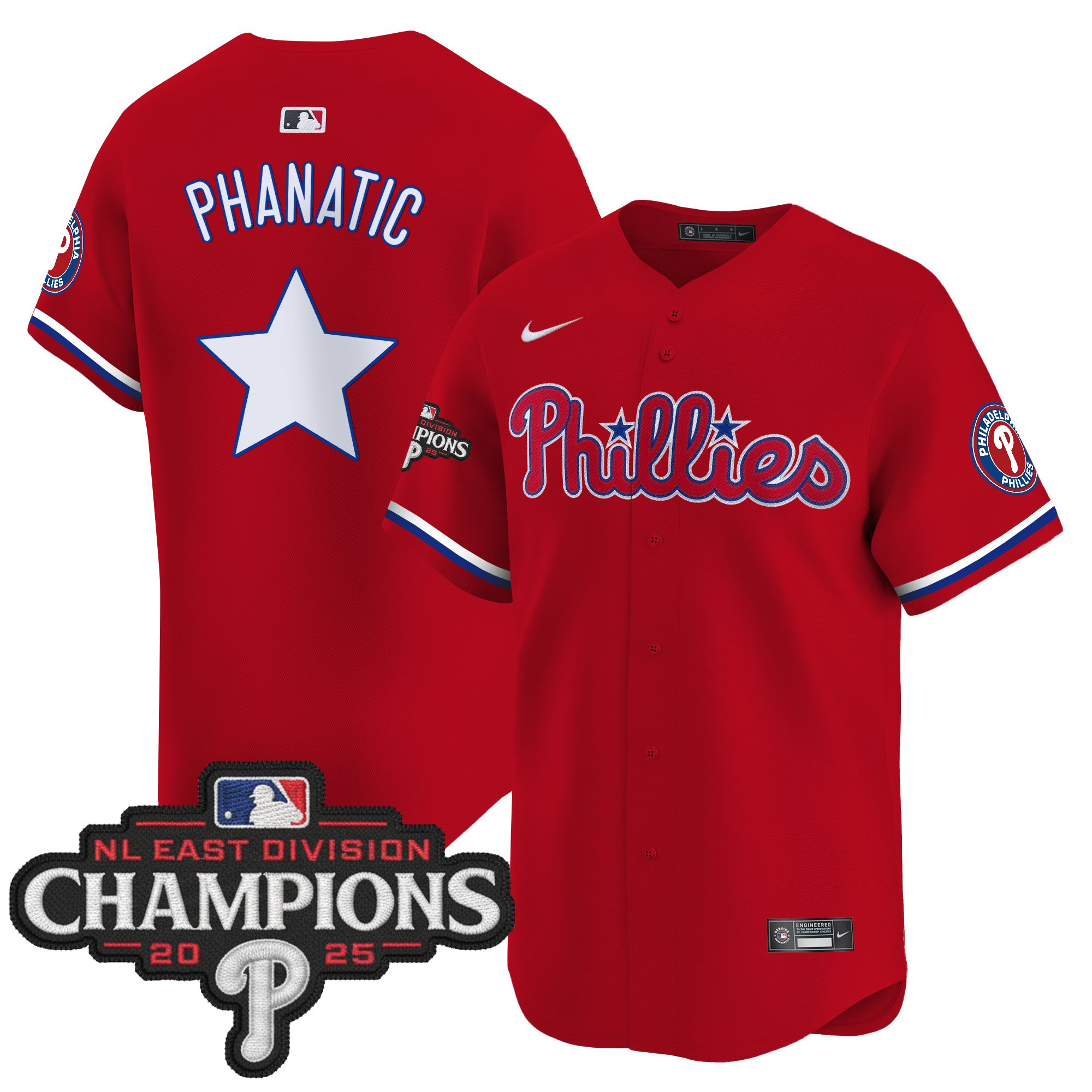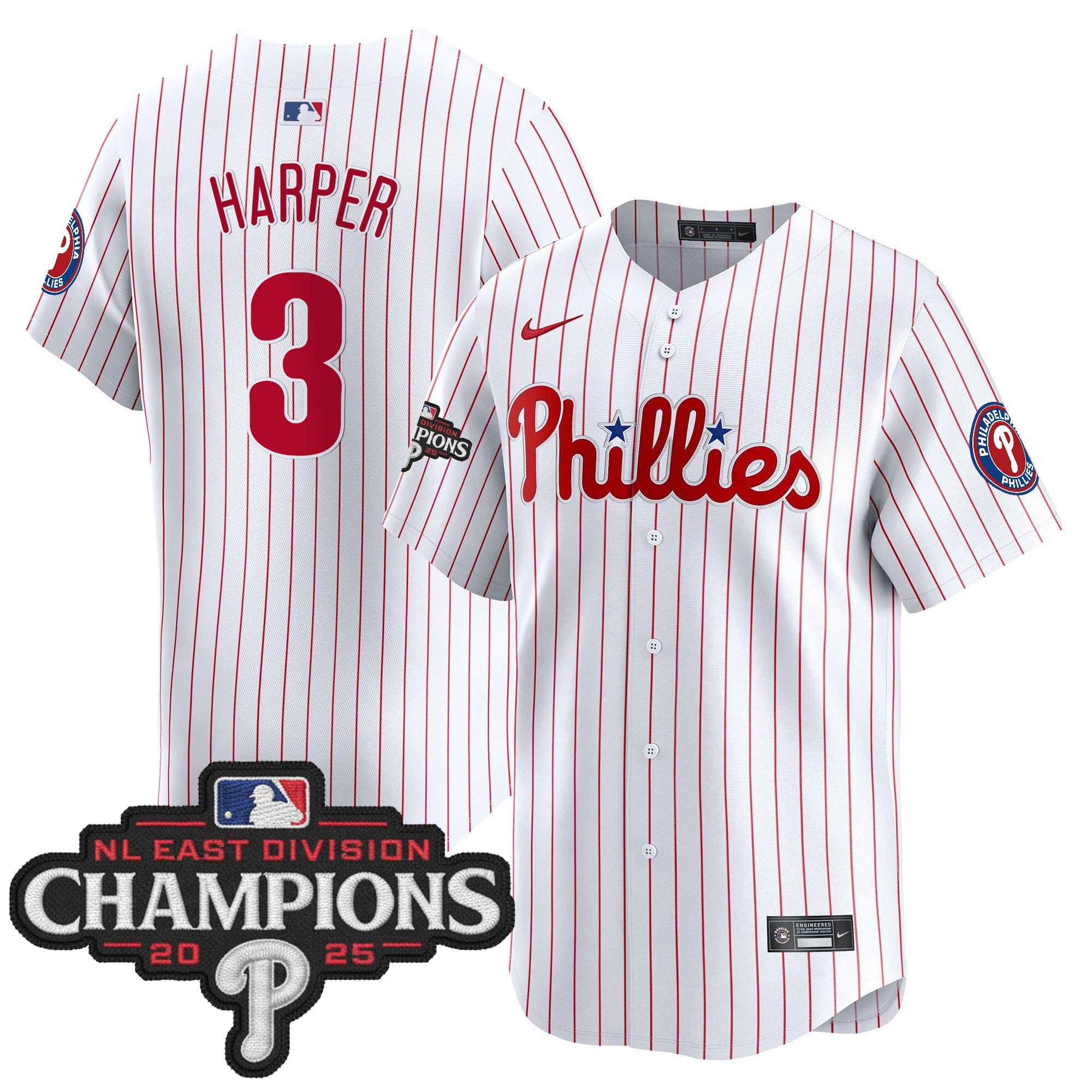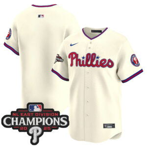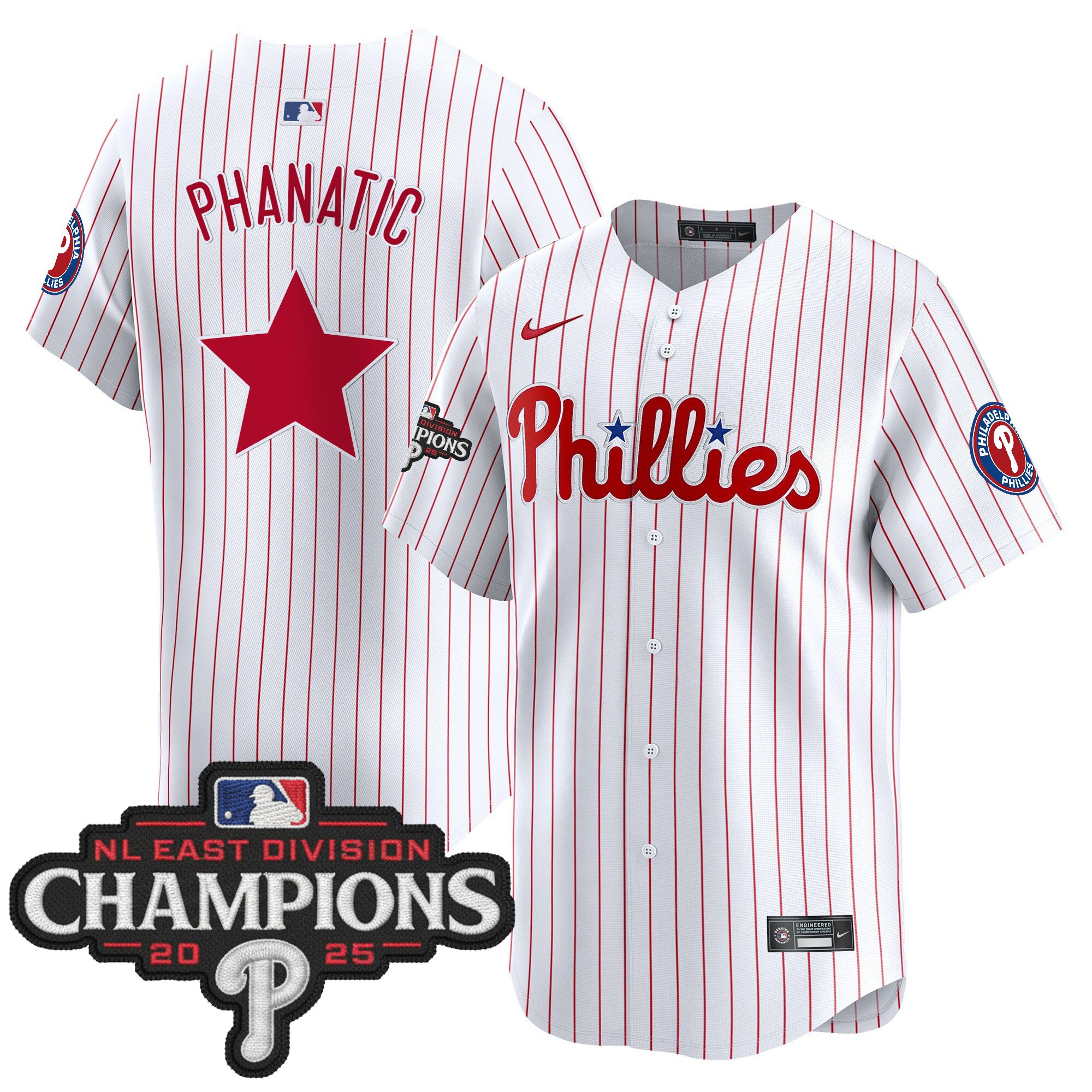 Men’s Philadelphia Phillies 2025 NL East Division Champions Patch Vapor Premier Limited Jersey – All Stitched