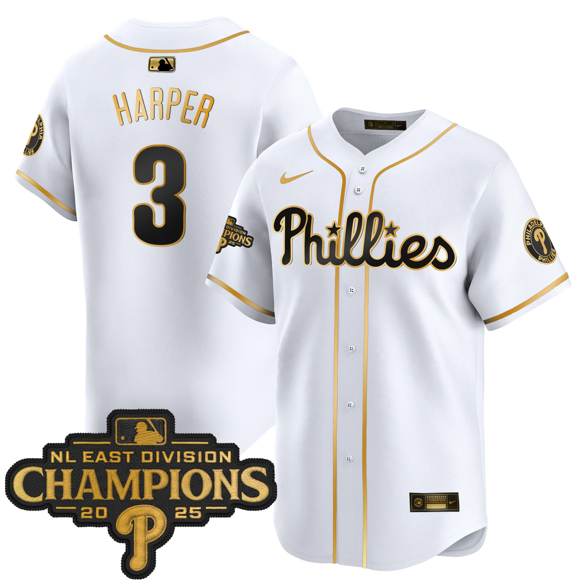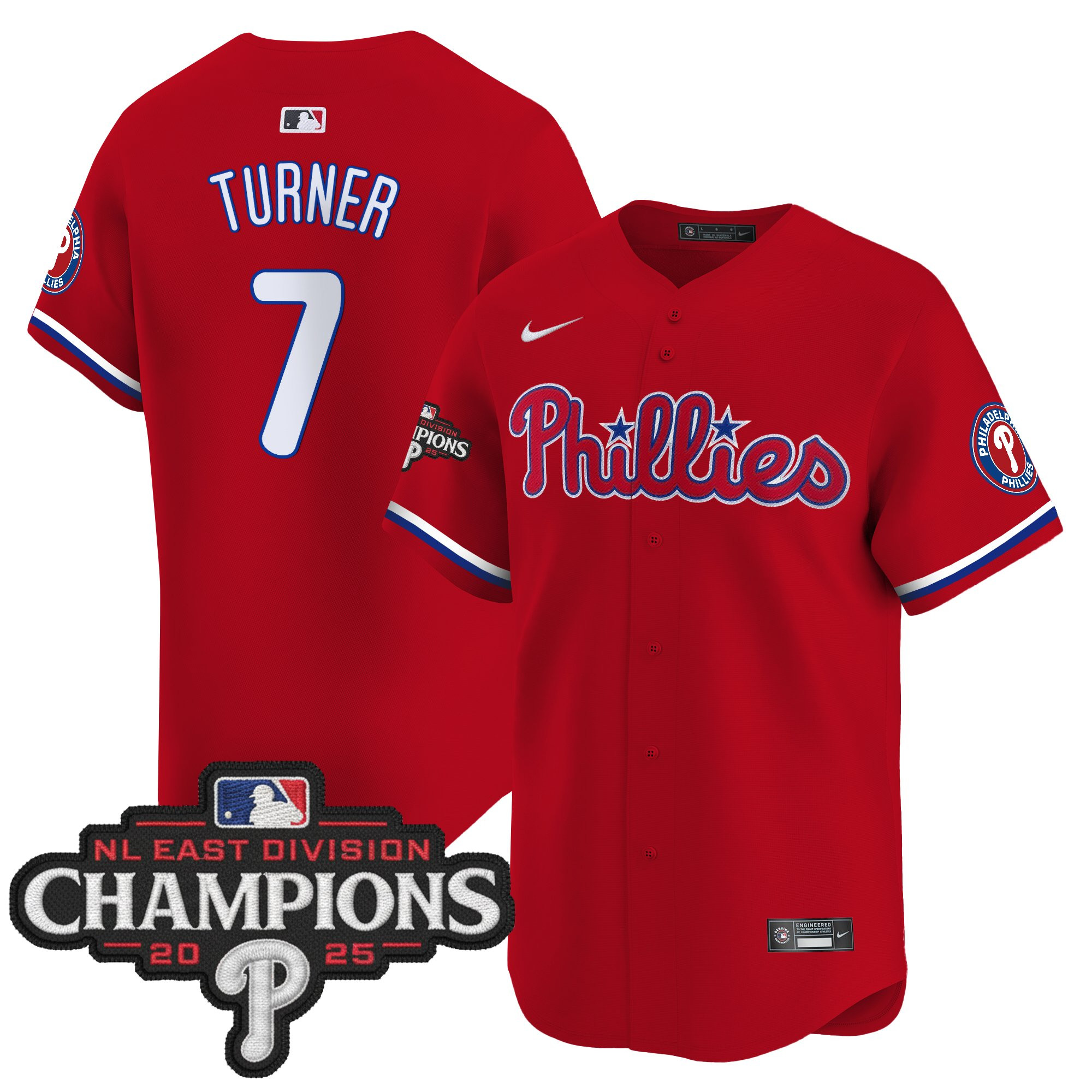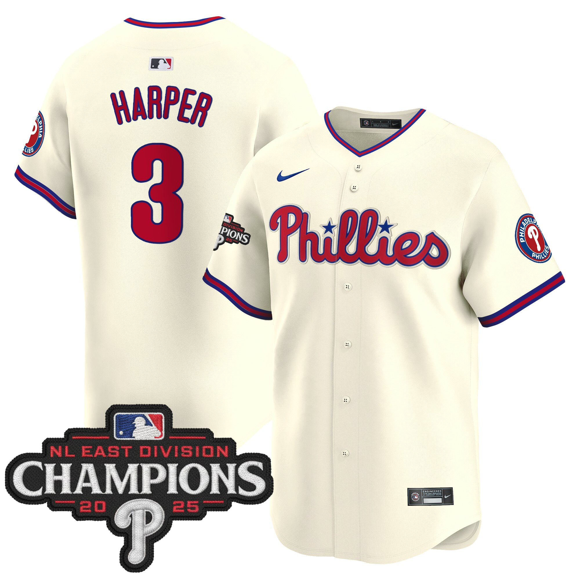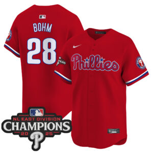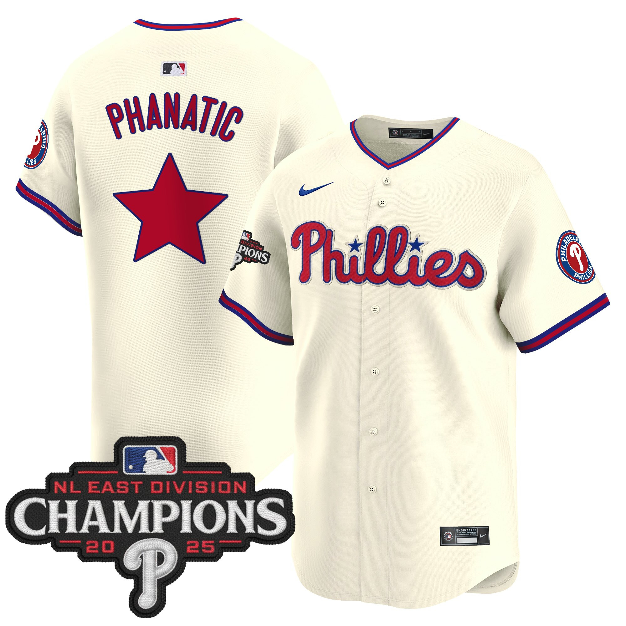 Men’s Philadelphia Phillies 2025 NL East Division Champions Patch Vapor Premier Limited Jersey – All Stitched