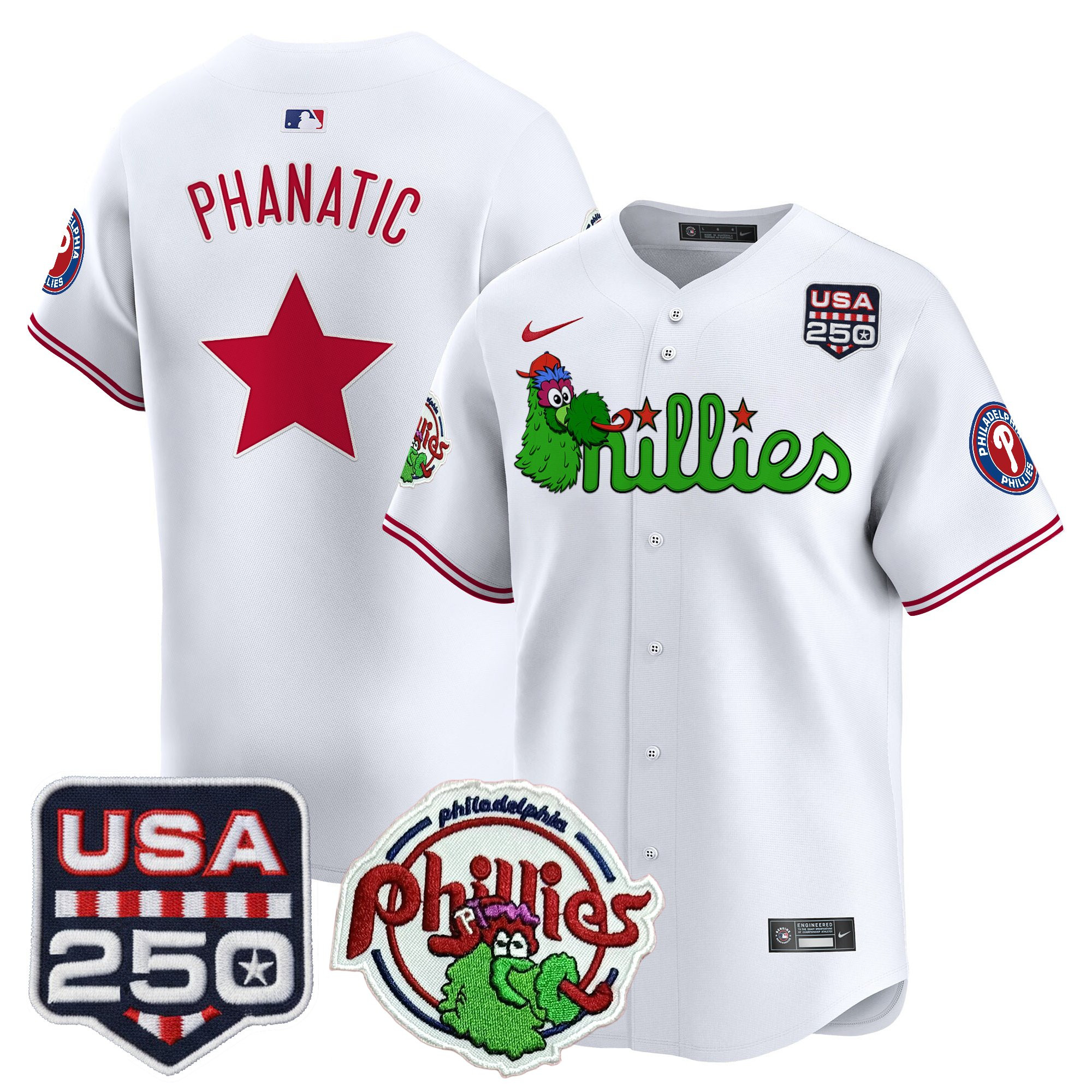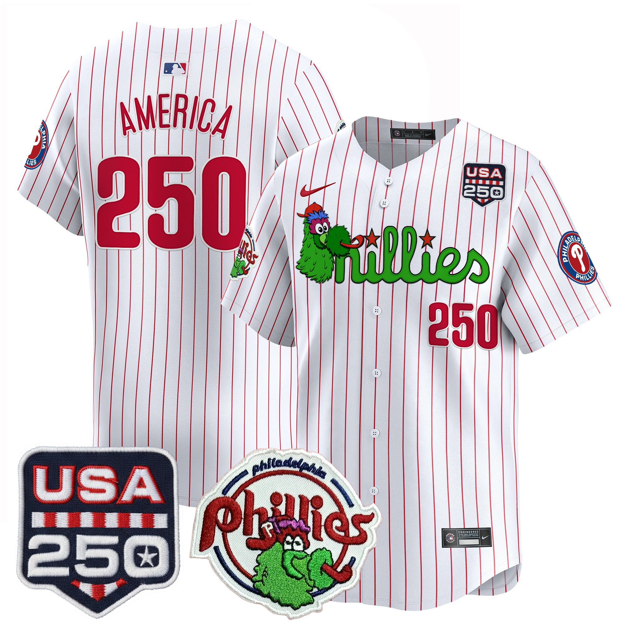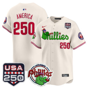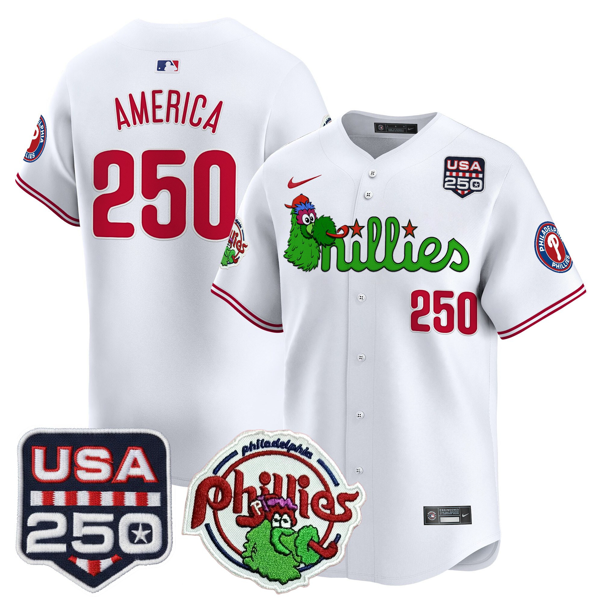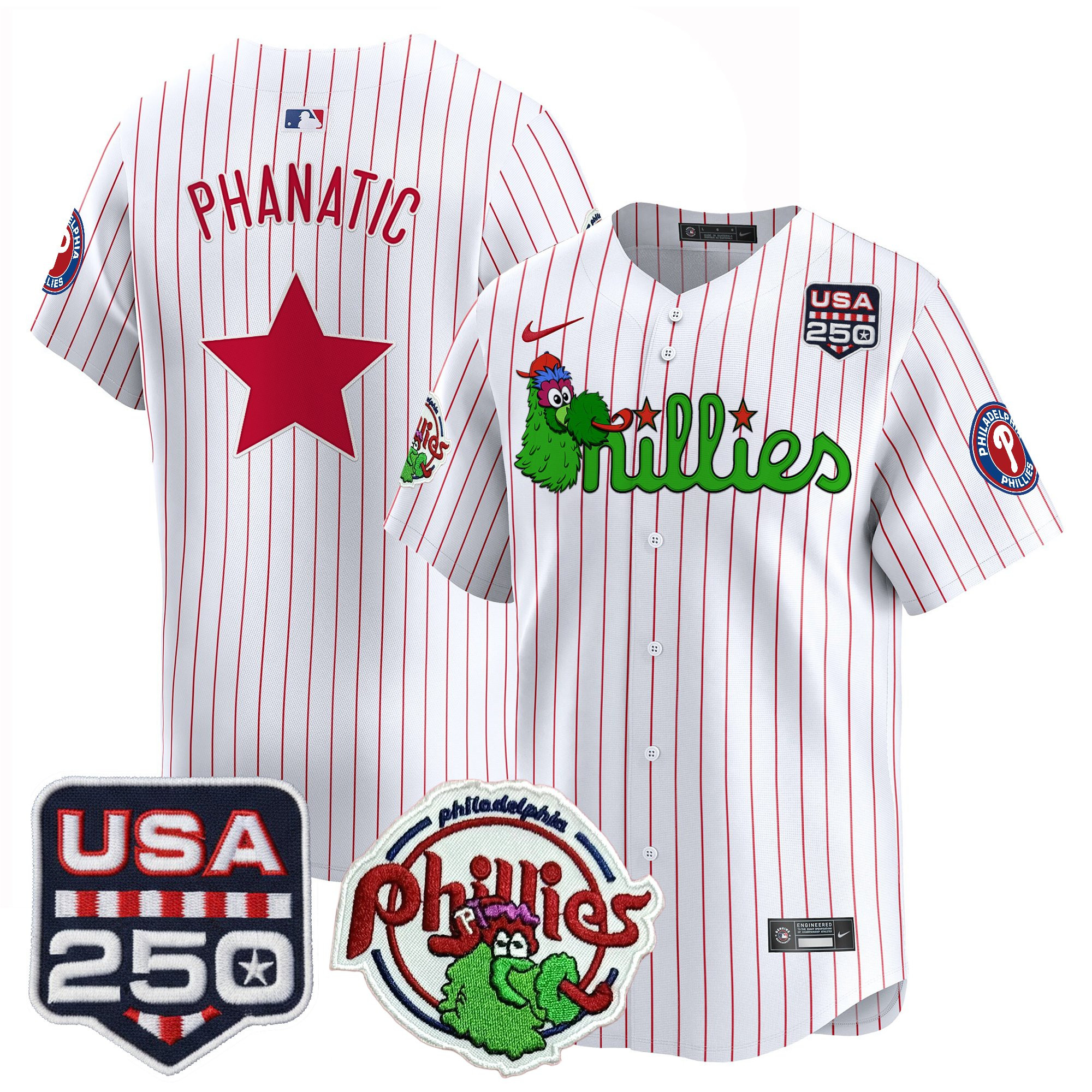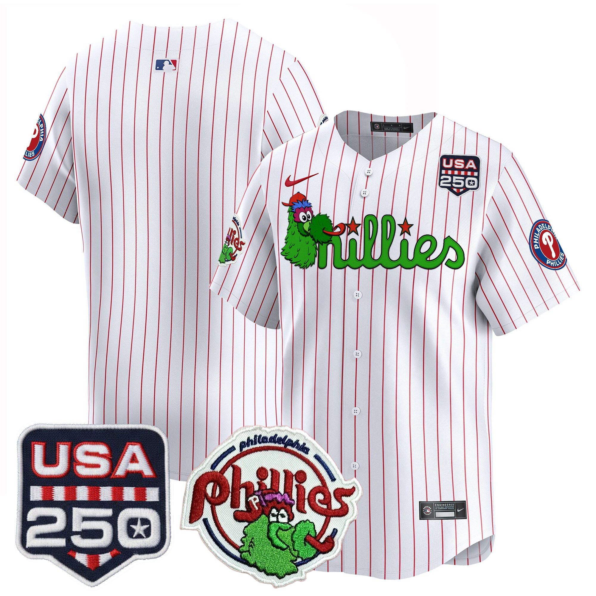 Men’s Philadelphia Phillies Phanatic & 250America Patch Vapor Premier Limited Jersey – All Stitched