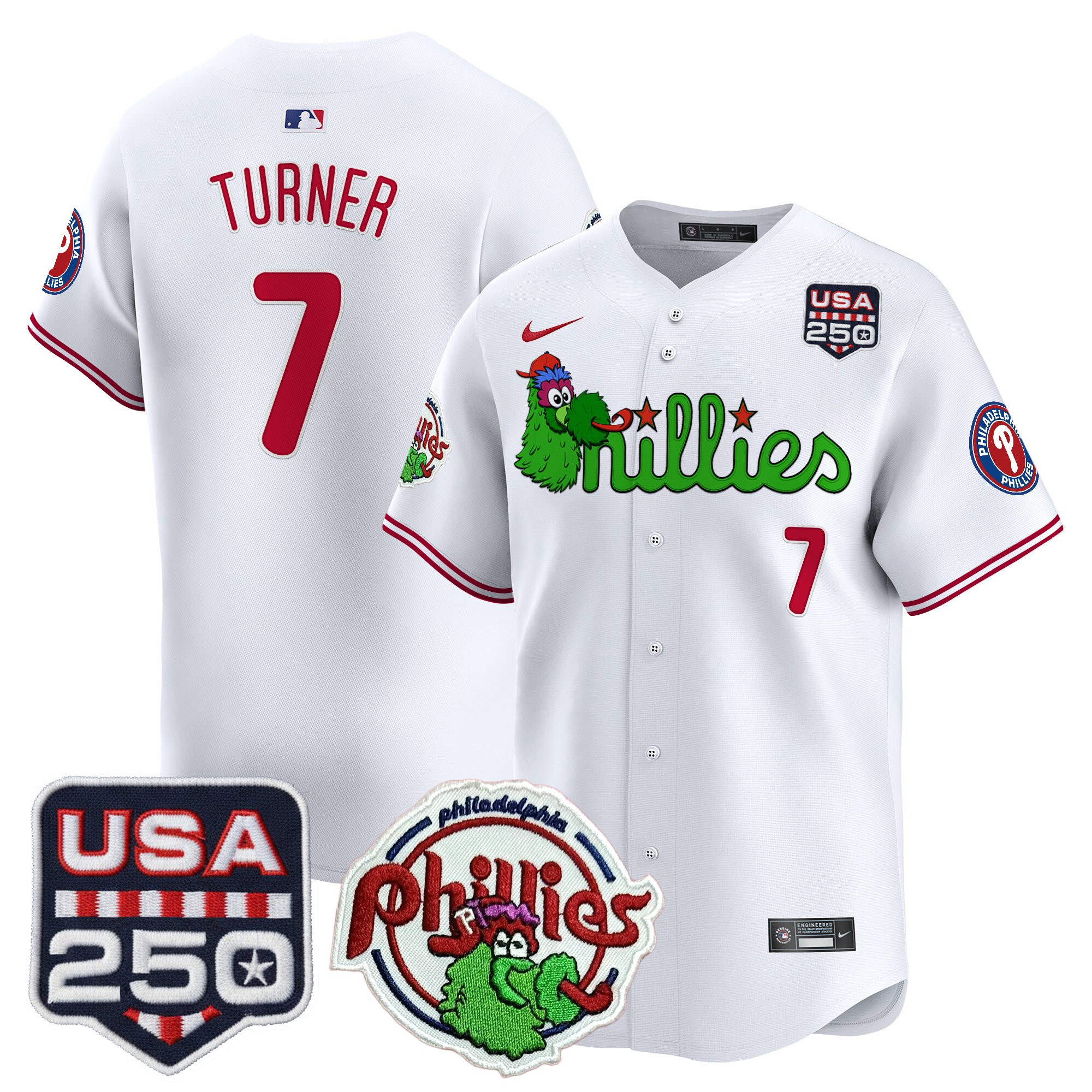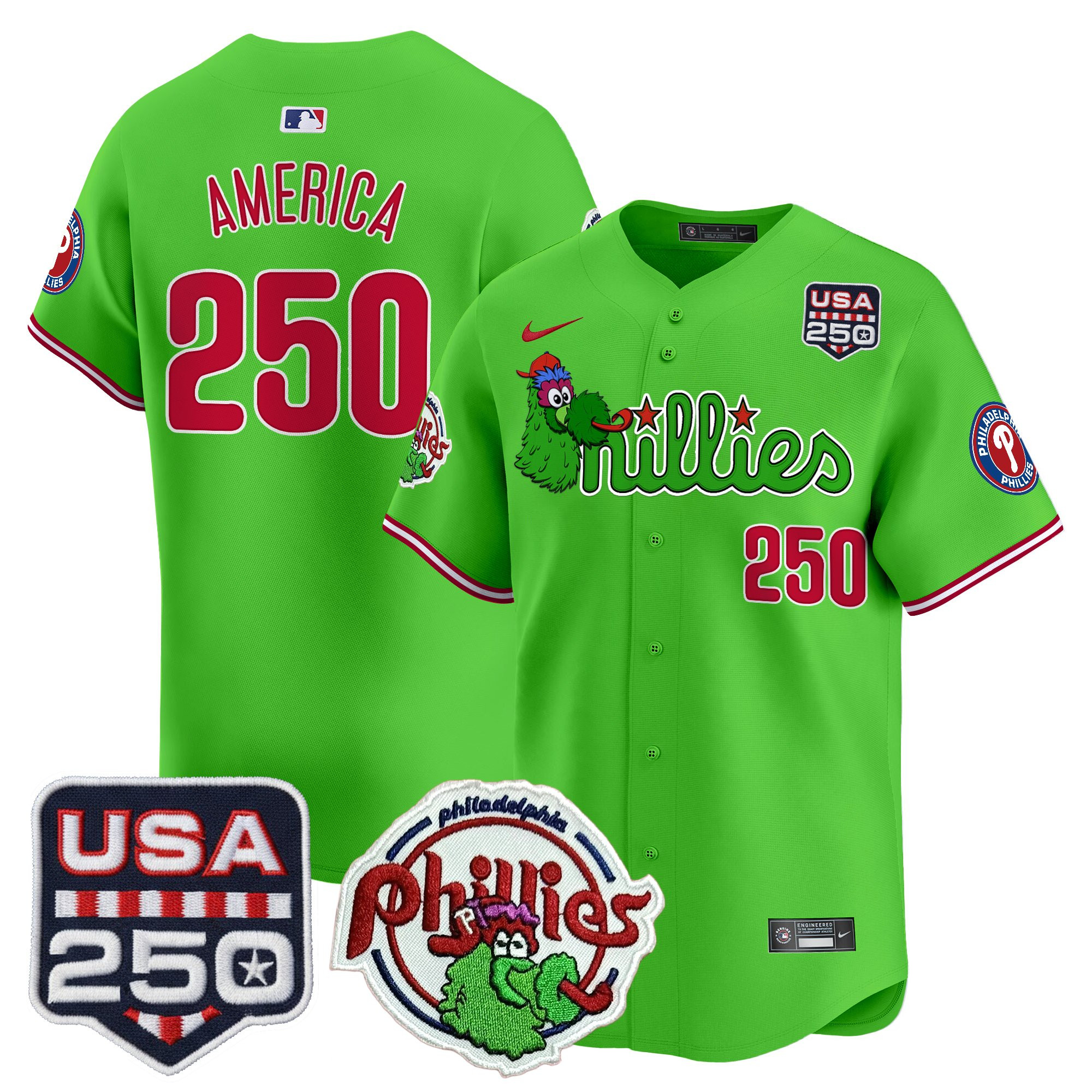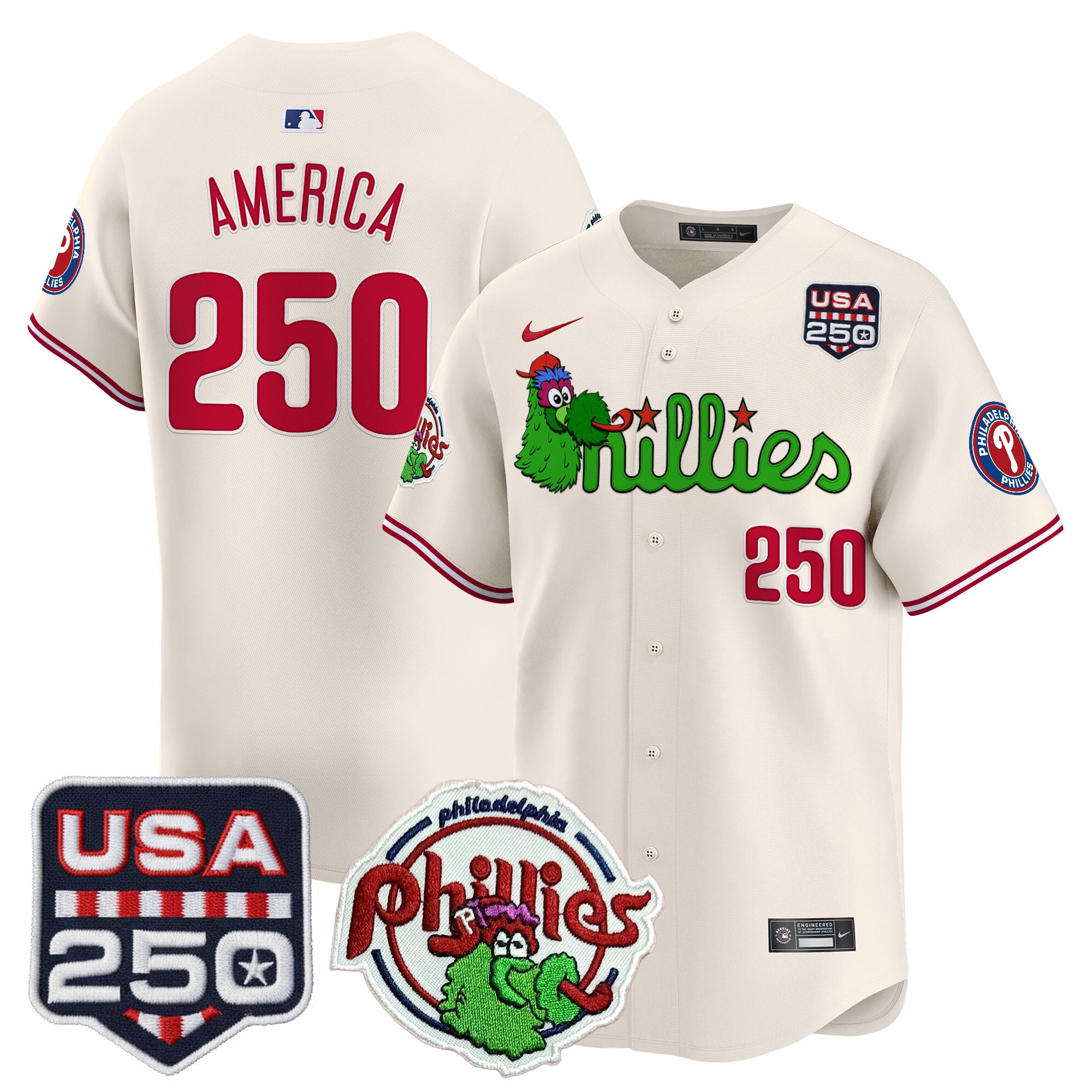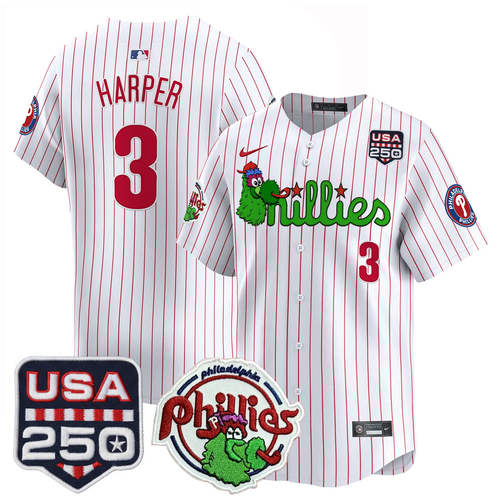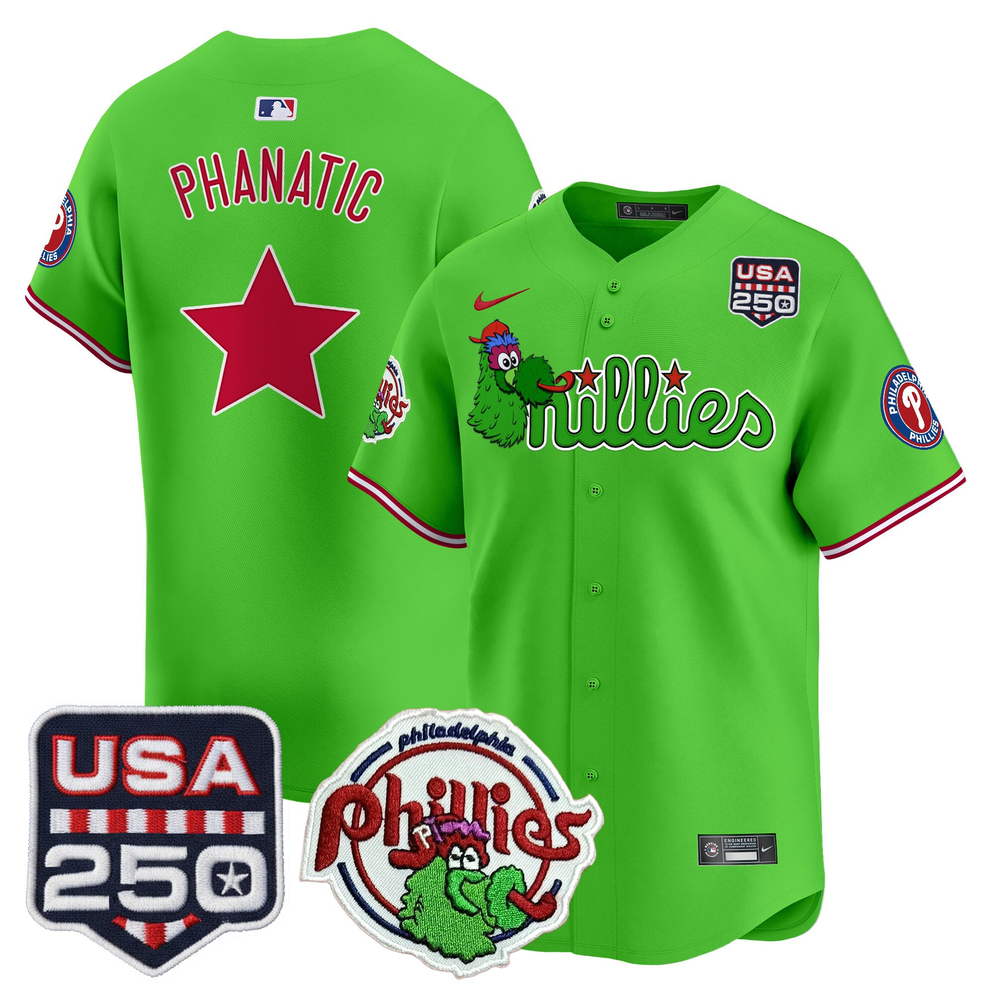 Men’s Philadelphia Phillies Phanatic & 250America Patch Vapor Premier Limited Jersey – All Stitched