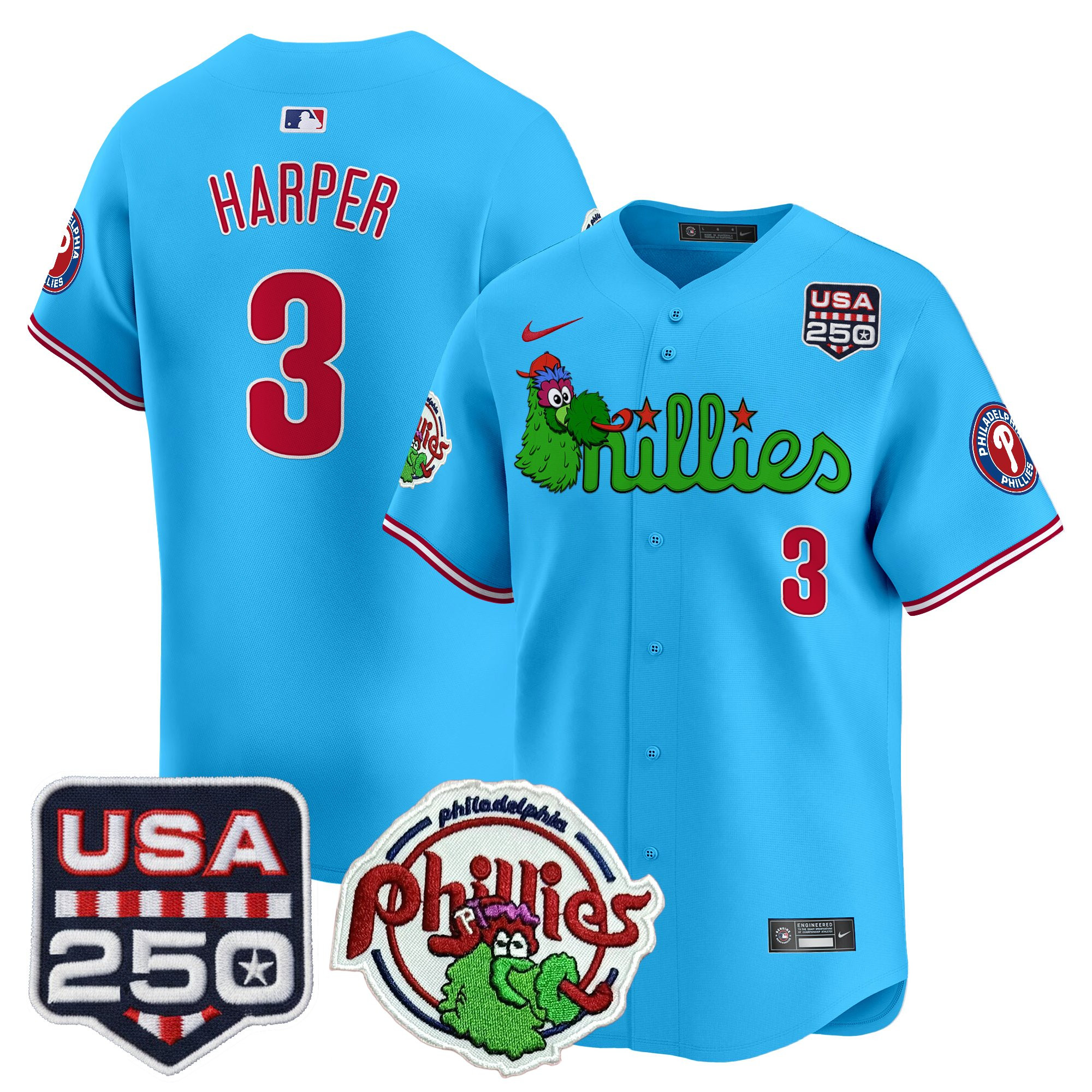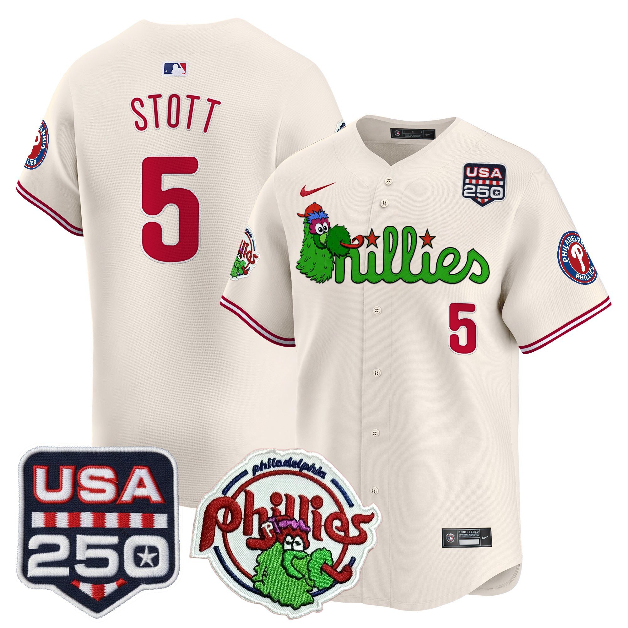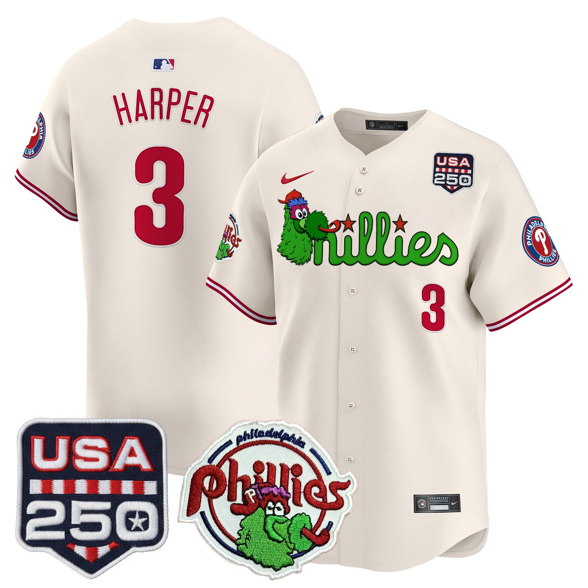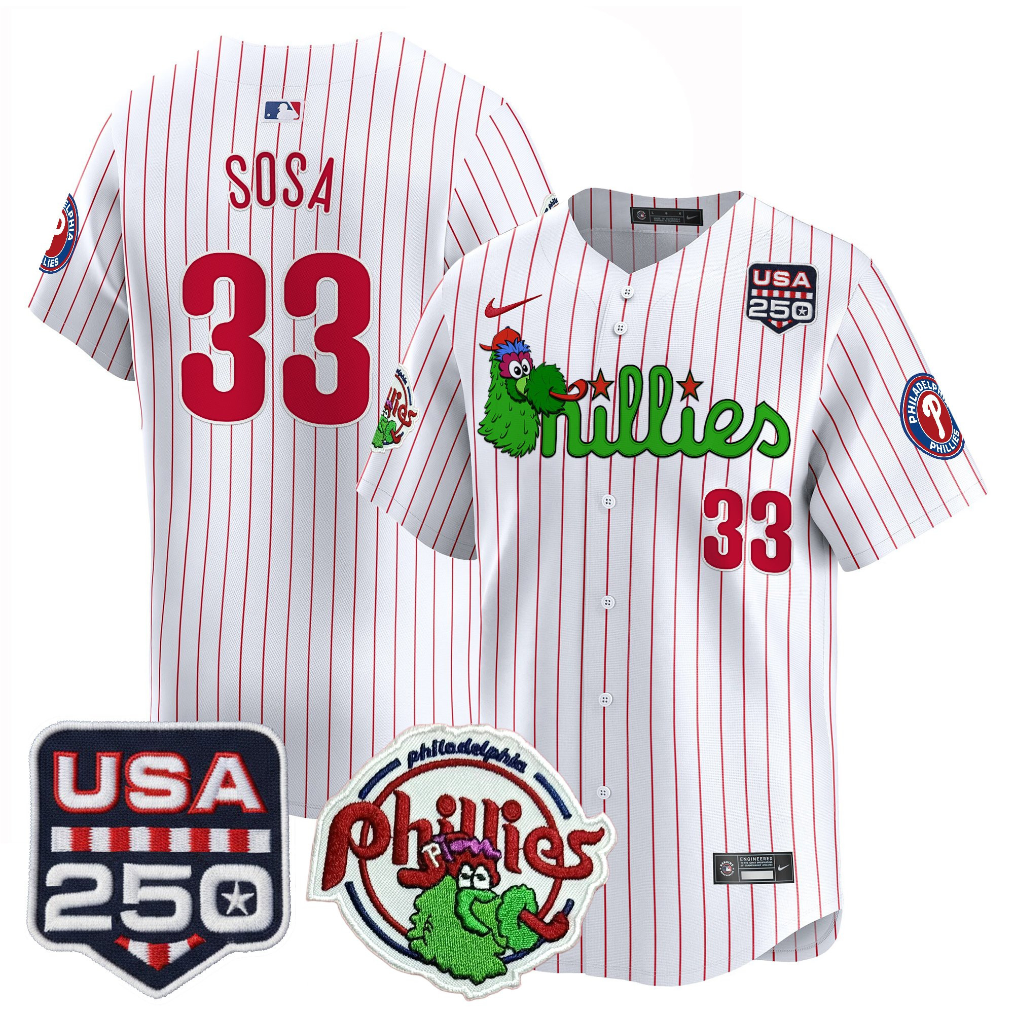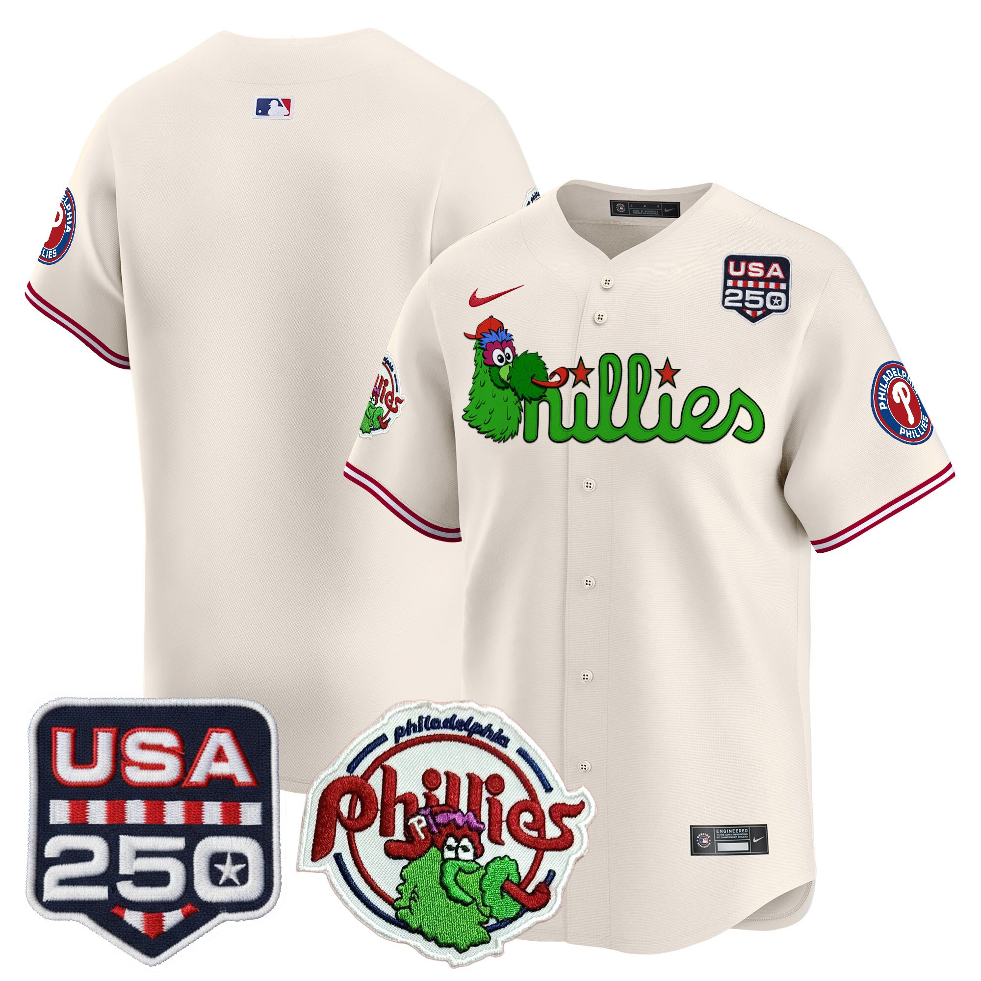 Men’s Philadelphia Phillies Phanatic & 250America Patch Vapor Premier Limited Jersey – All Stitched