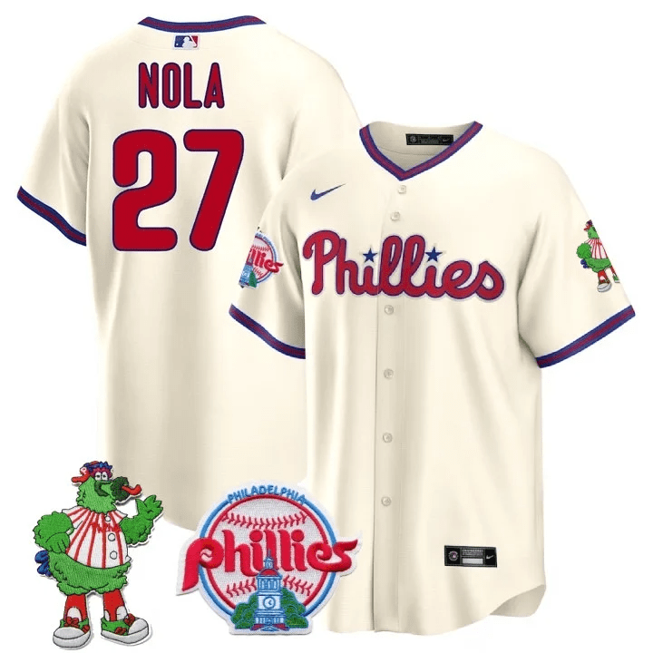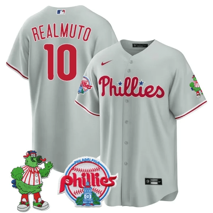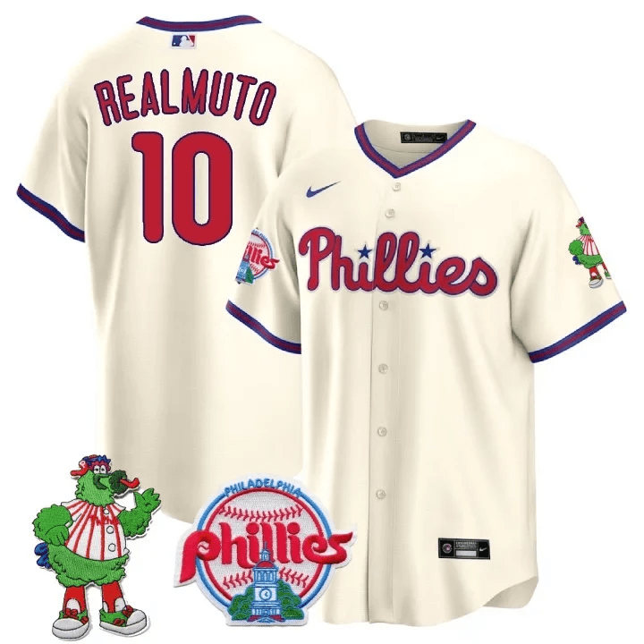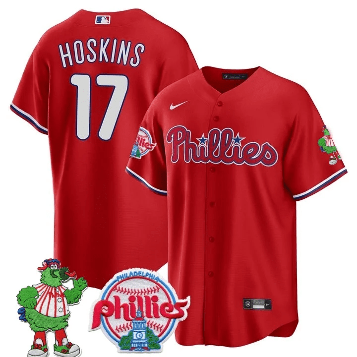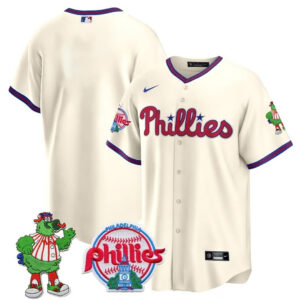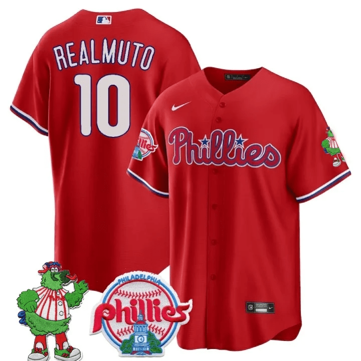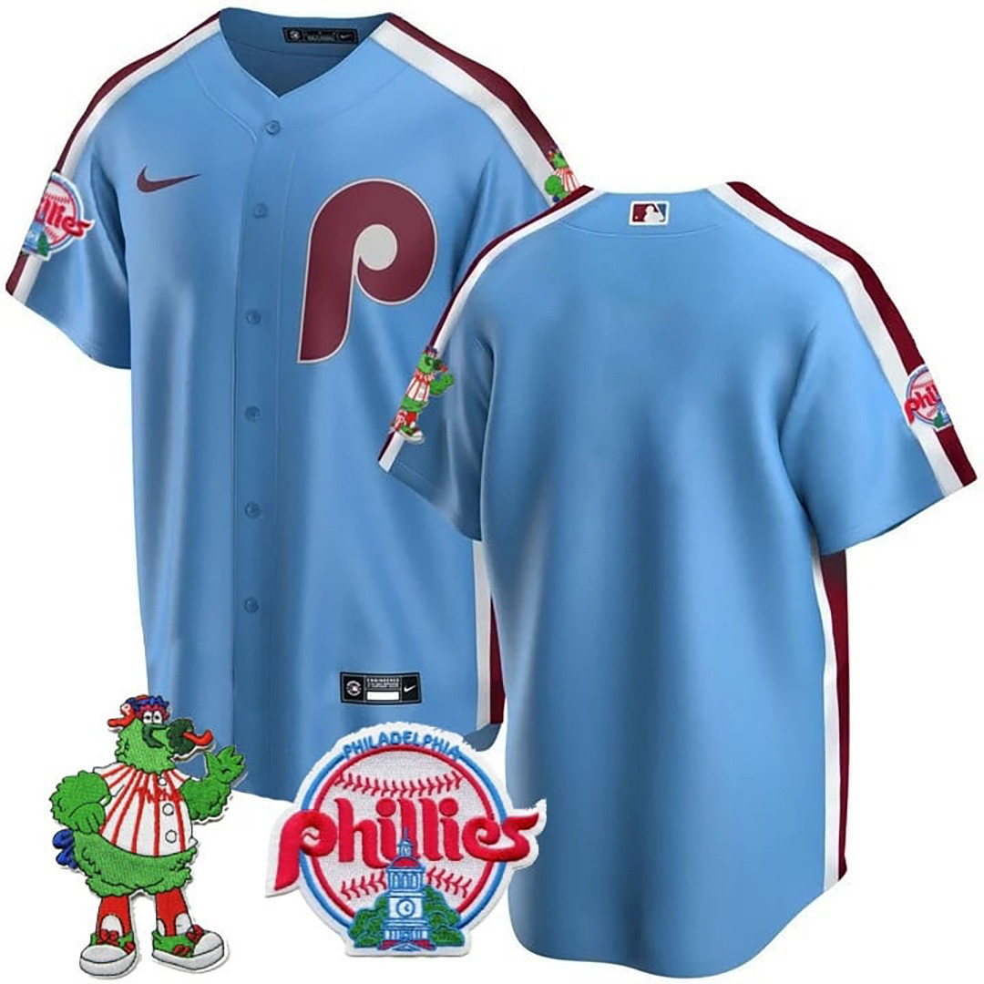 Men’s Philadelphia Phillies Phillie Phanatic Patch Cool Base Jersey – All Stitched