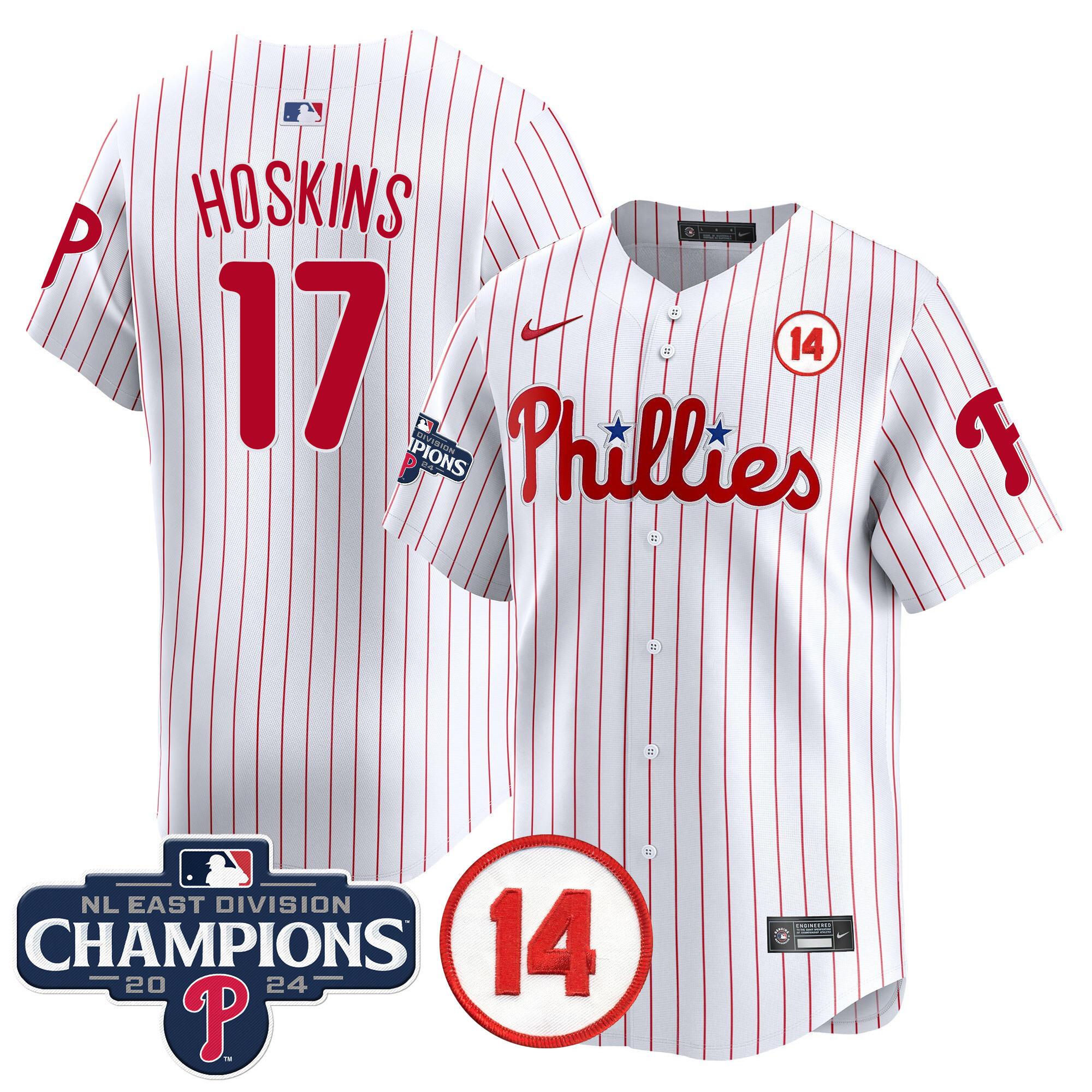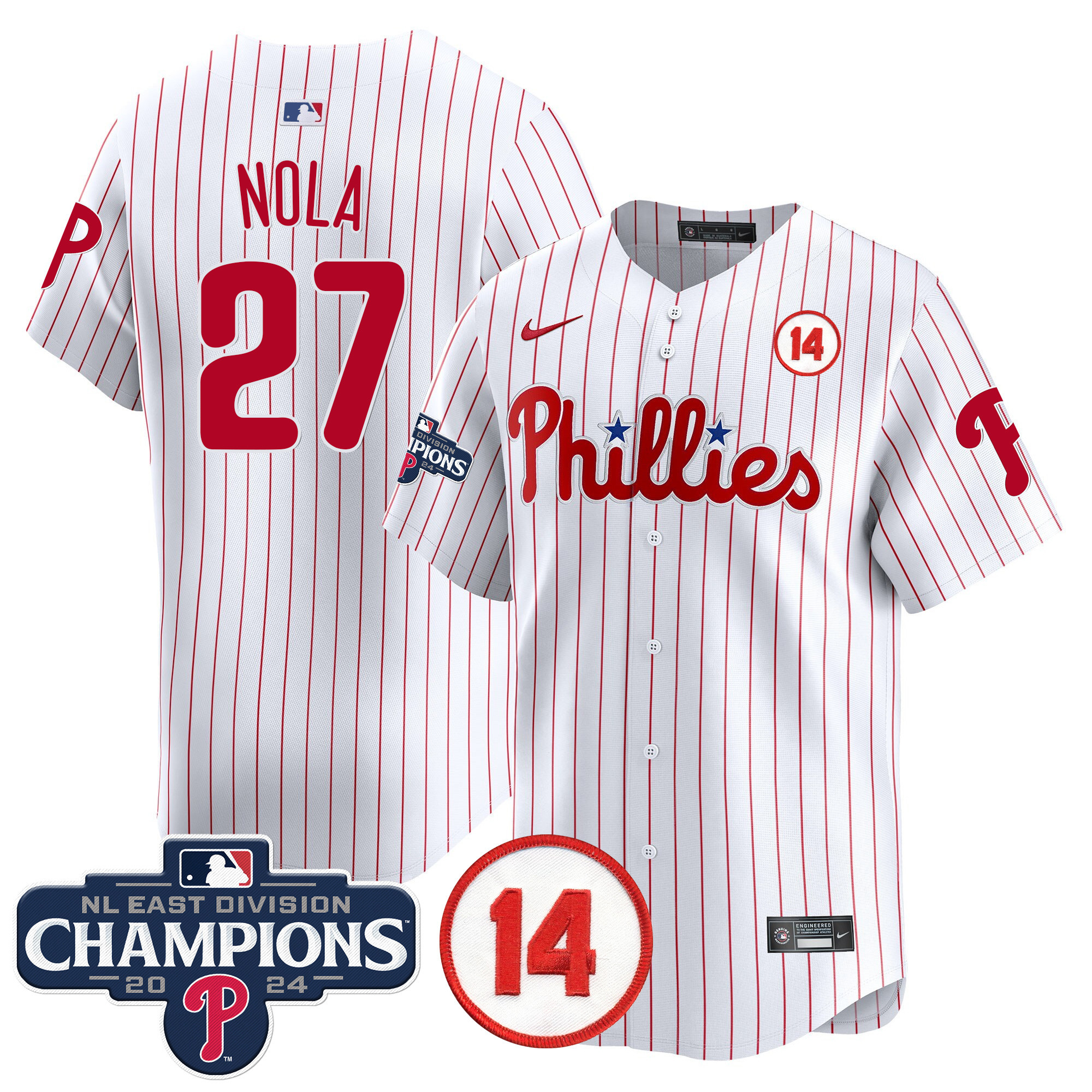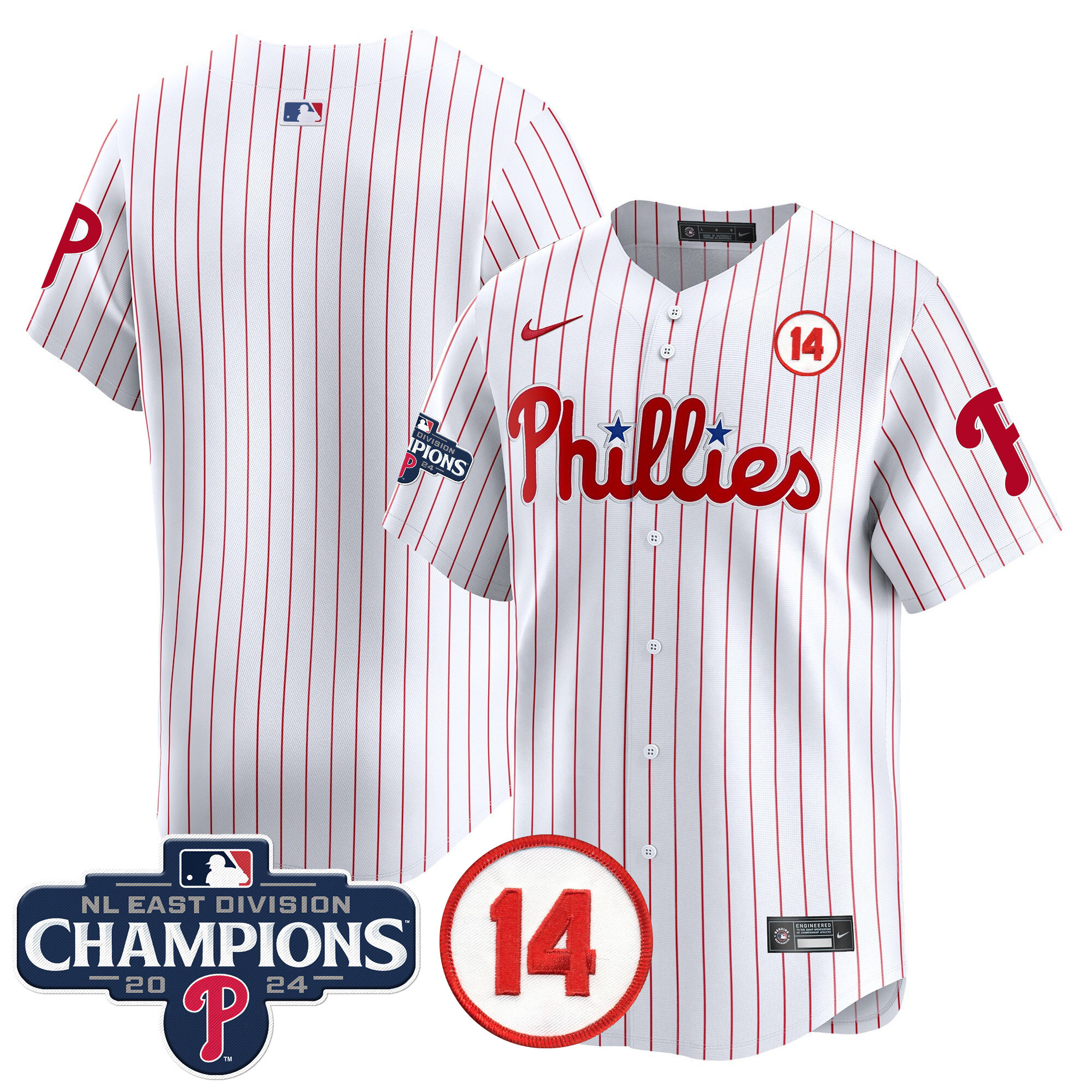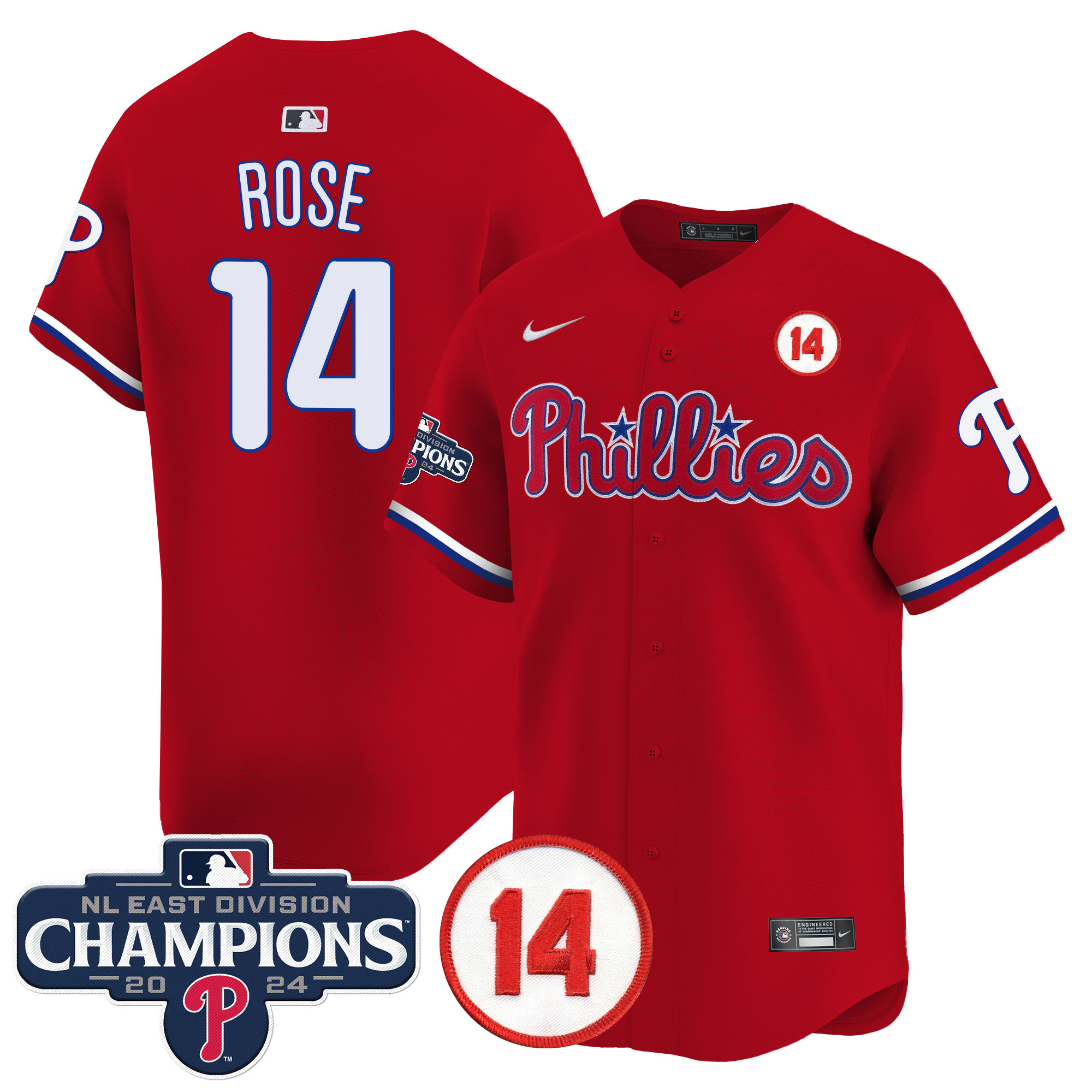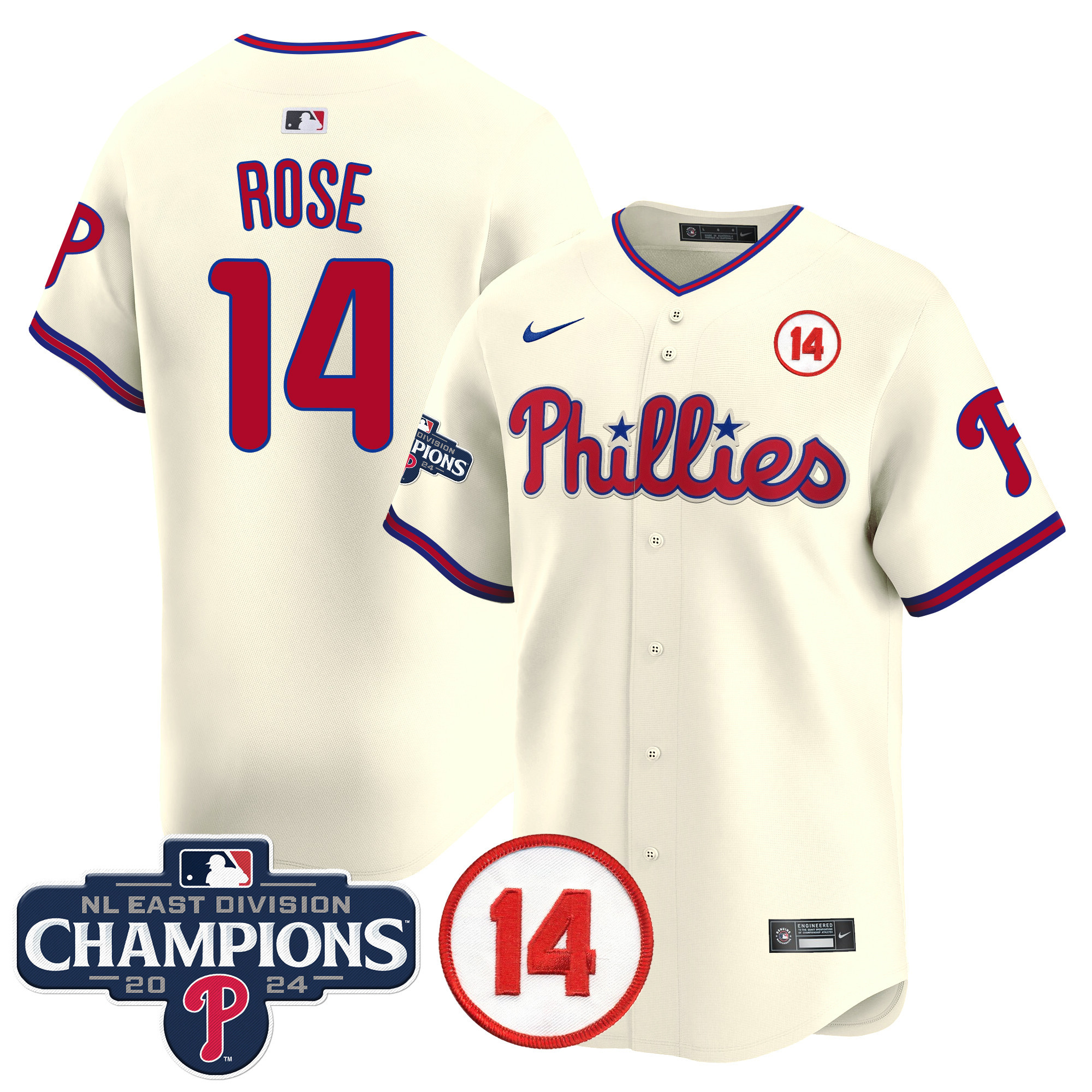 Men’s Phillies 2024 NL East Division Champions & Pete Rose Patch Vapor Premier Limited Jersey – All Stitched