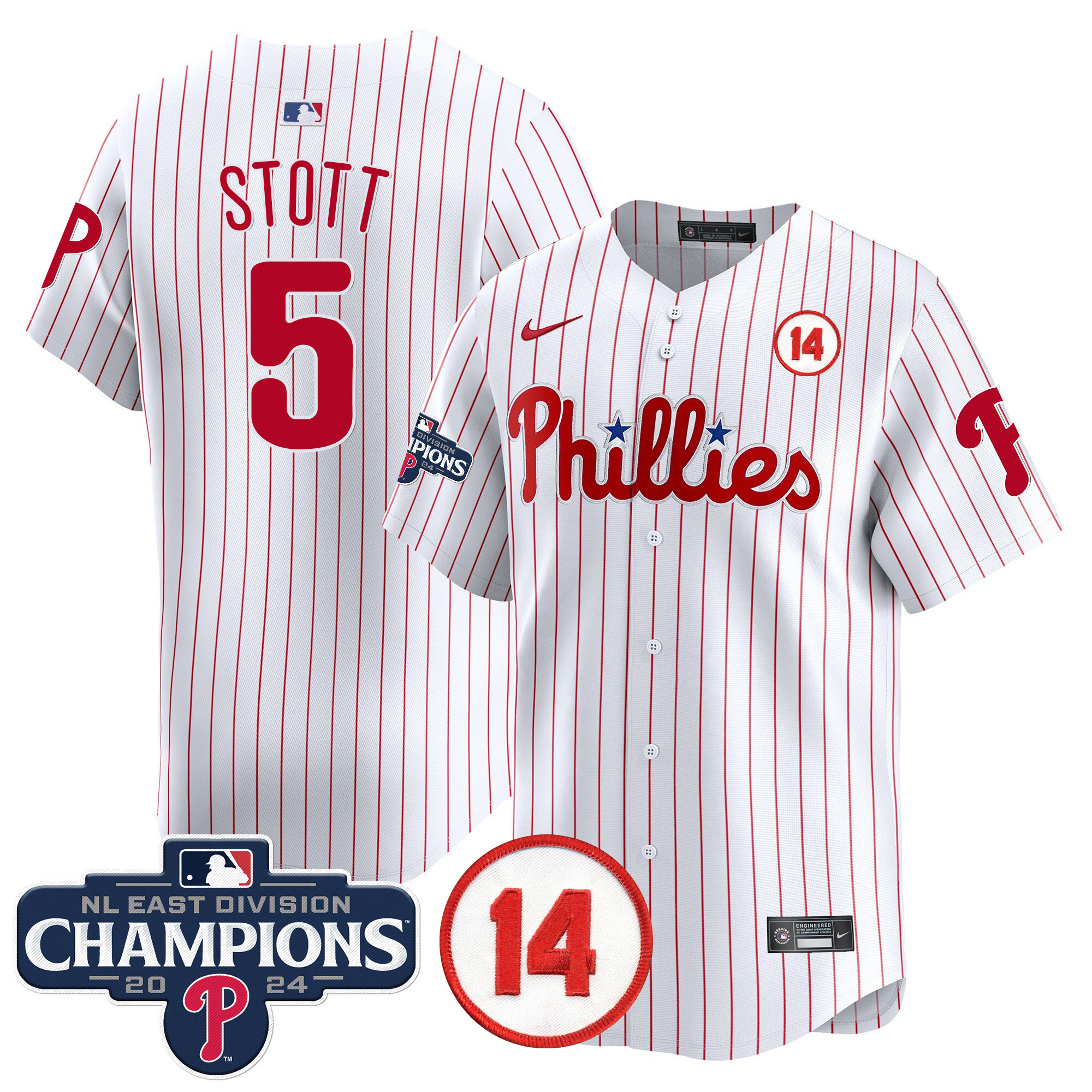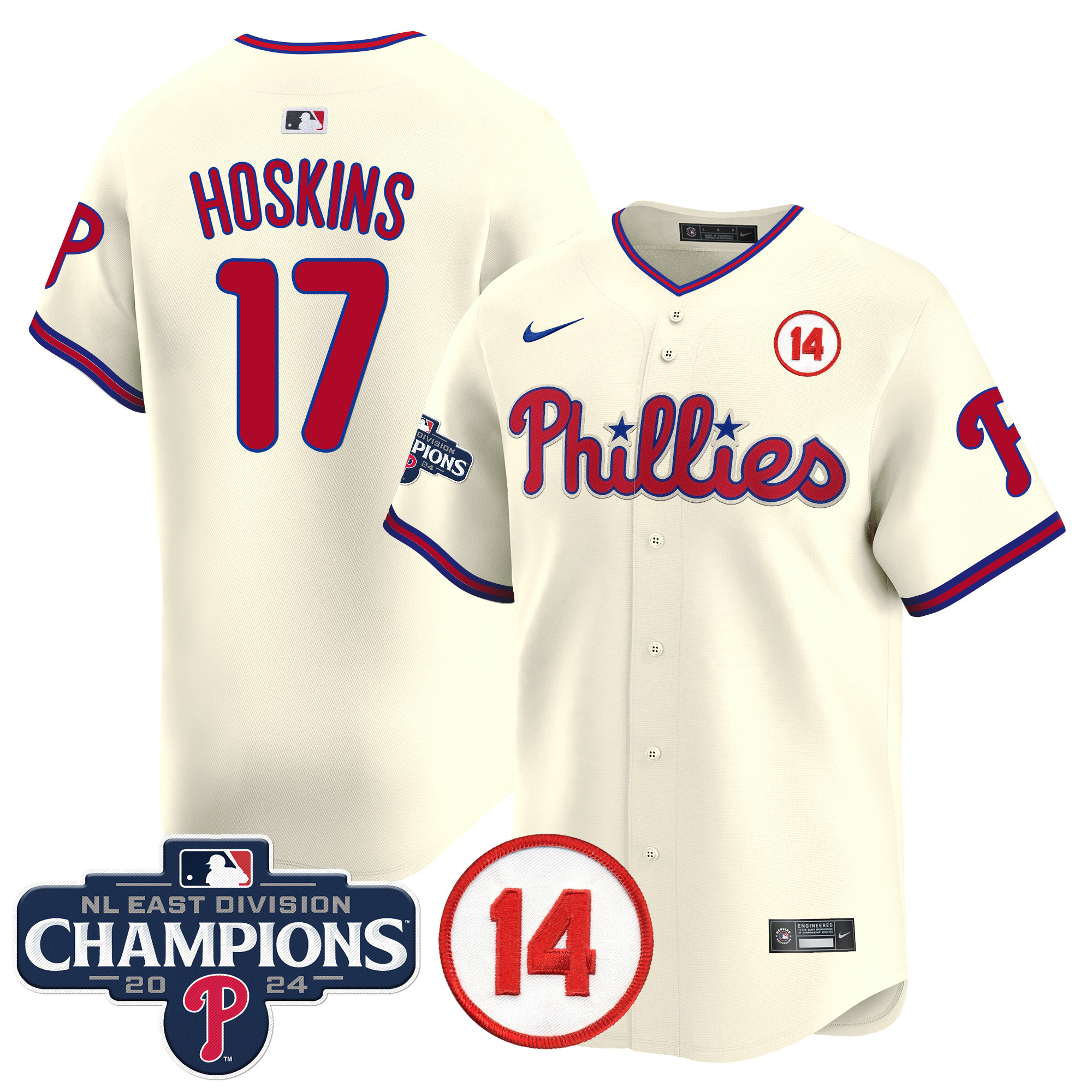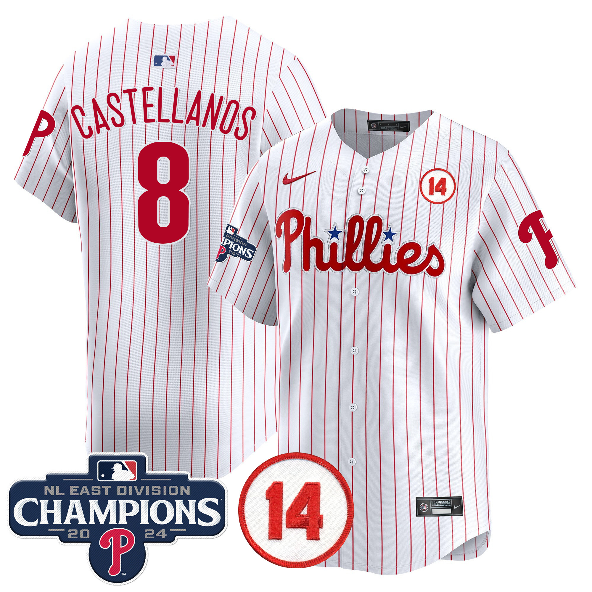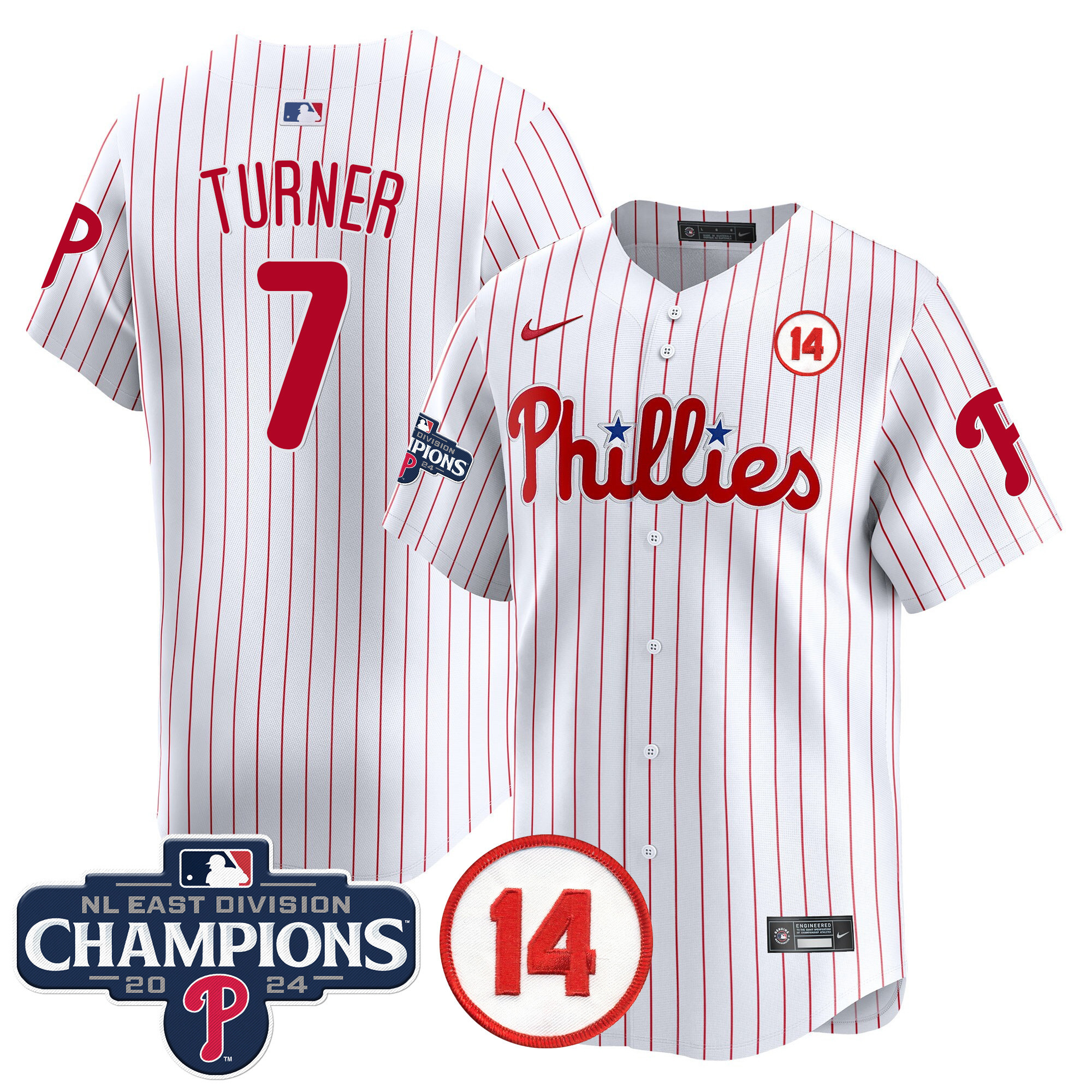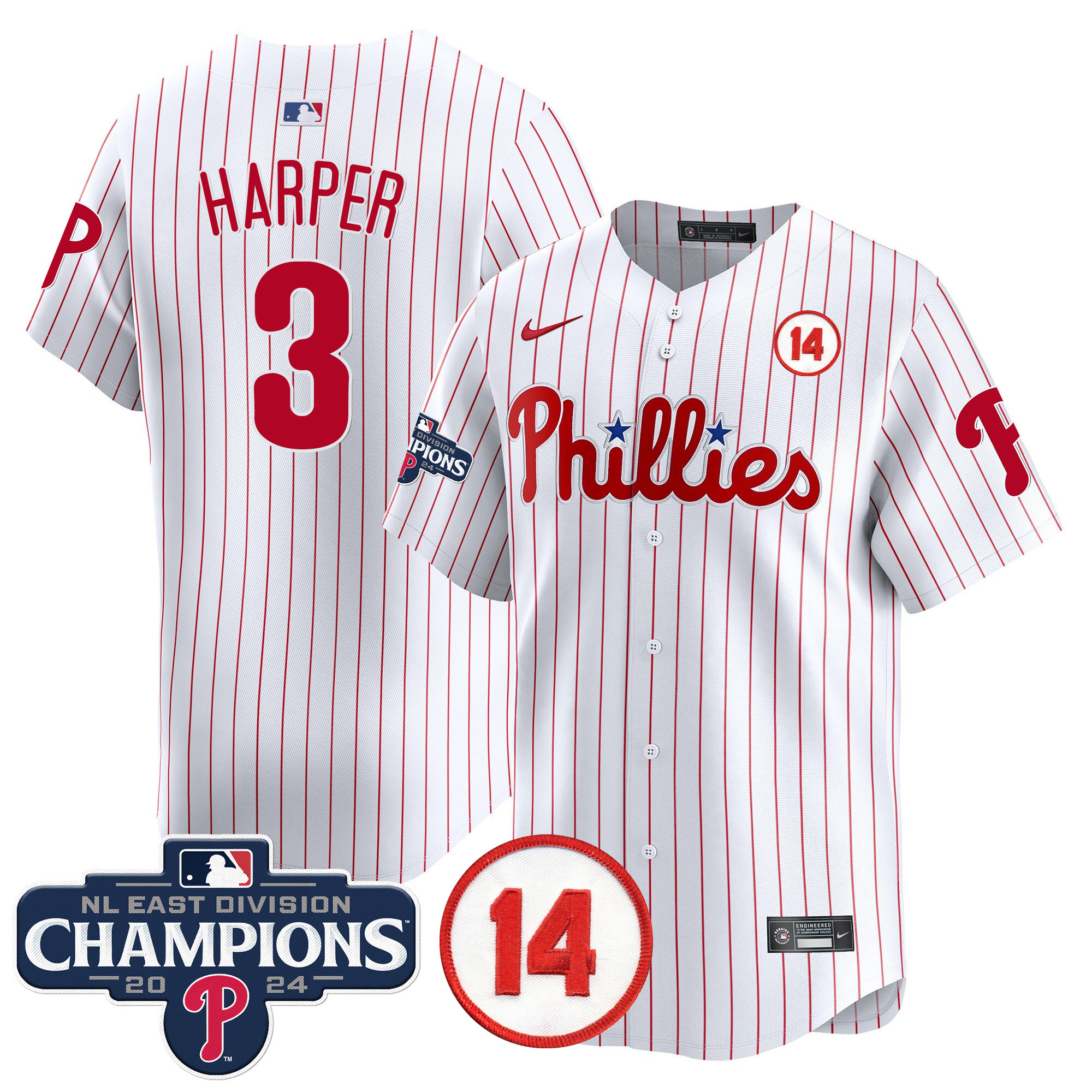 Men’s Phillies 2024 NL East Division Champions & Pete Rose Patch Vapor Premier Limited Jersey – All Stitched