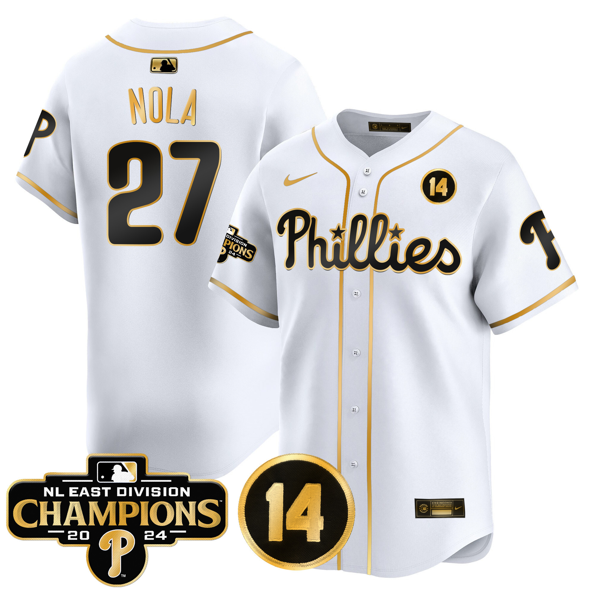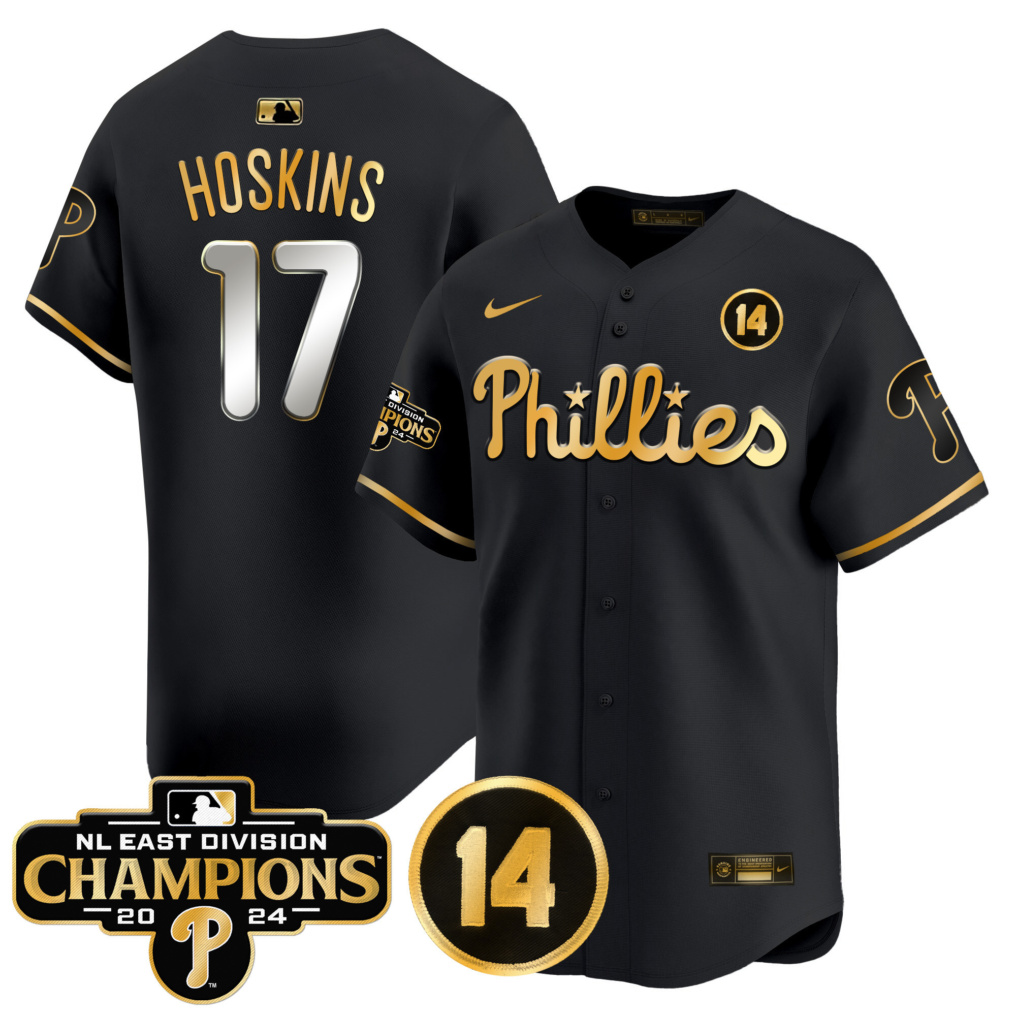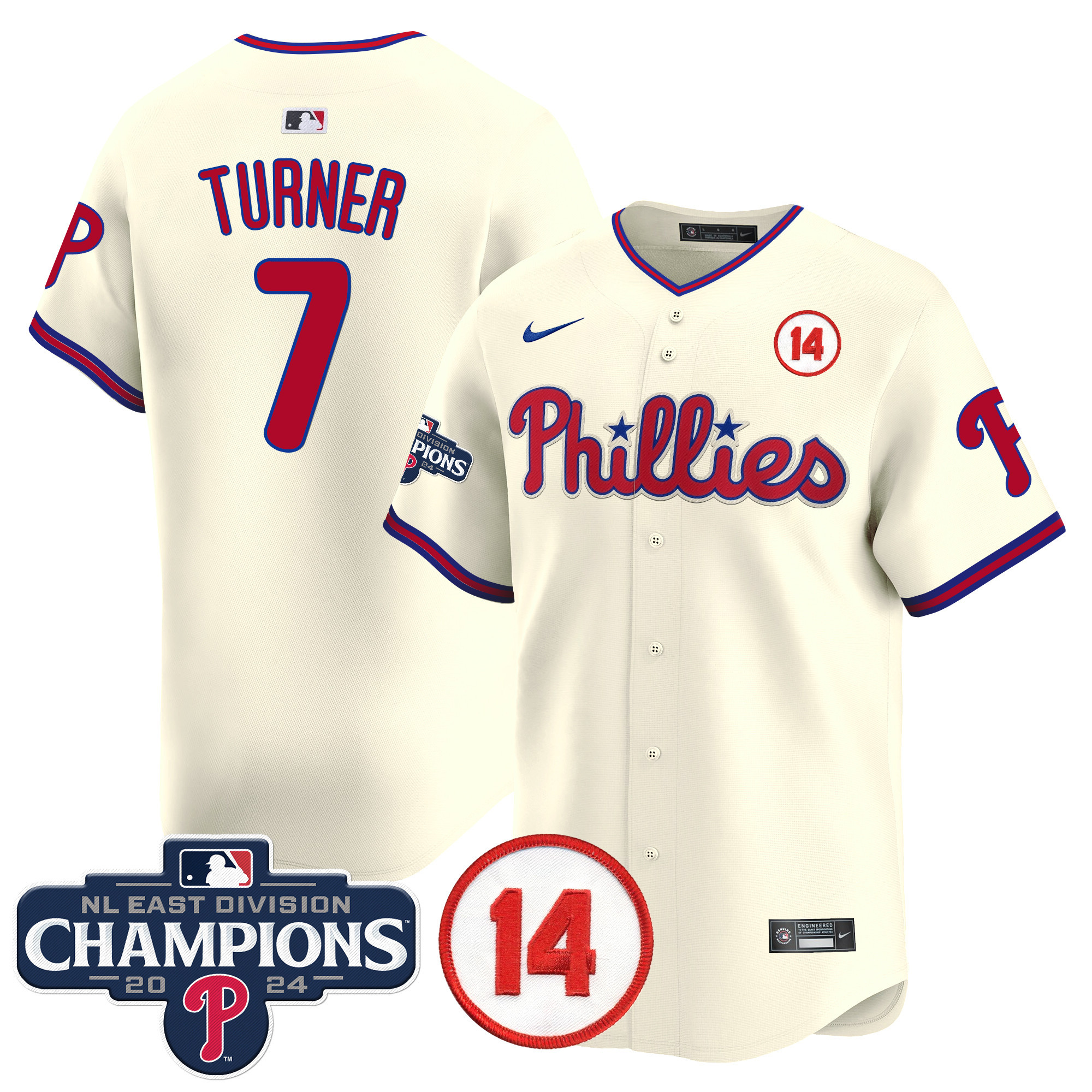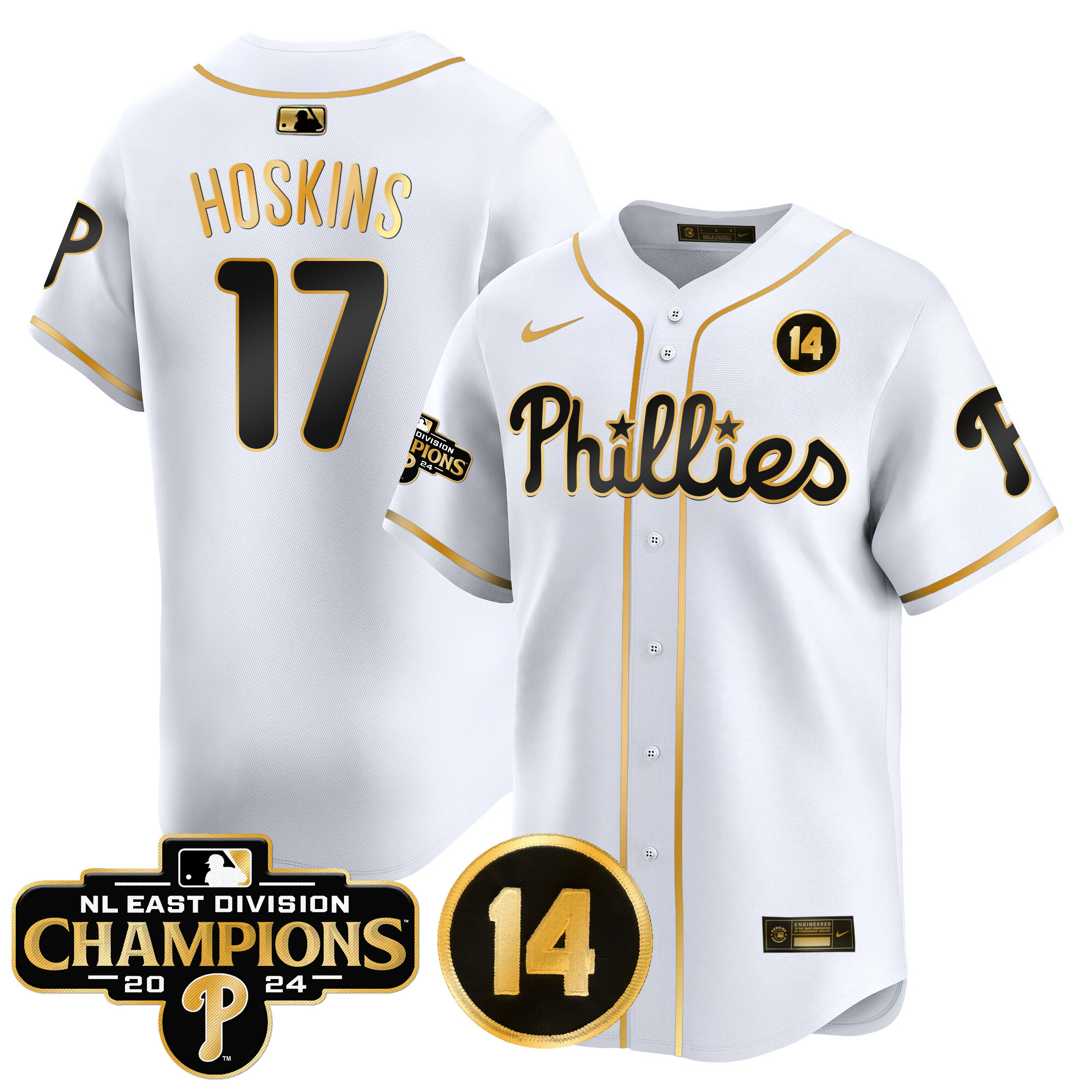 Men’s Phillies 2024 NL East Division Champions & Pete Rose Patch Vapor Premier Limited Jersey – All Stitched