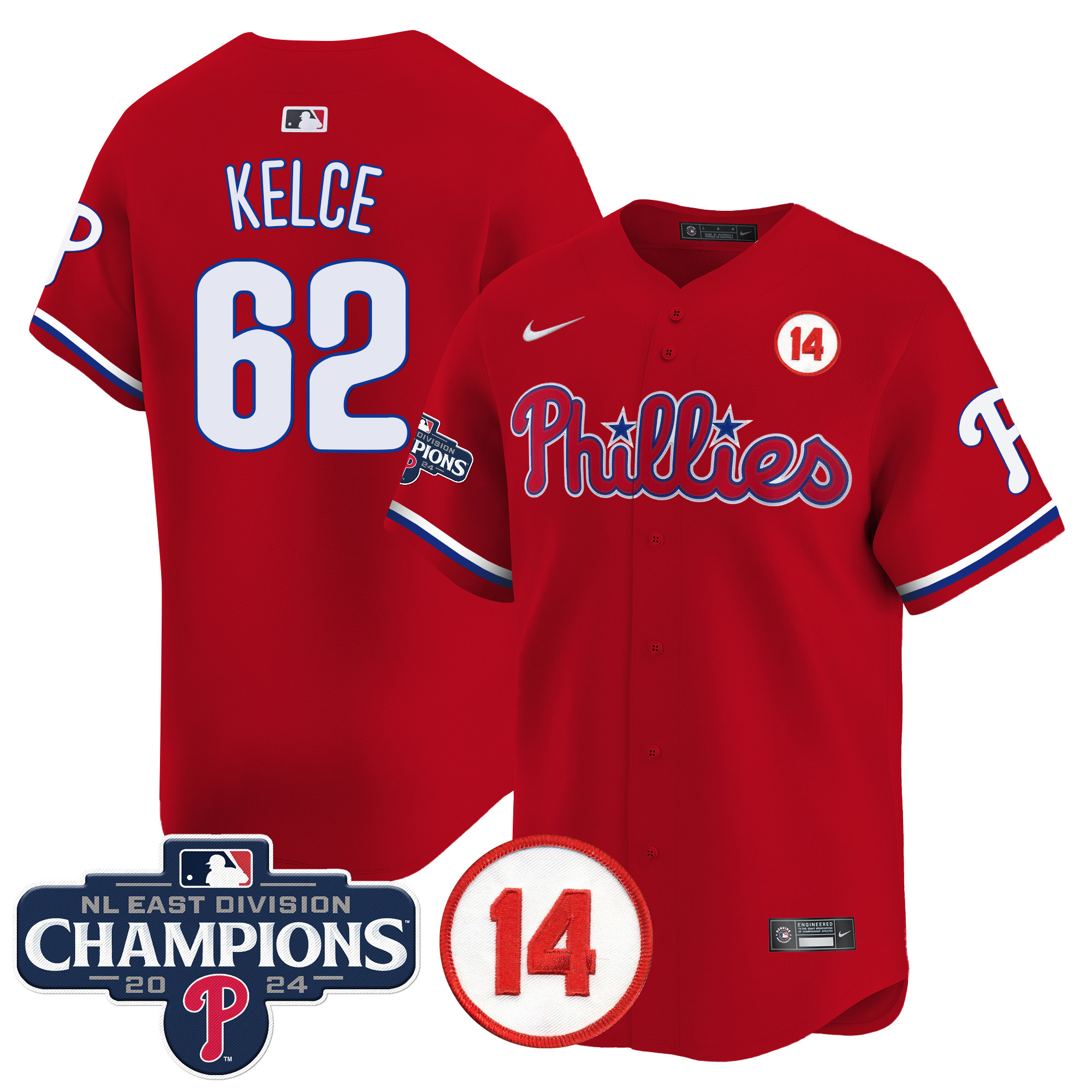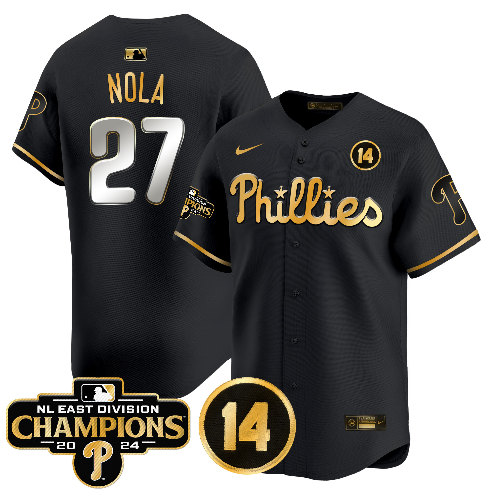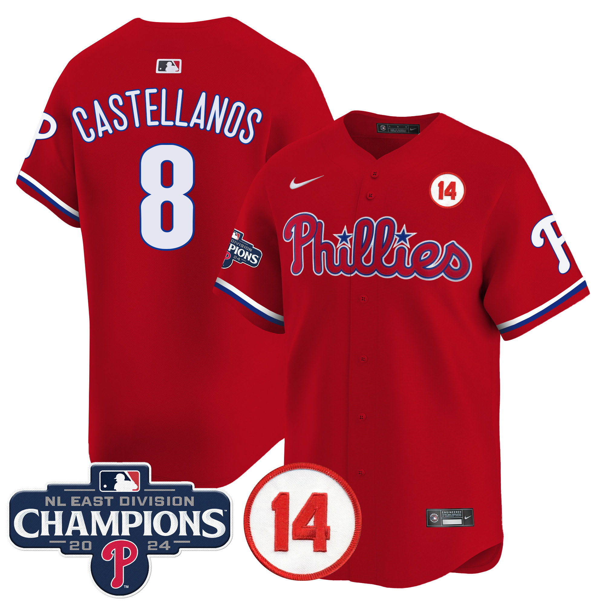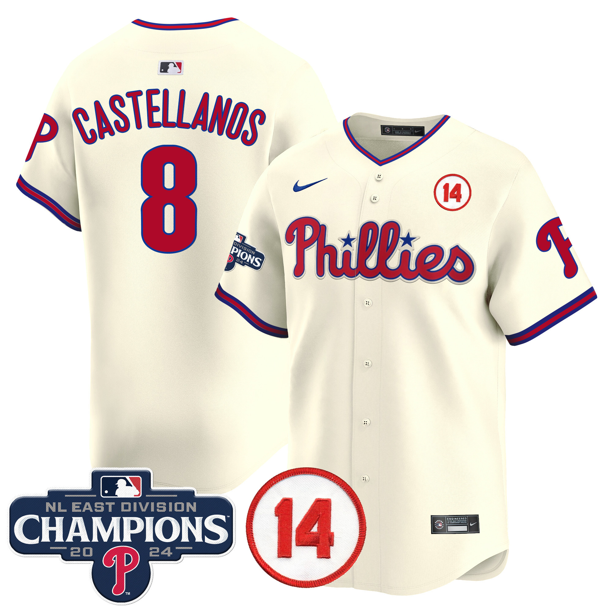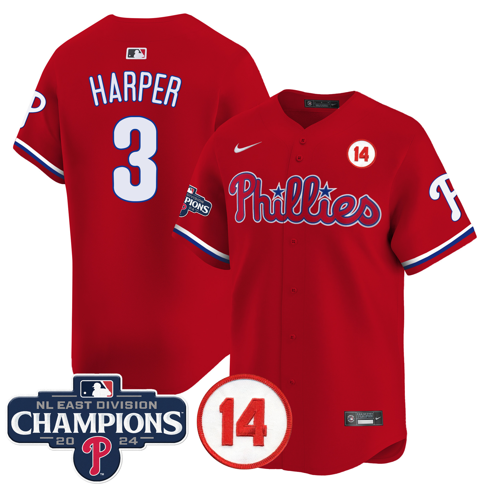 Men’s Phillies 2024 NL East Division Champions & Pete Rose Patch Vapor Premier Limited Jersey – All Stitched