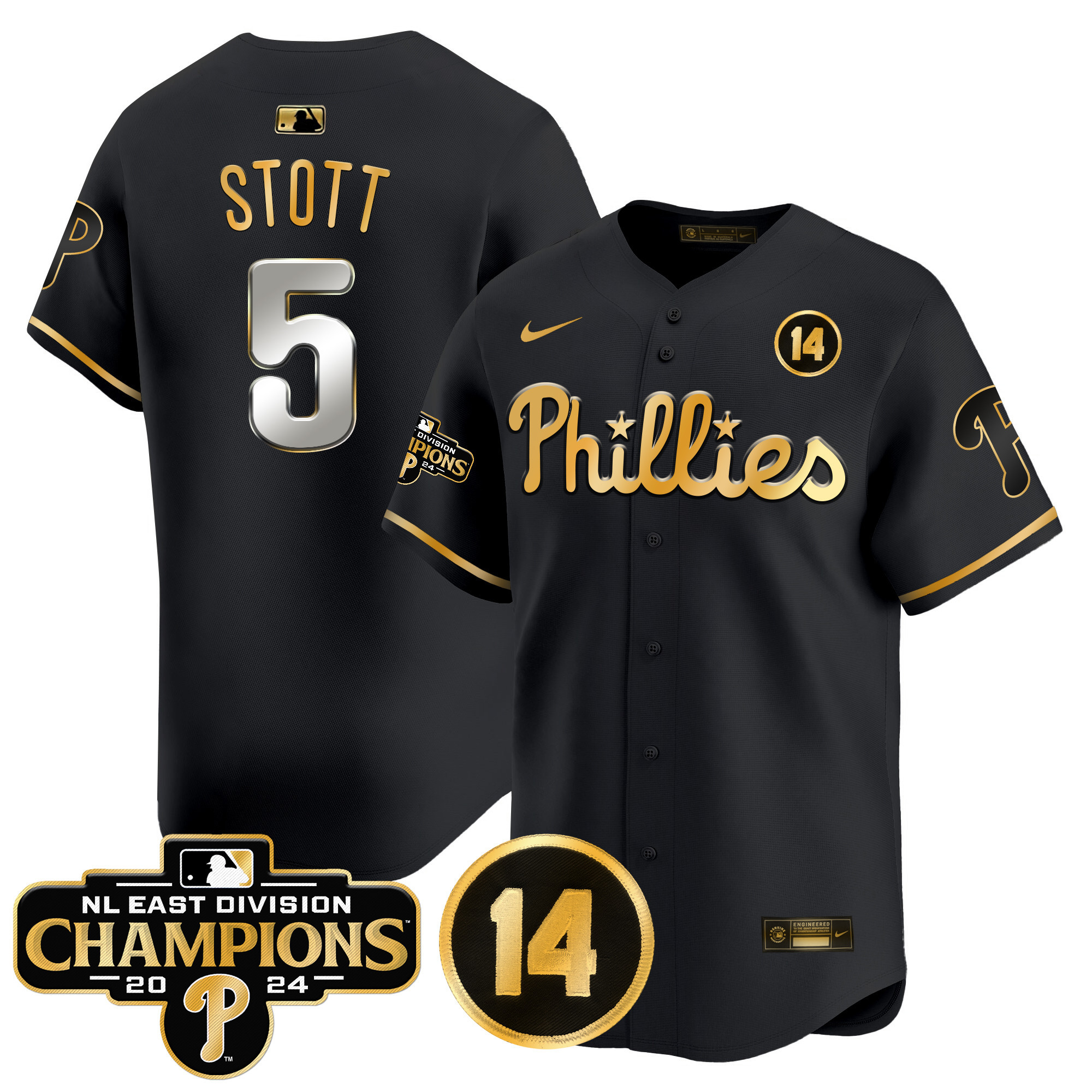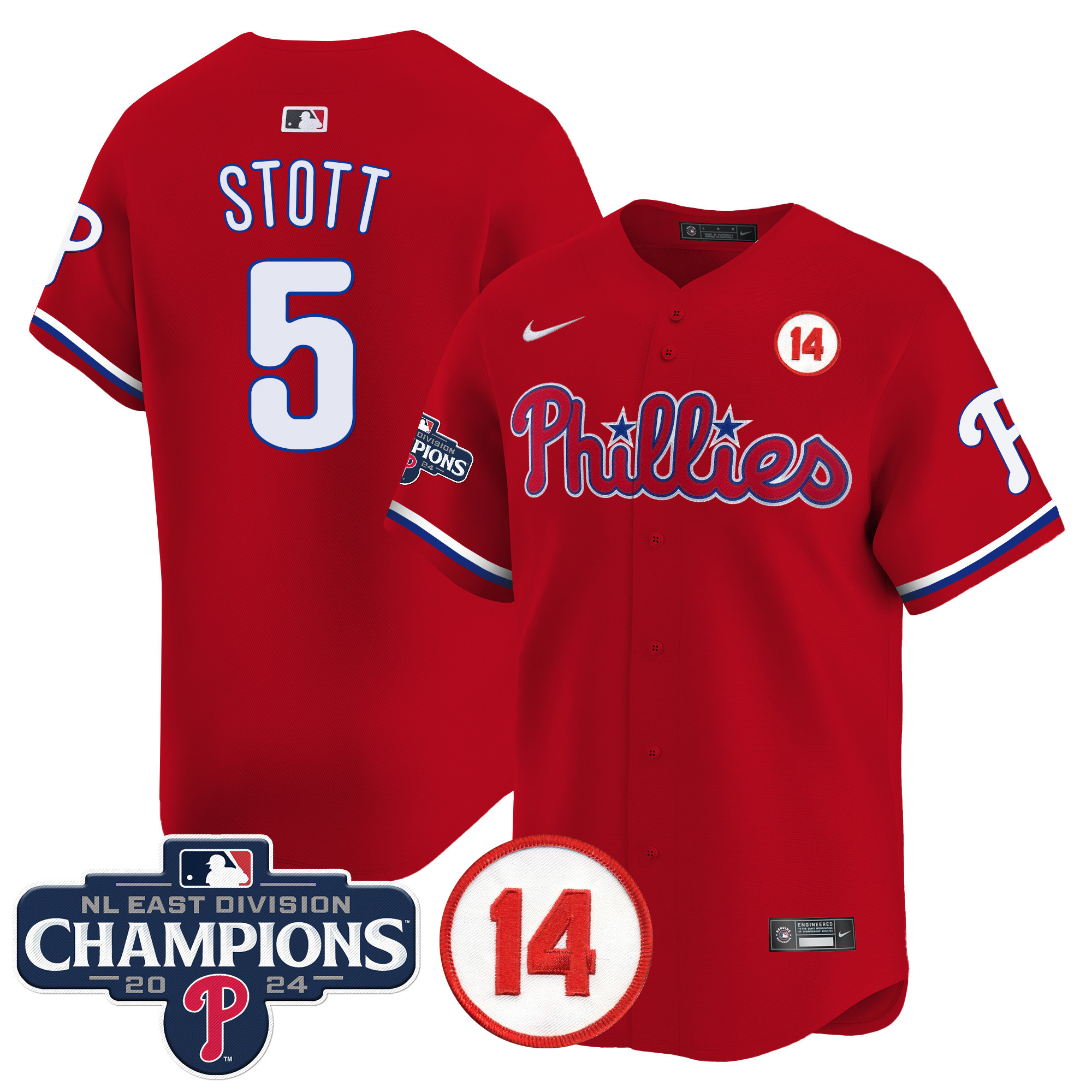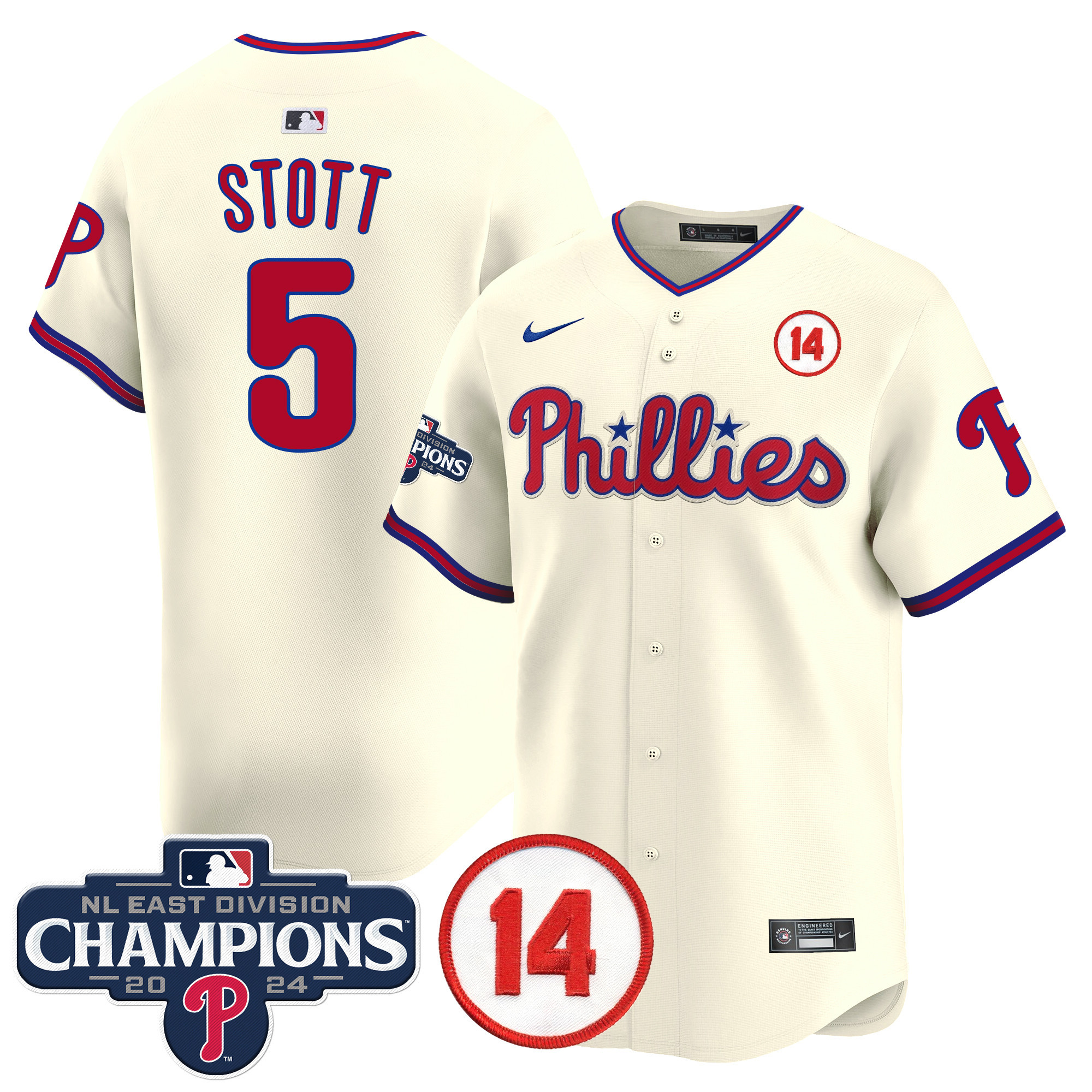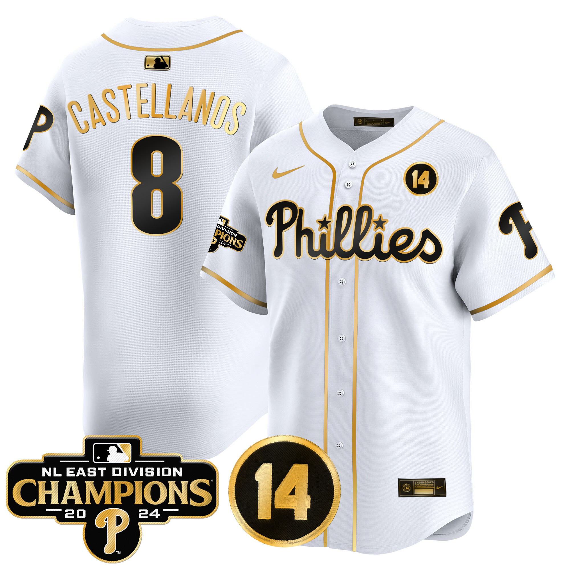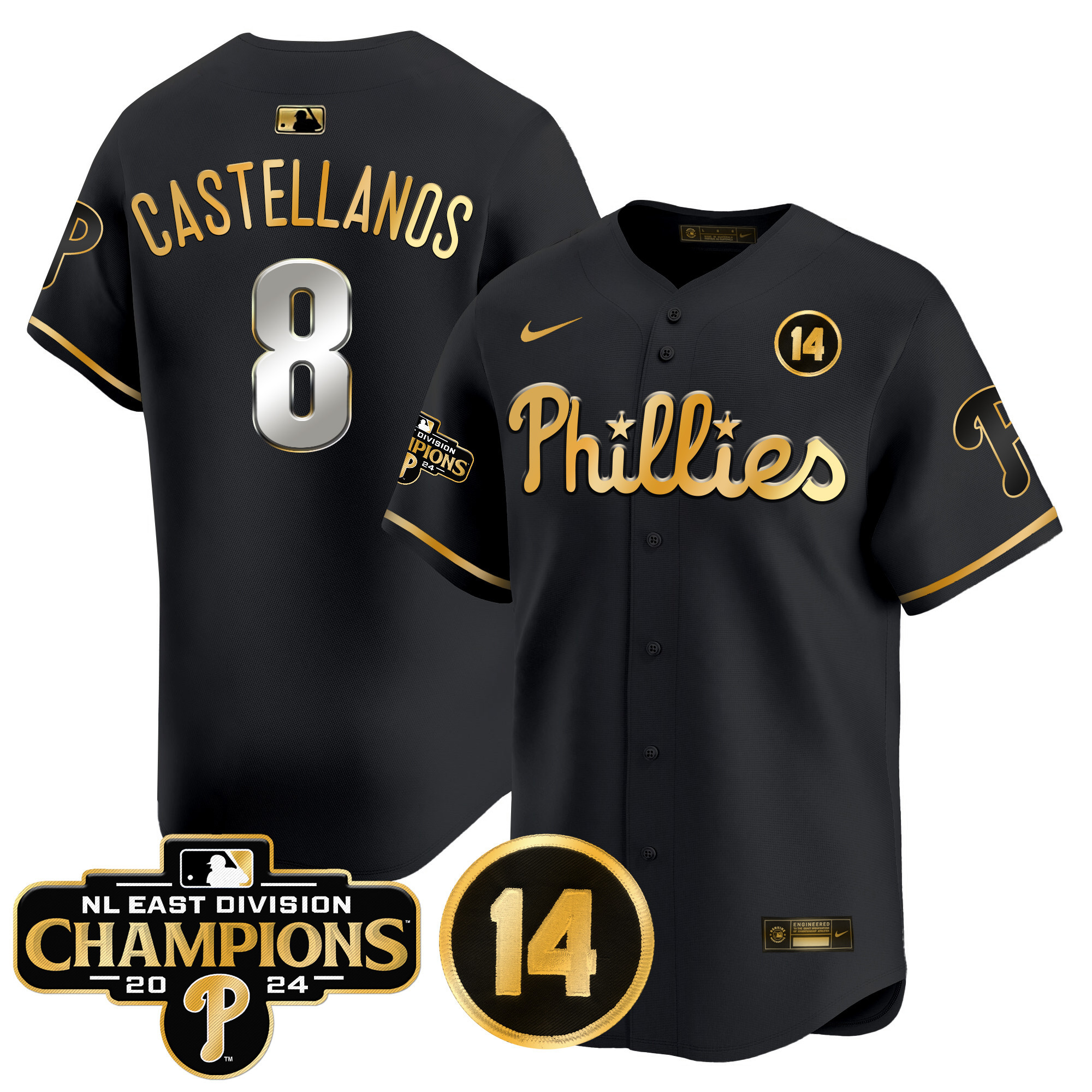 Men’s Phillies 2024 NL East Division Champions & Pete Rose Patch Vapor Premier Limited Jersey – All Stitched