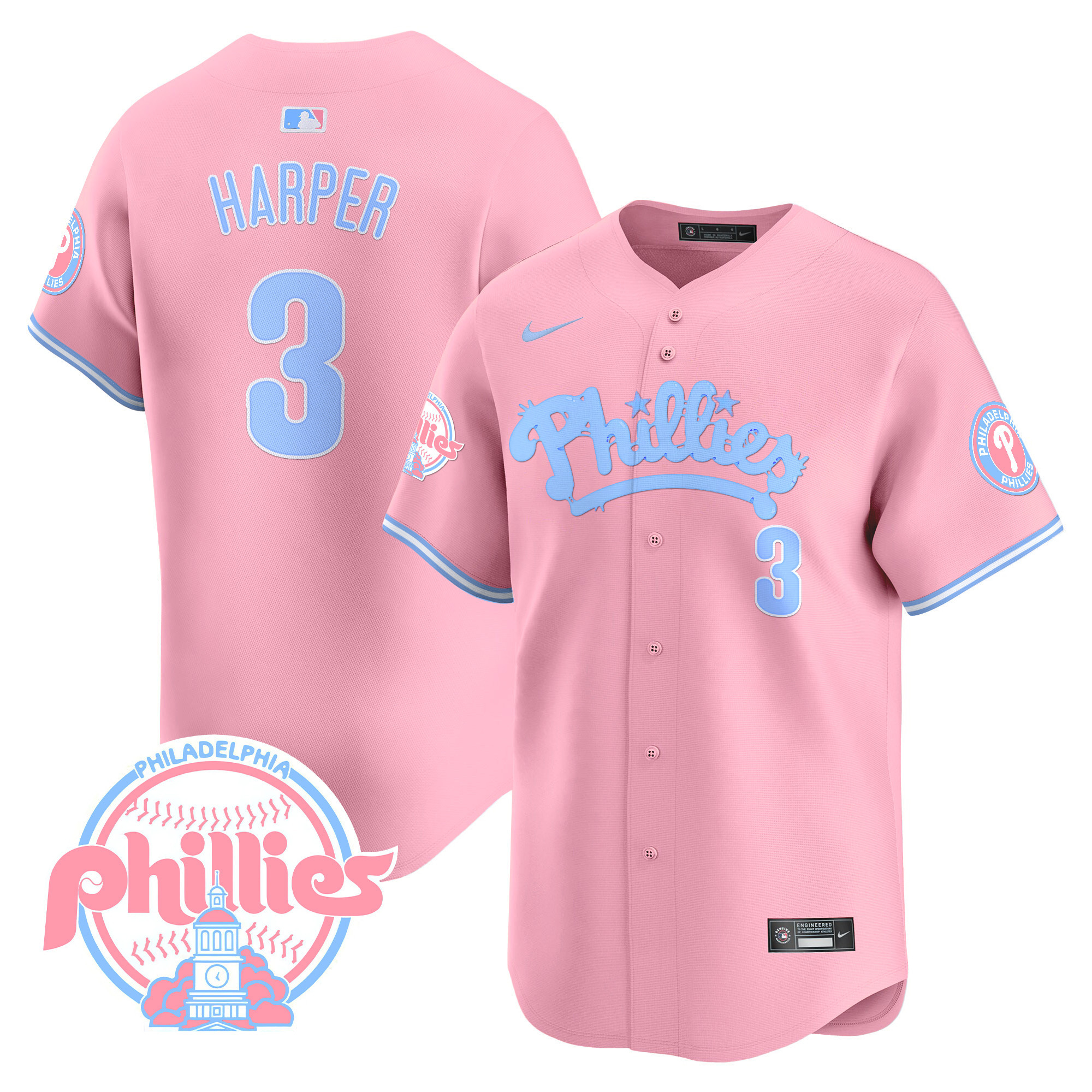 Men’s Phillies Bubblegum Pink Vapor Premier Limited Jersey – All Stitched