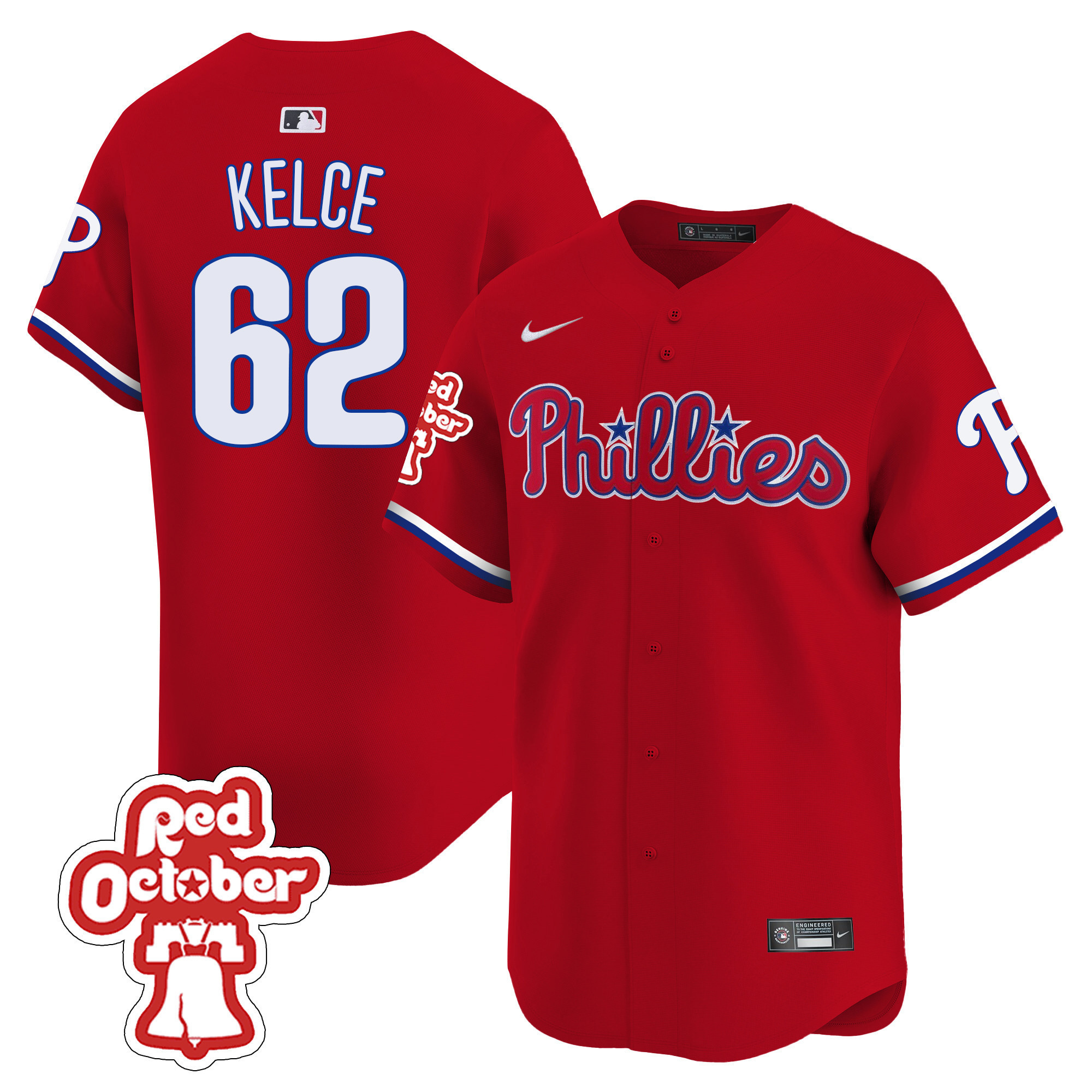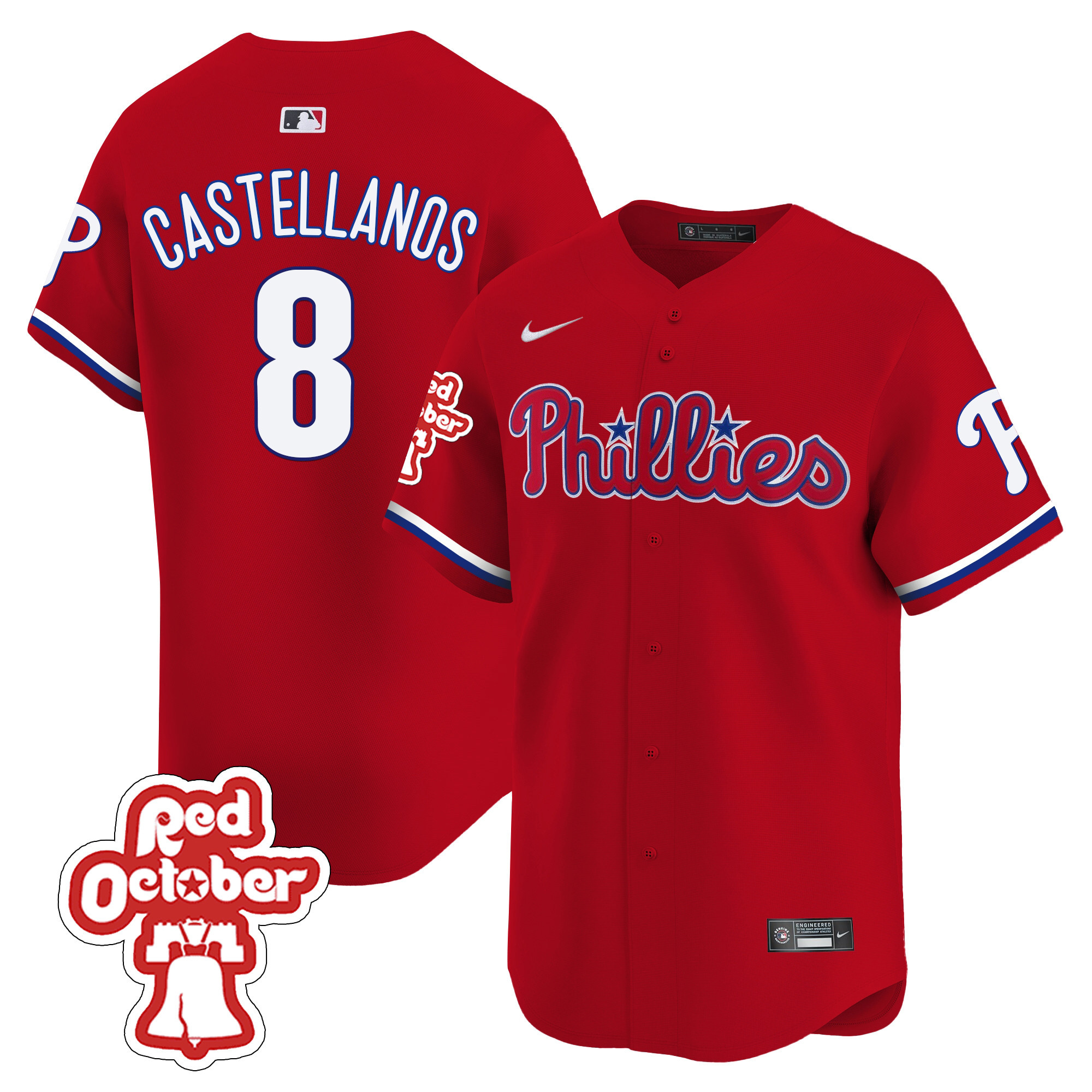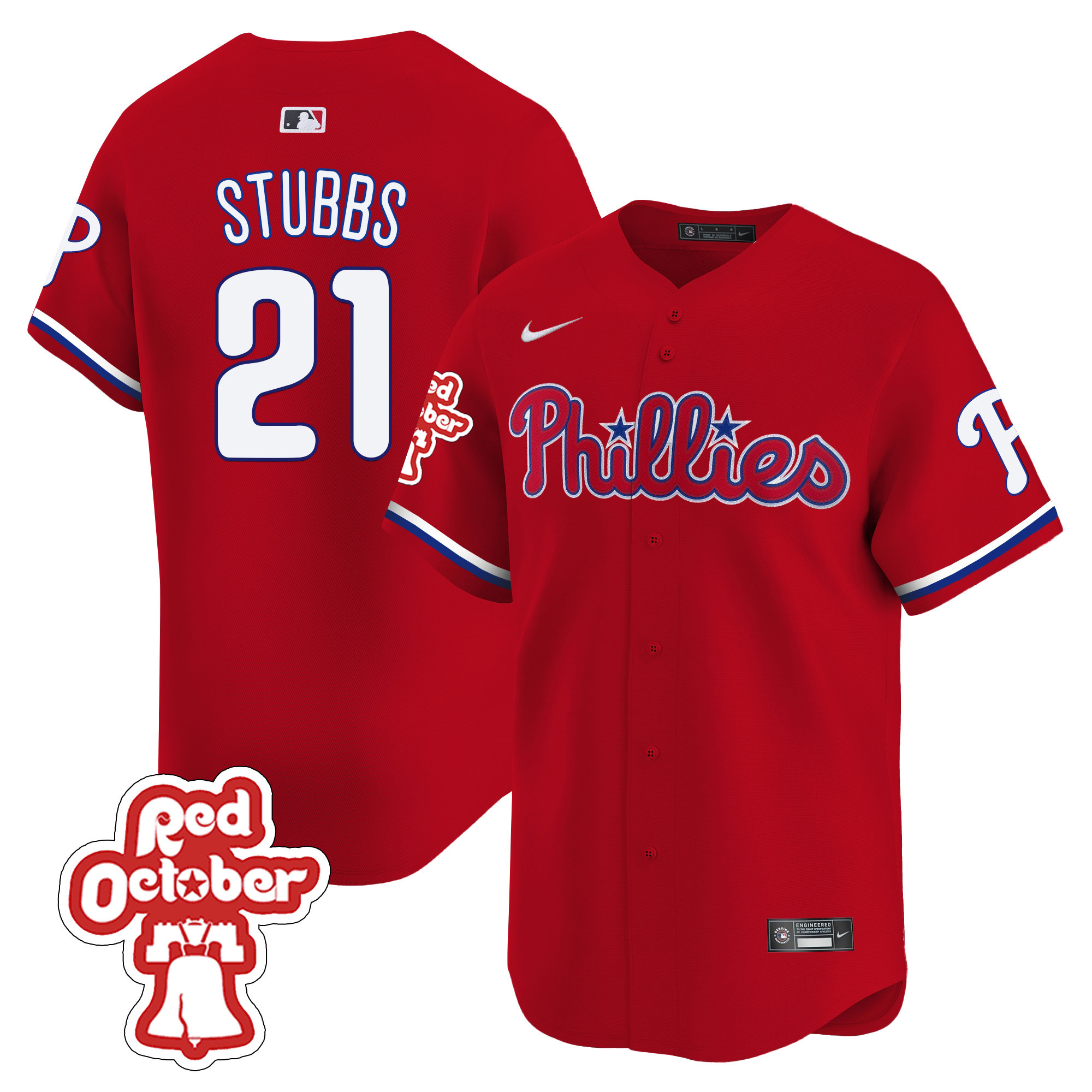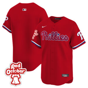 Men’s Phillies Red Octorber Patch Vapor Premier Limited Jersey – All Stitched
