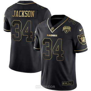 Men’s Raider Nation Patch White Gold and Black Gold Jersey – All Stitched