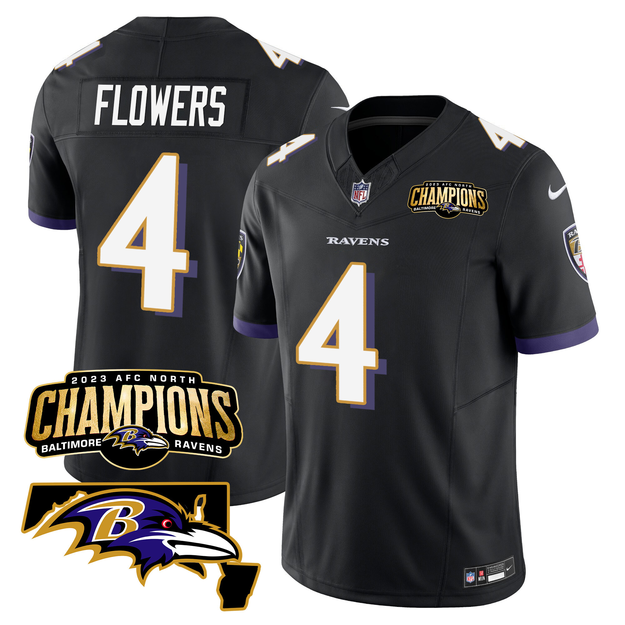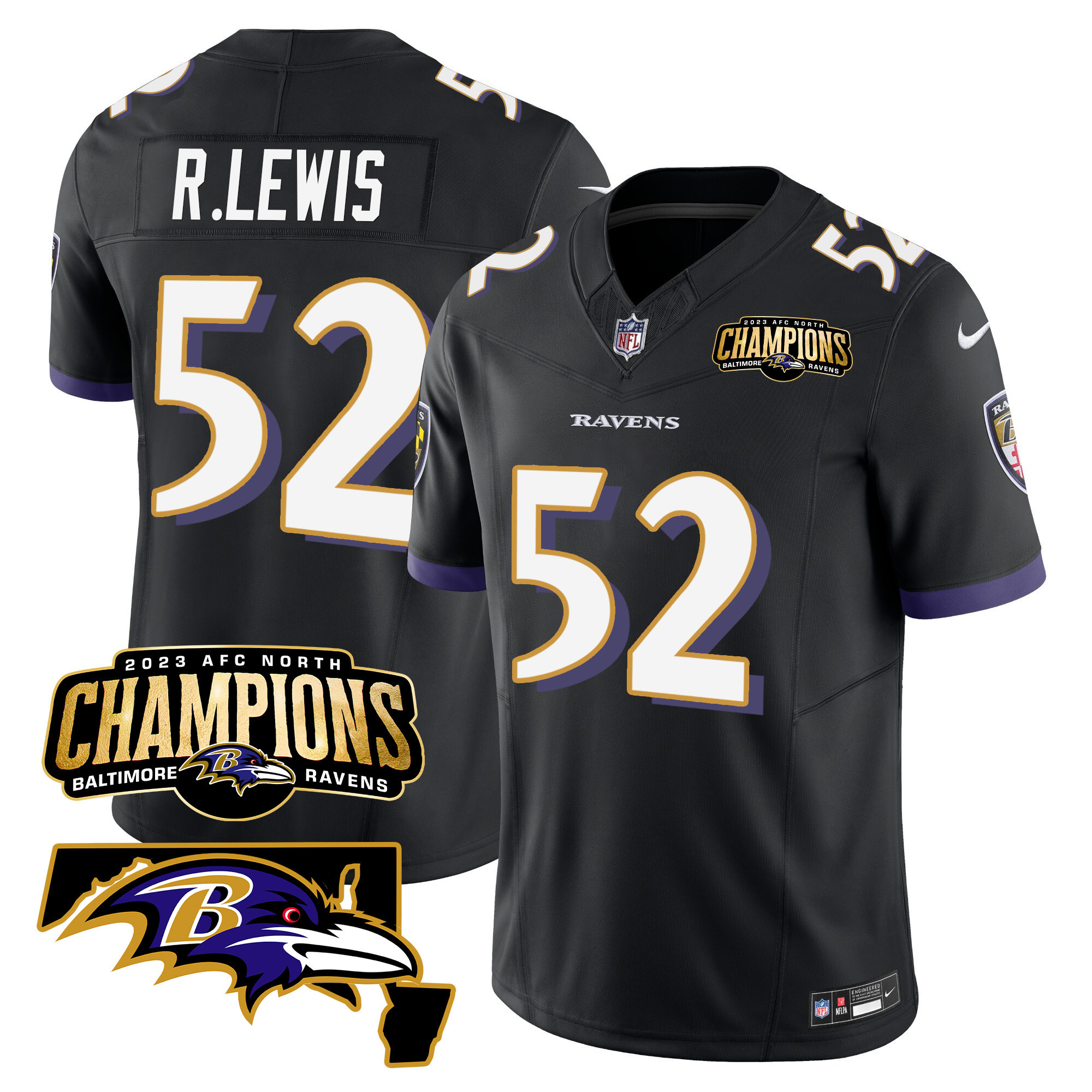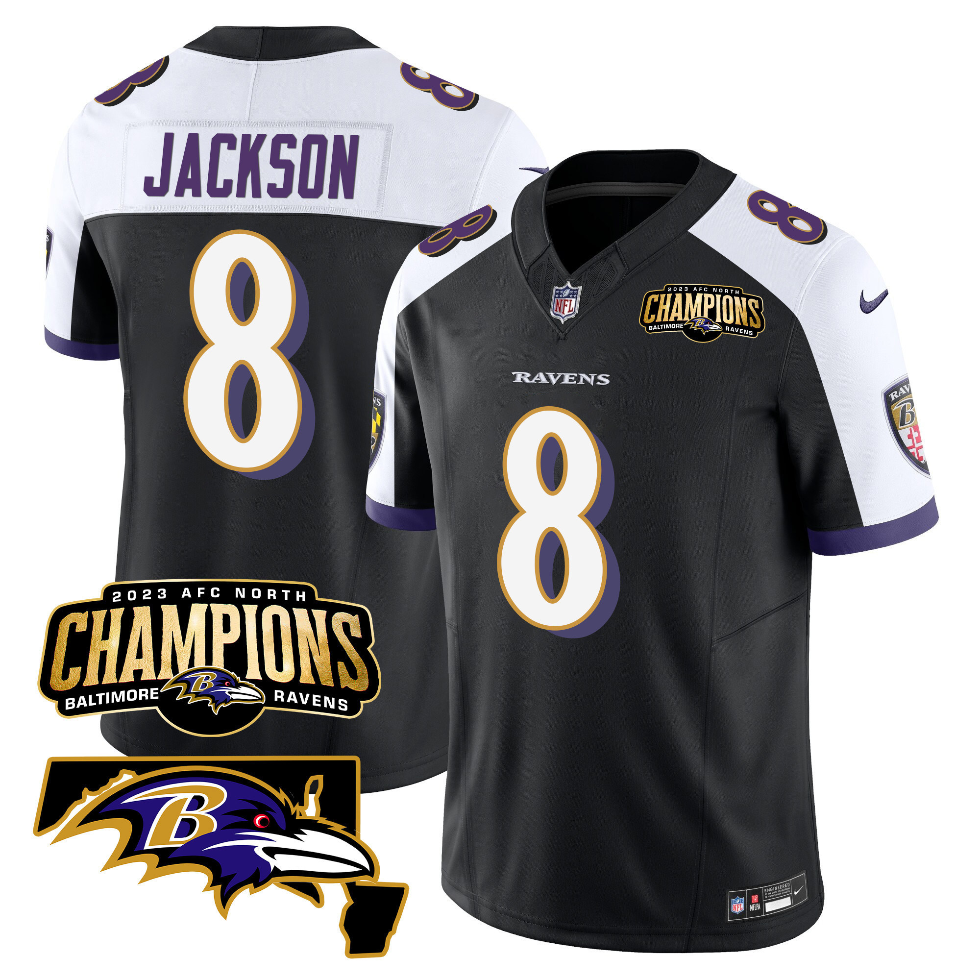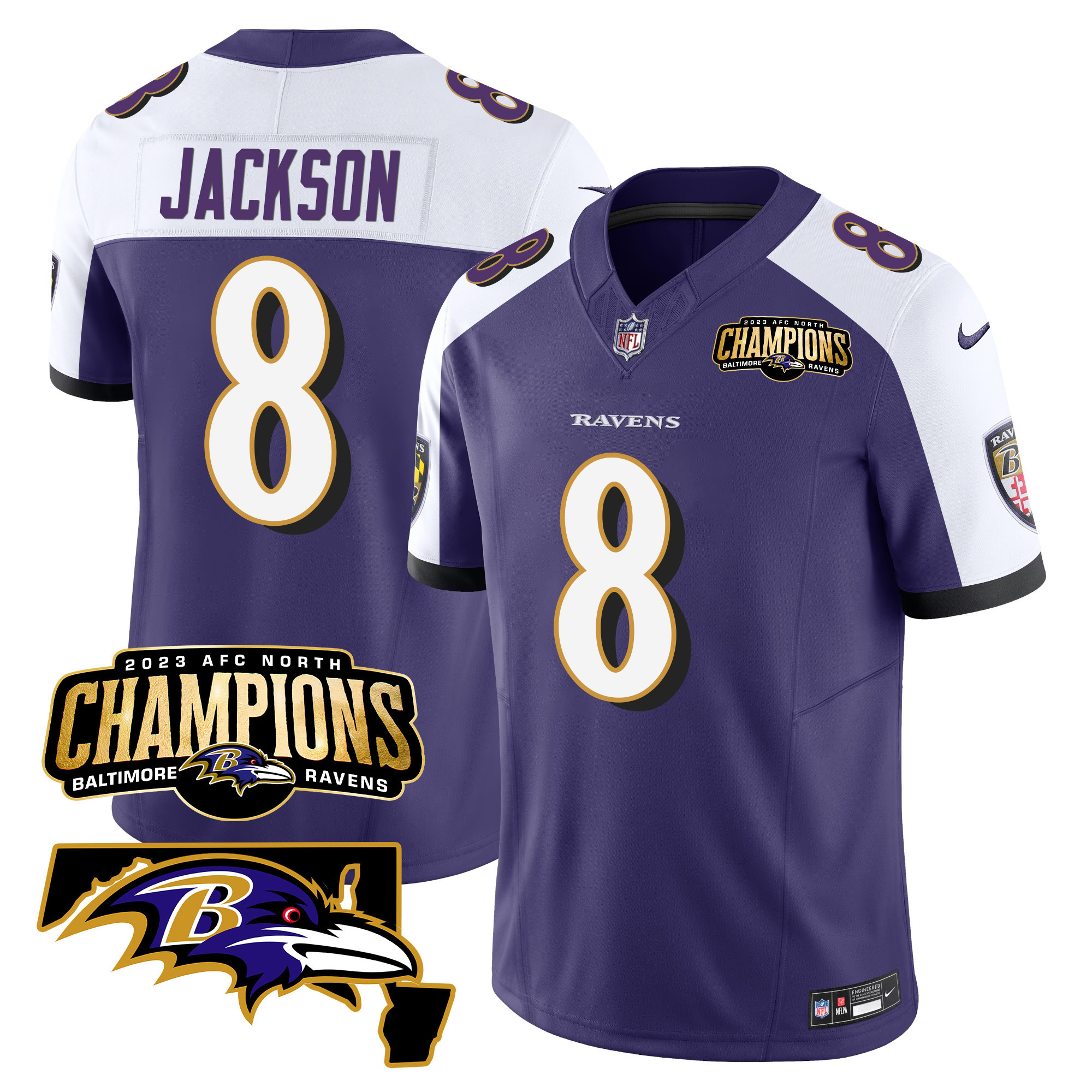 Men’s Ravens 2023 AFC North Champions & Maryland Patch Vapor Jersey – All Stitched