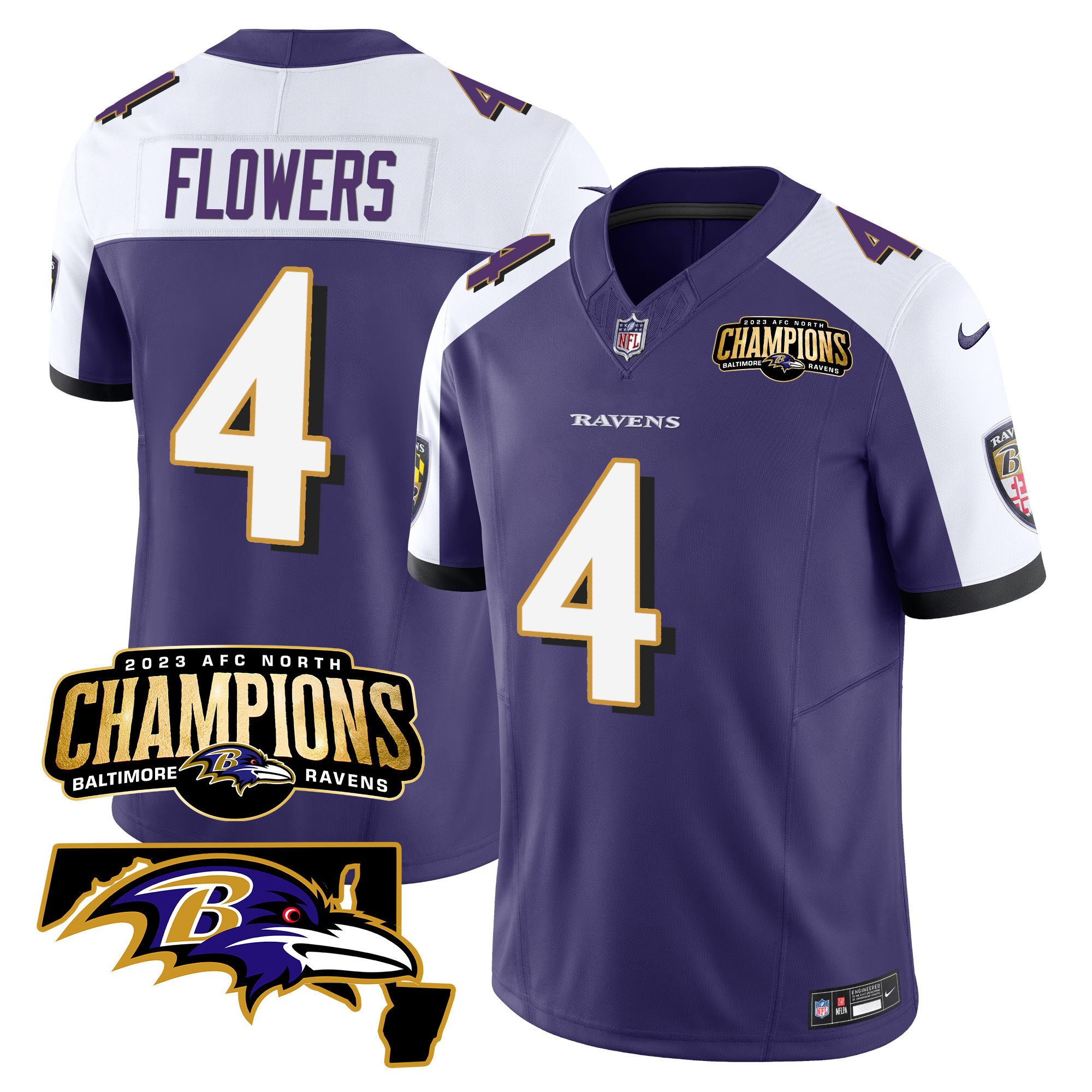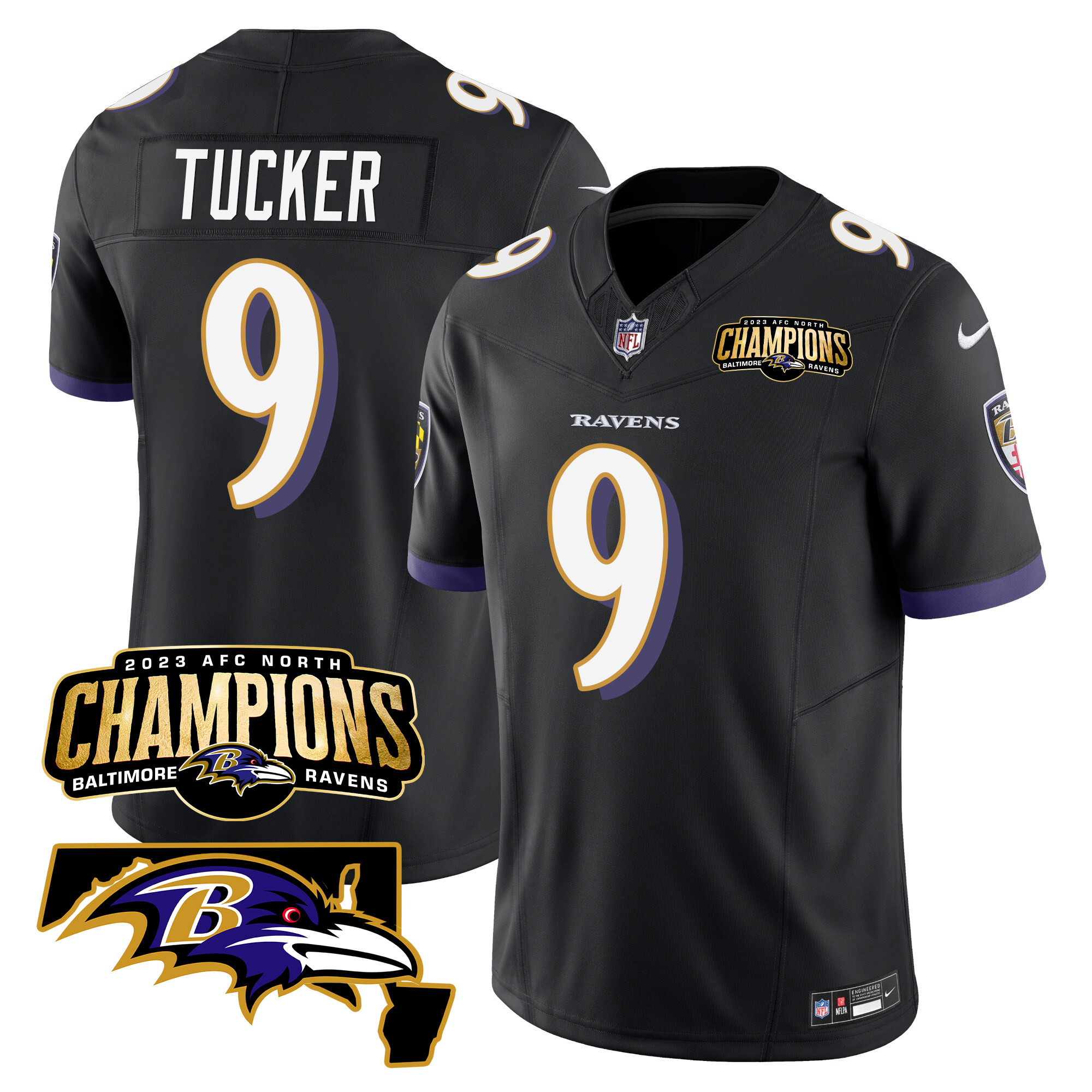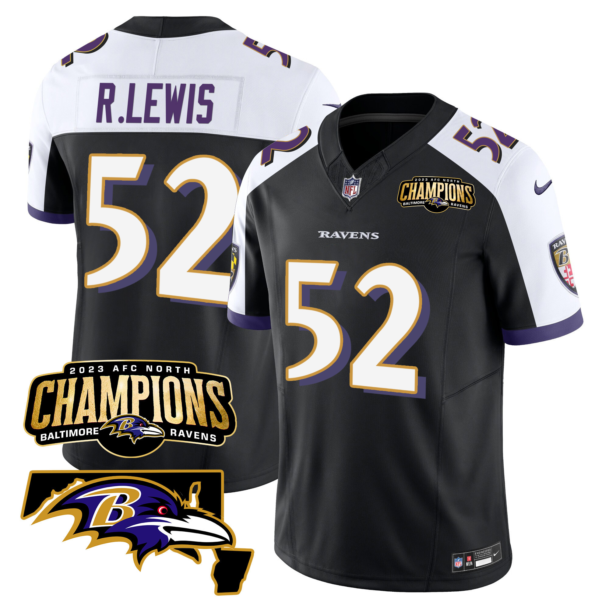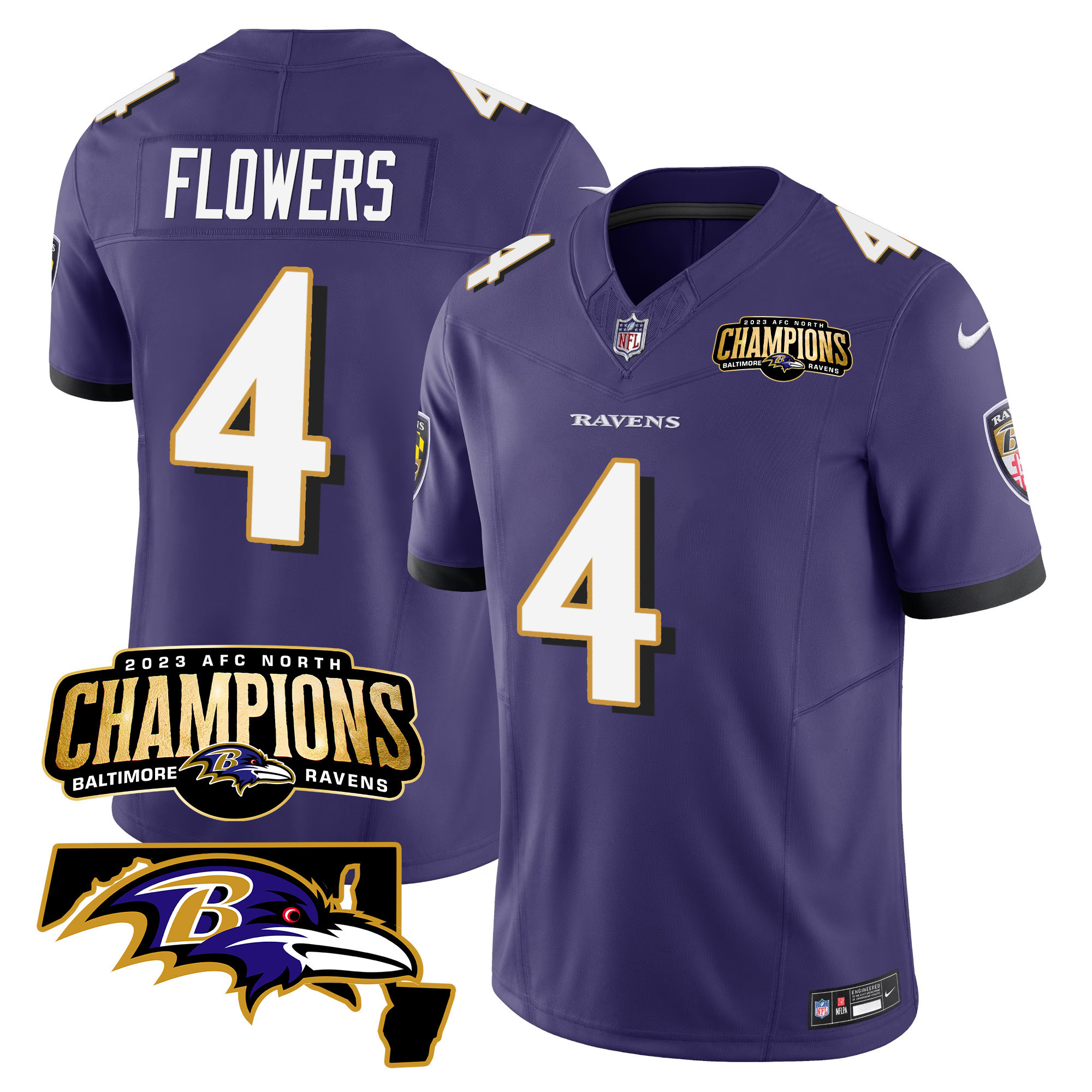 Men’s Ravens 2023 AFC North Champions & Maryland Patch Vapor Jersey – All Stitched