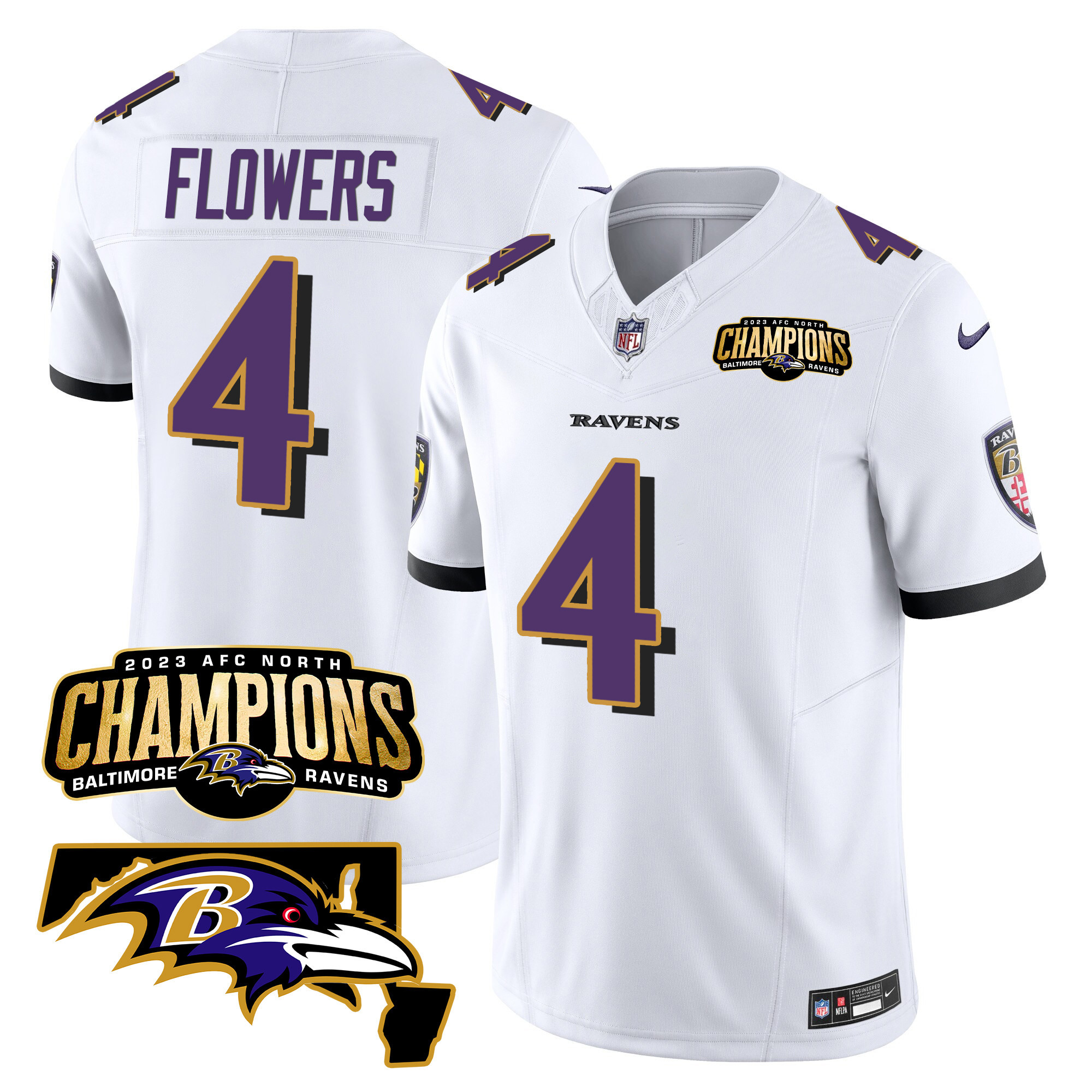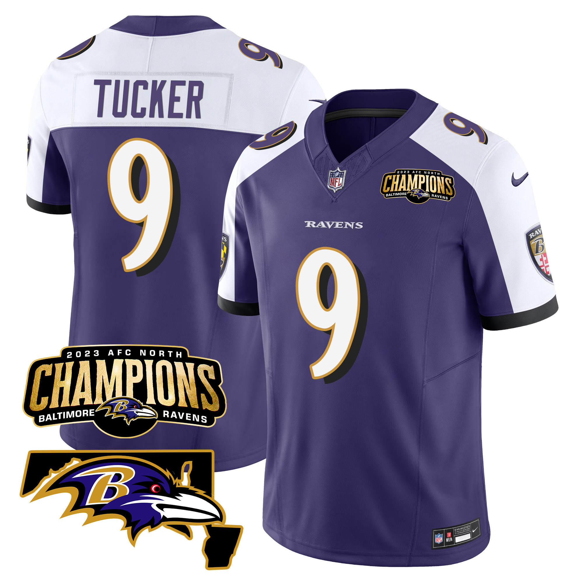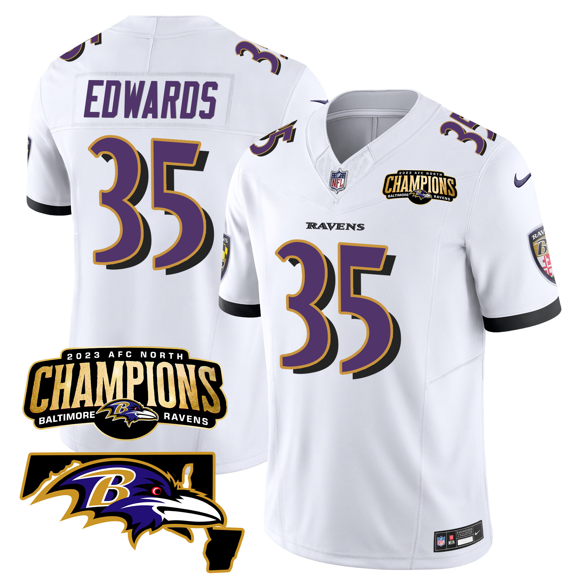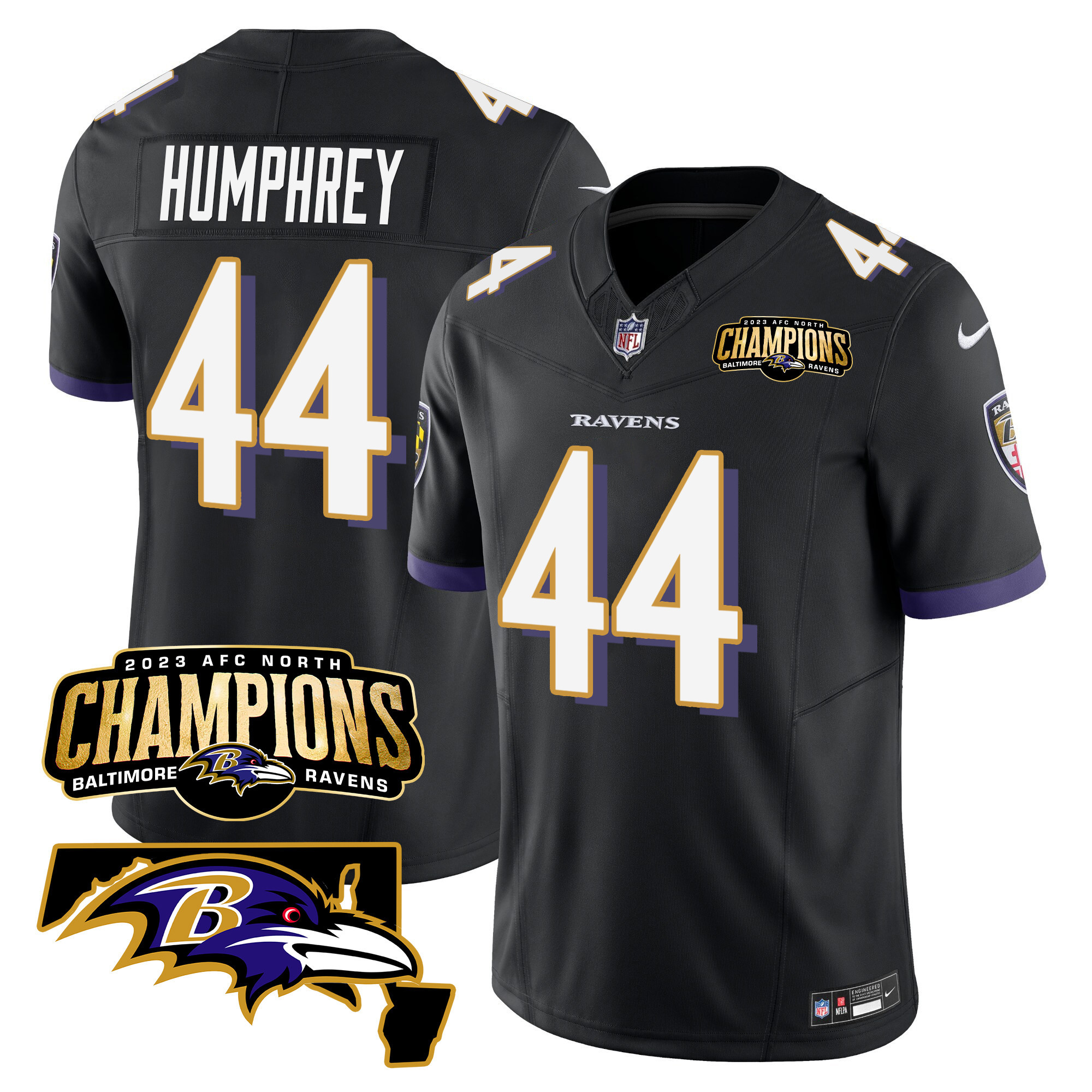 Men’s Ravens 2023 AFC North Champions & Maryland Patch Vapor Jersey – All Stitched