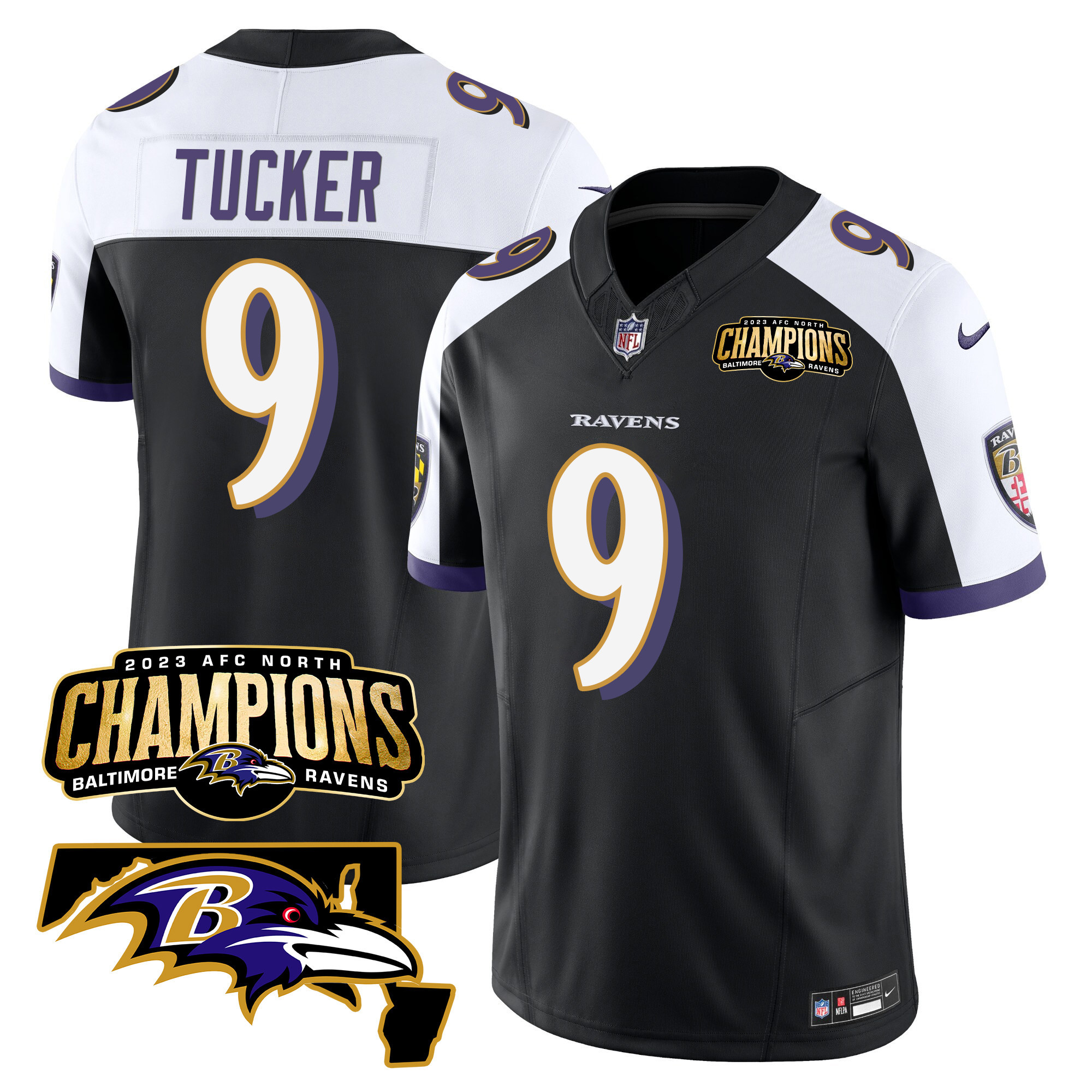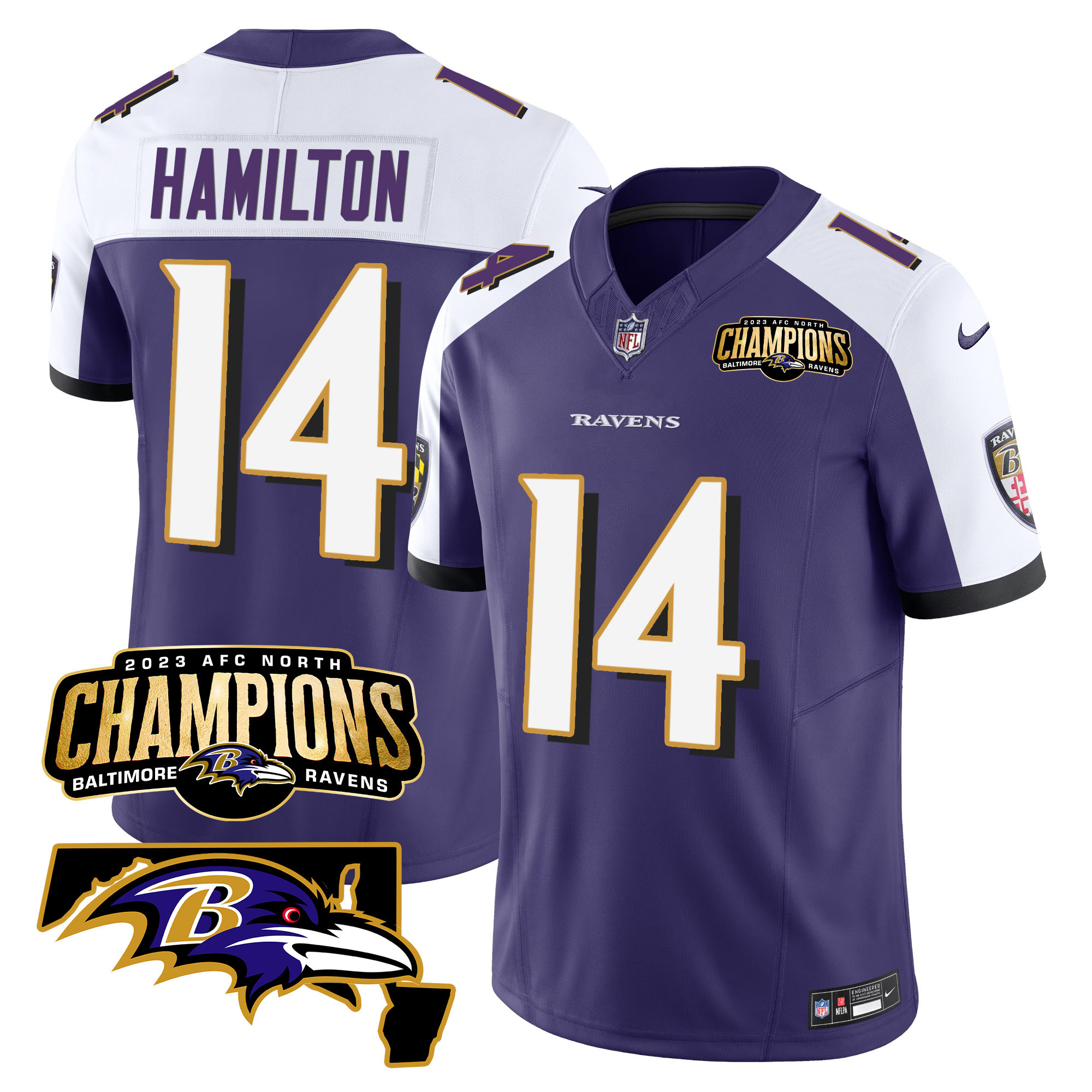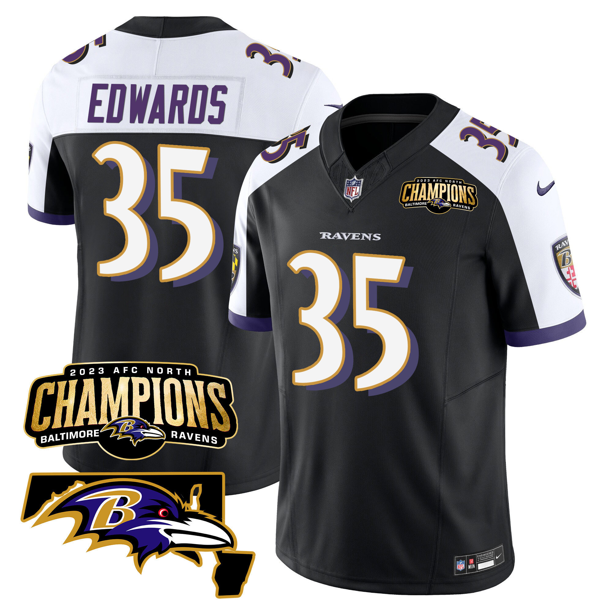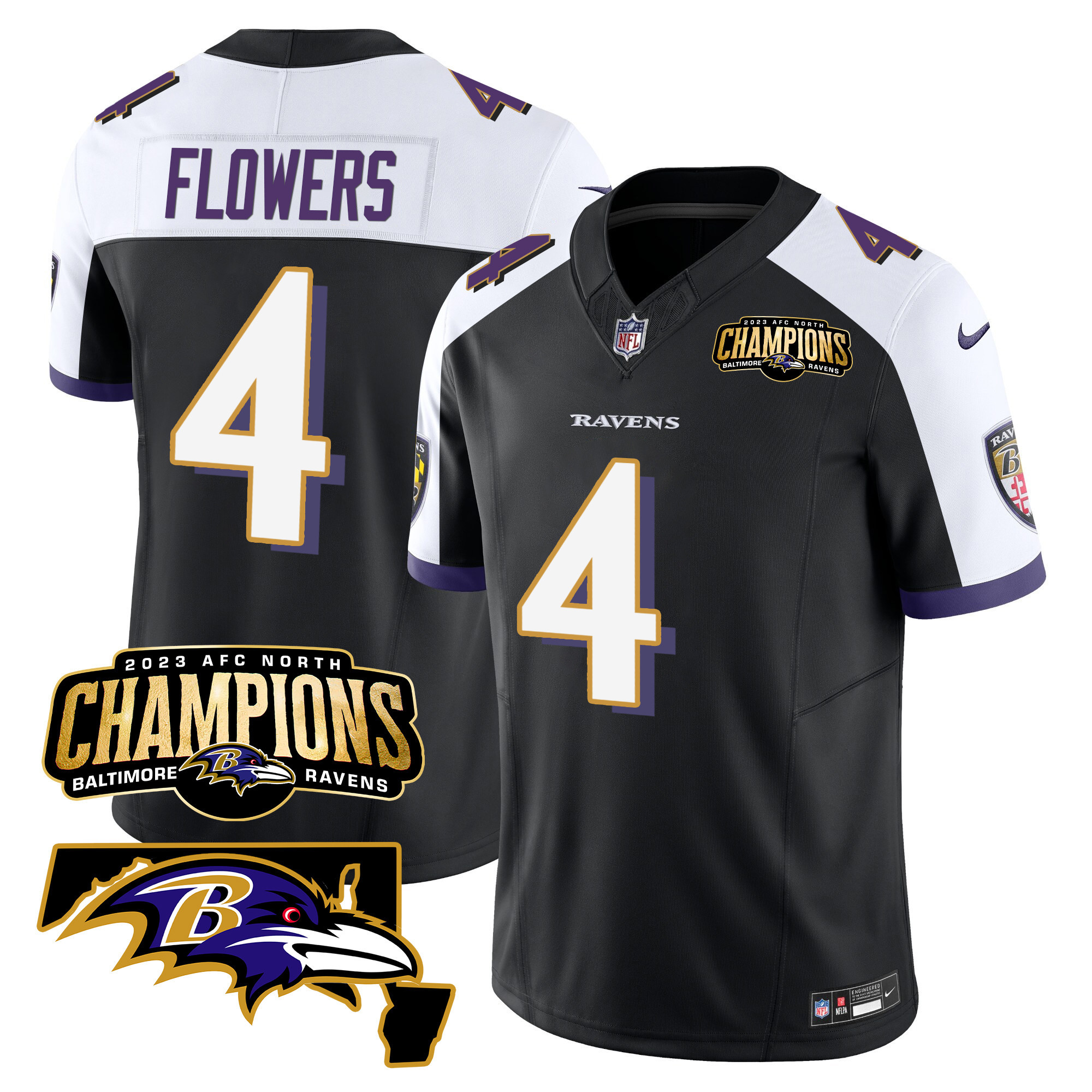 Men’s Ravens 2023 AFC North Champions & Maryland Patch Vapor Jersey – All Stitched