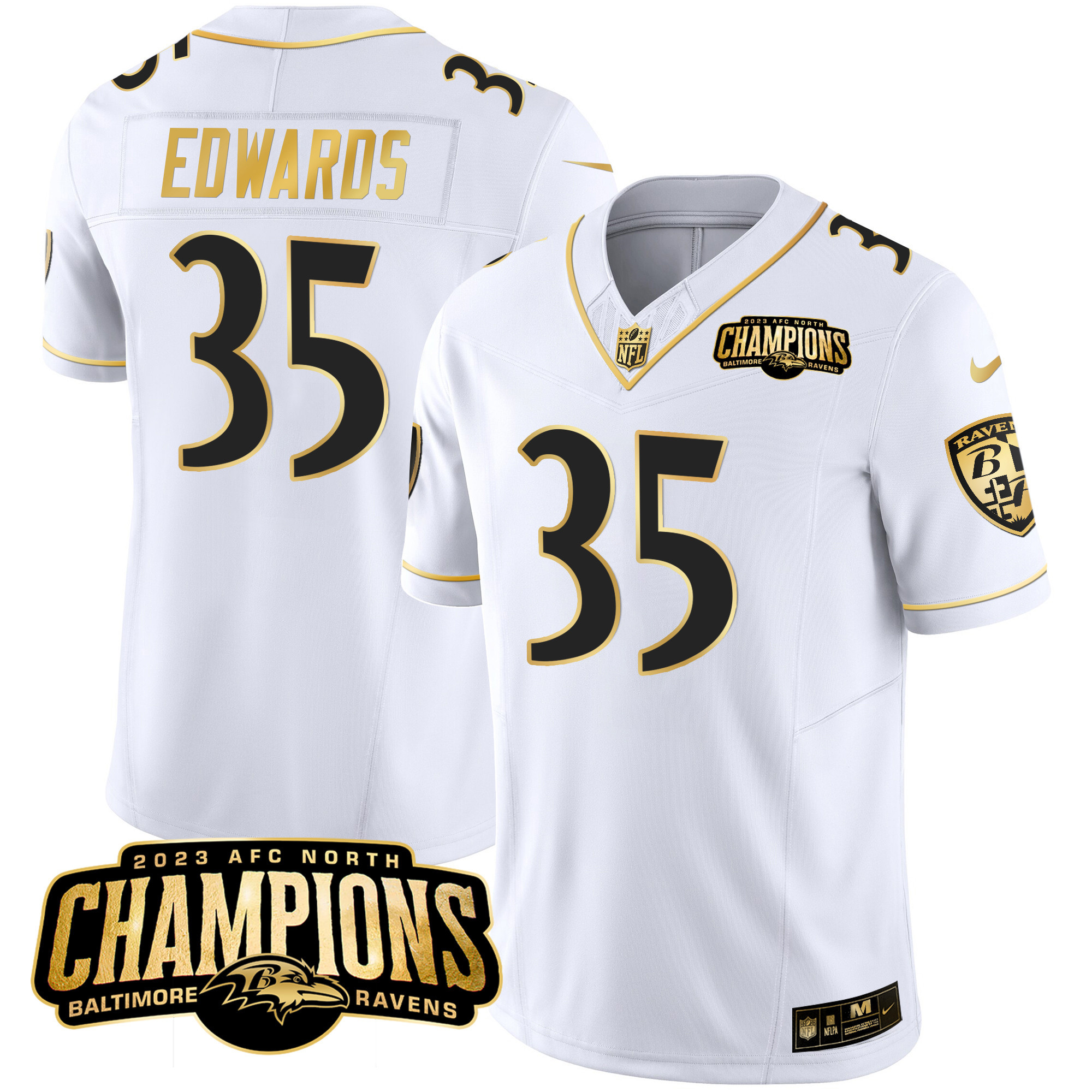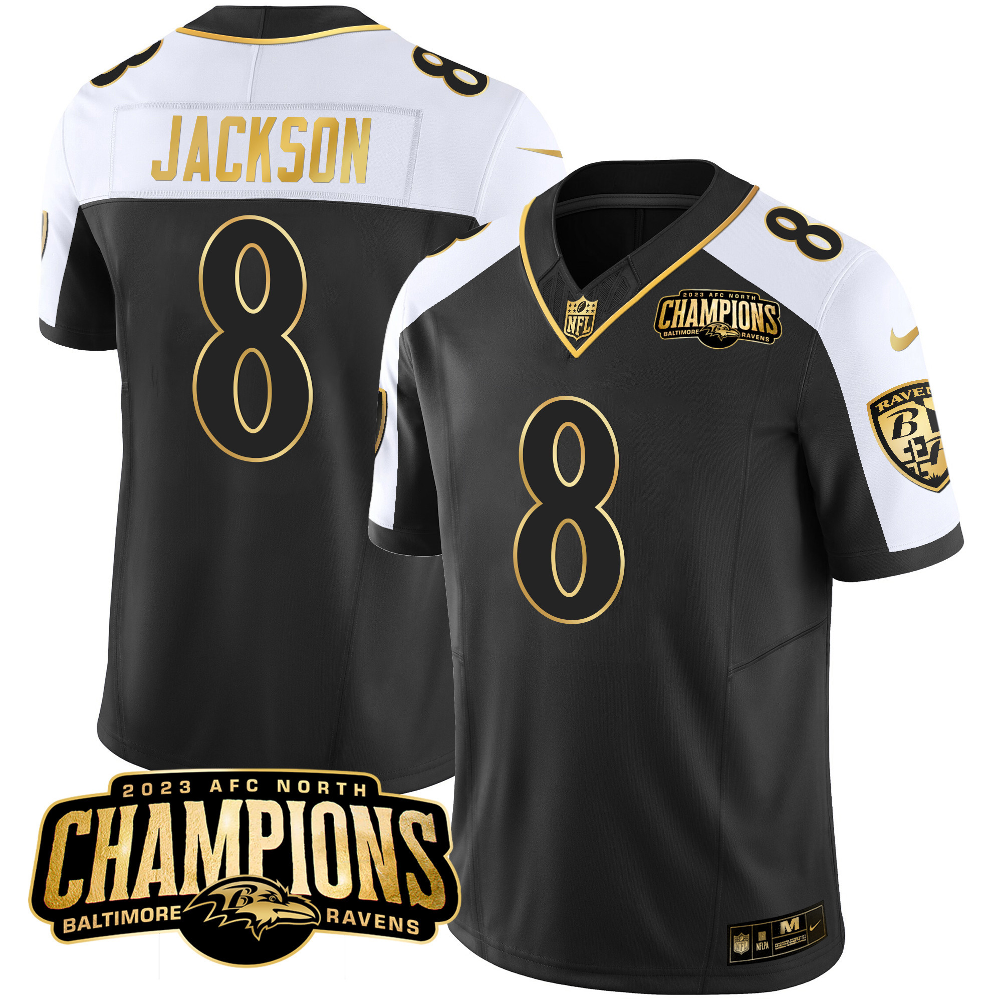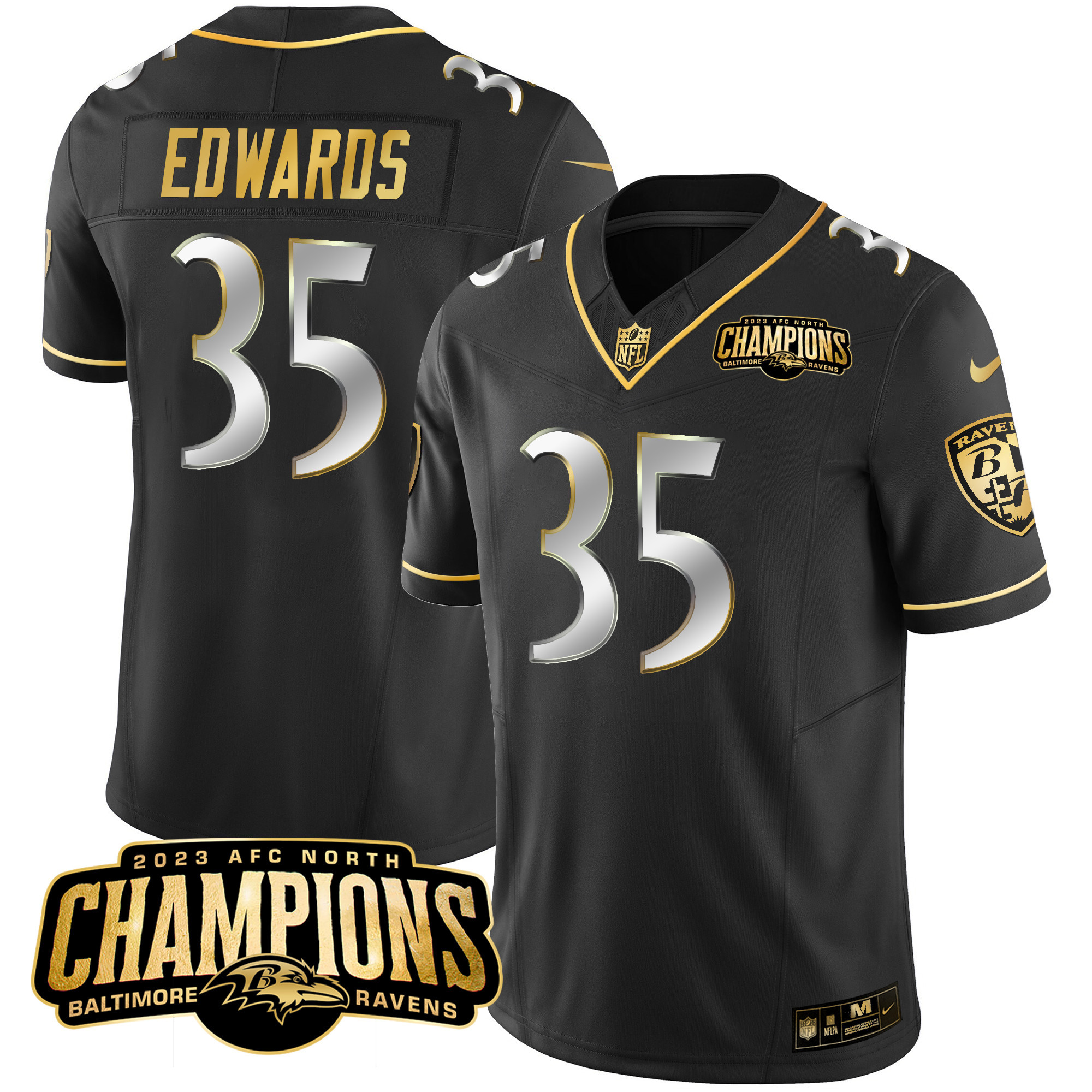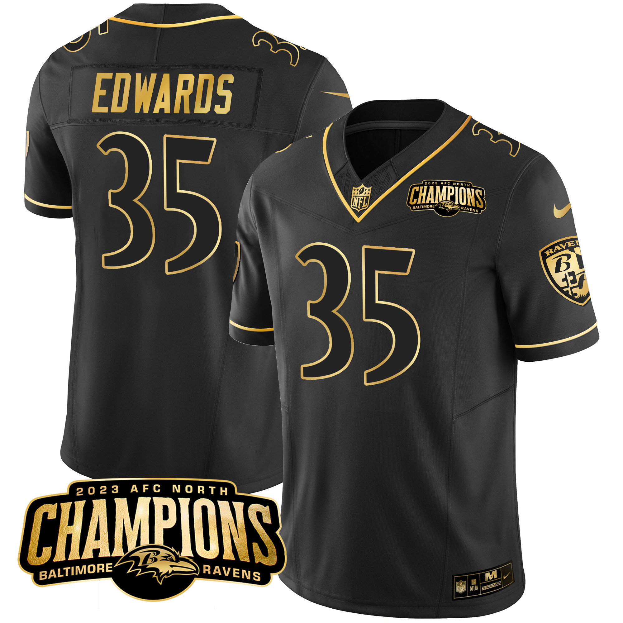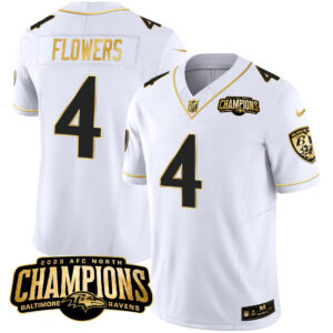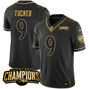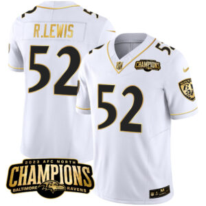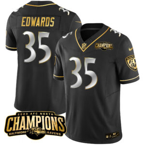 Men’s Ravens 2023 AFC North Champions Patch Gold Vapor Jersey – All Stitched