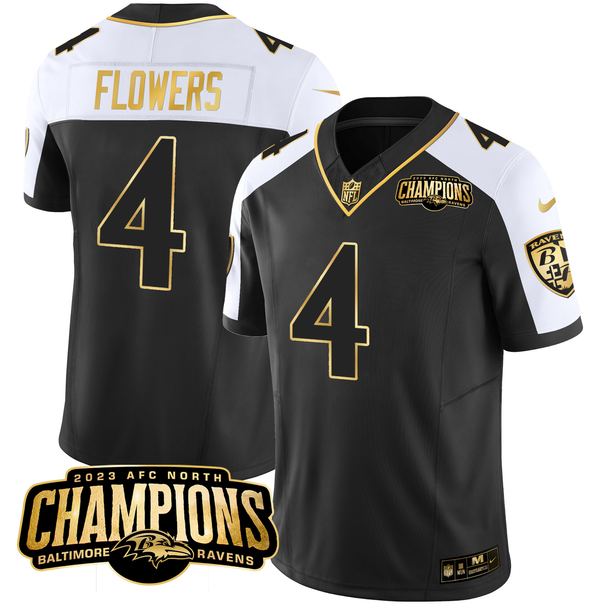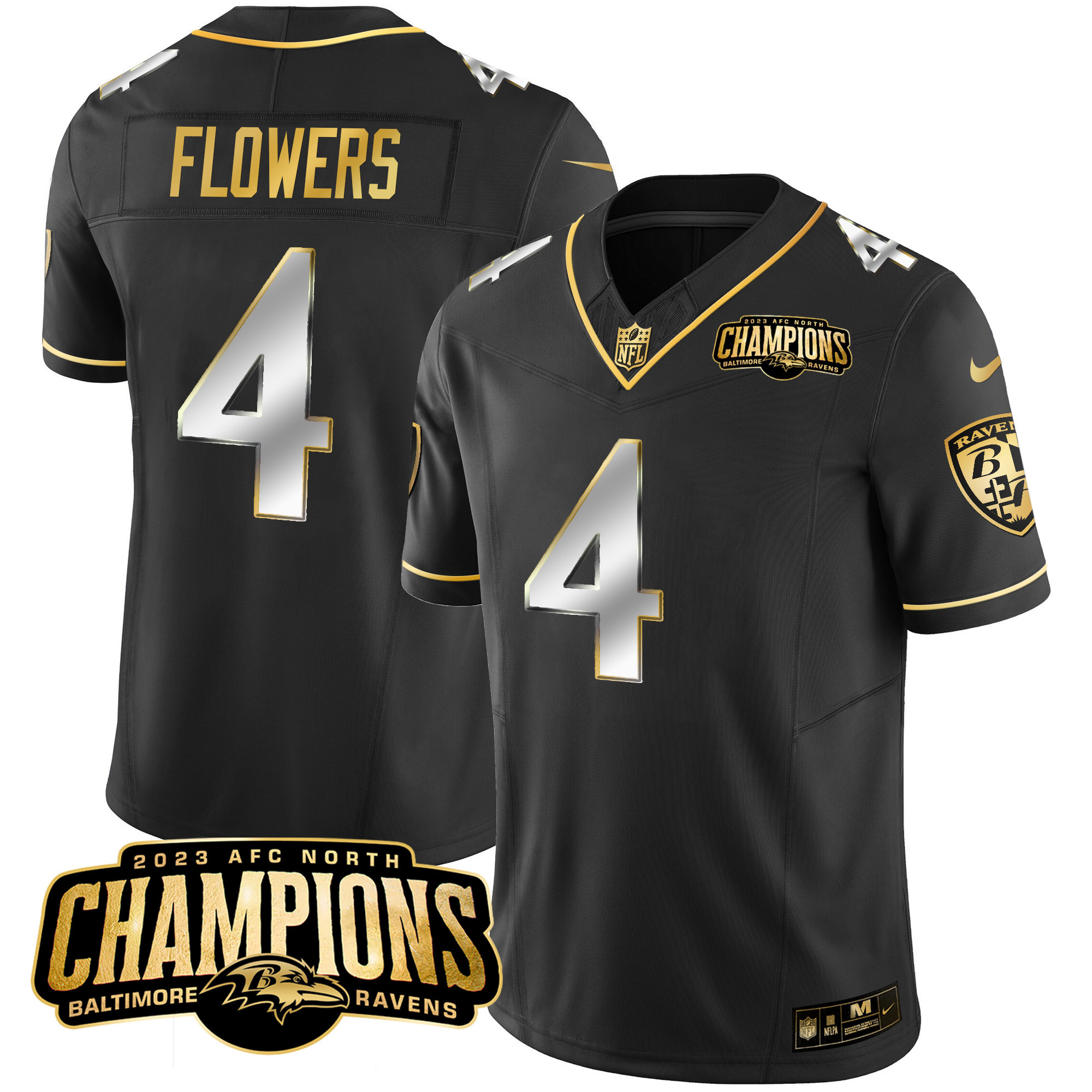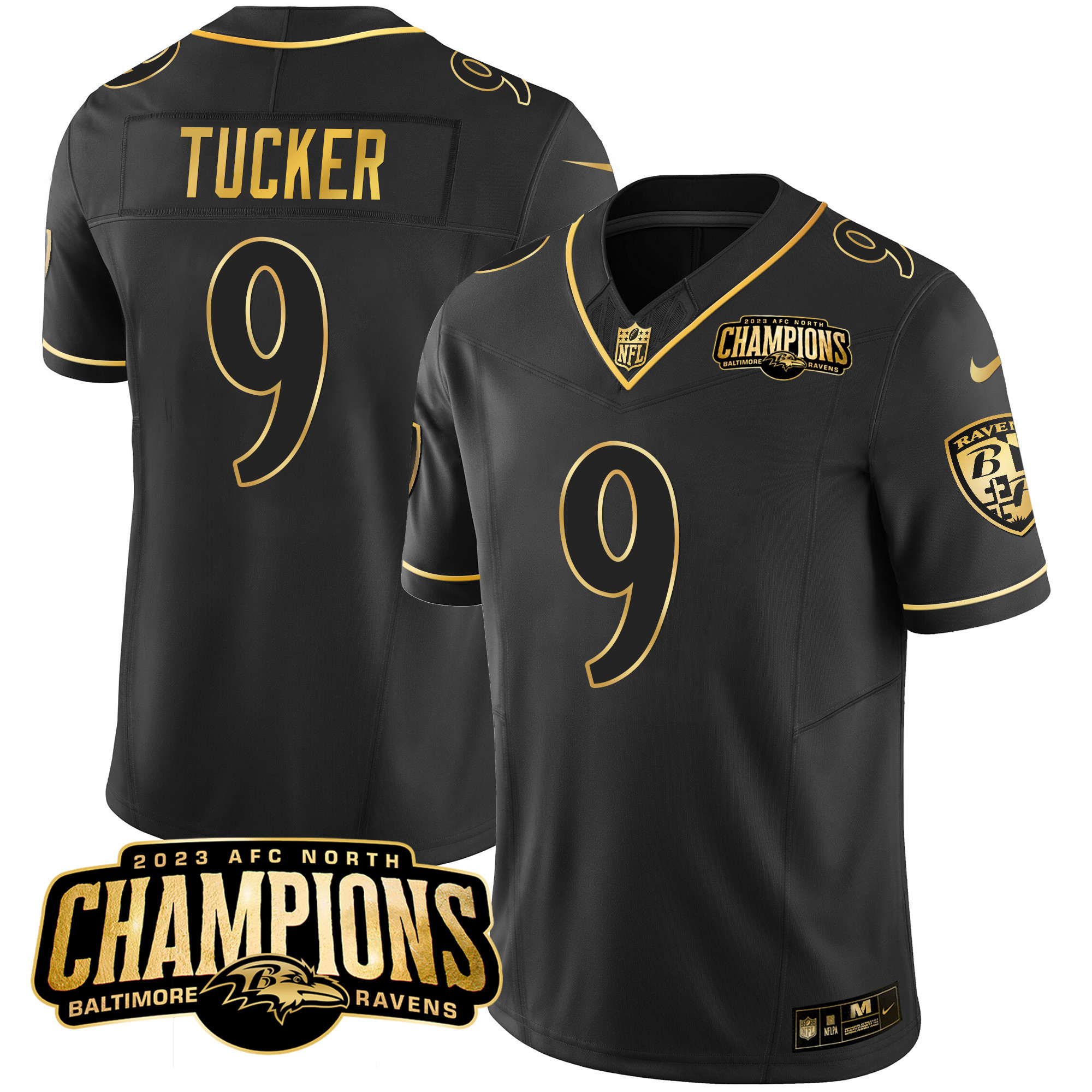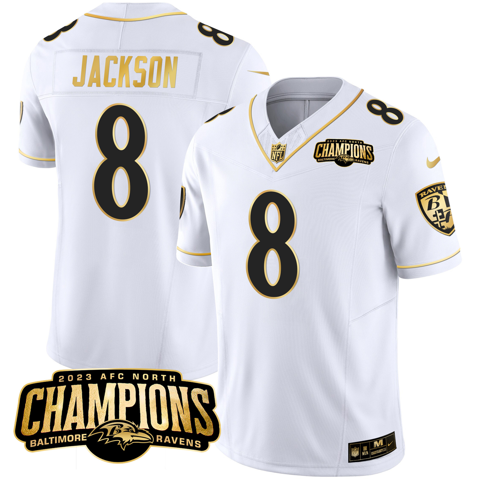 Men’s Ravens 2023 AFC North Champions Patch Gold Vapor Jersey – All Stitched