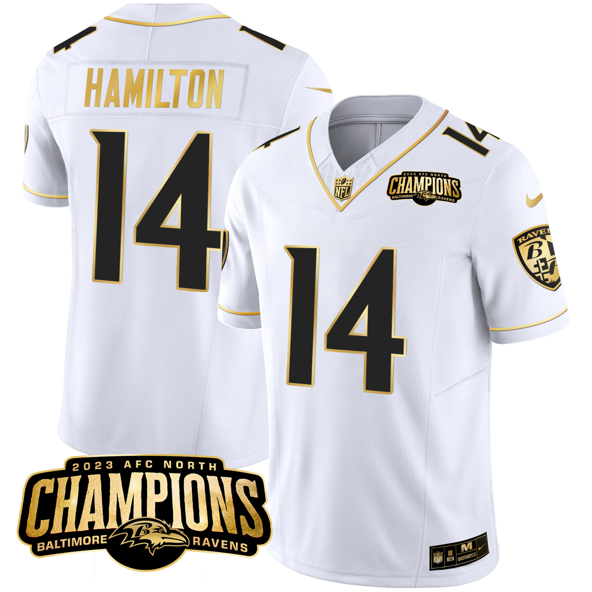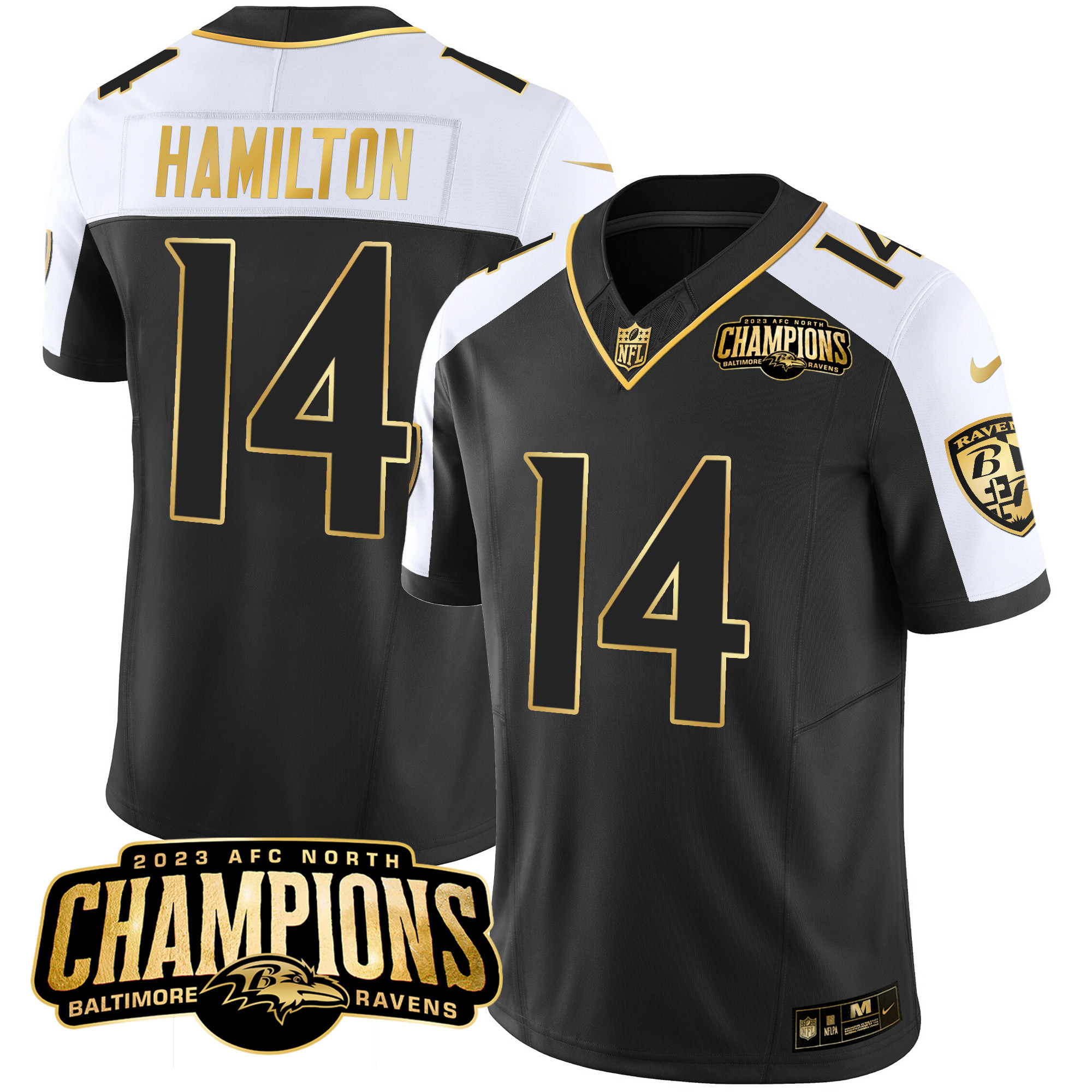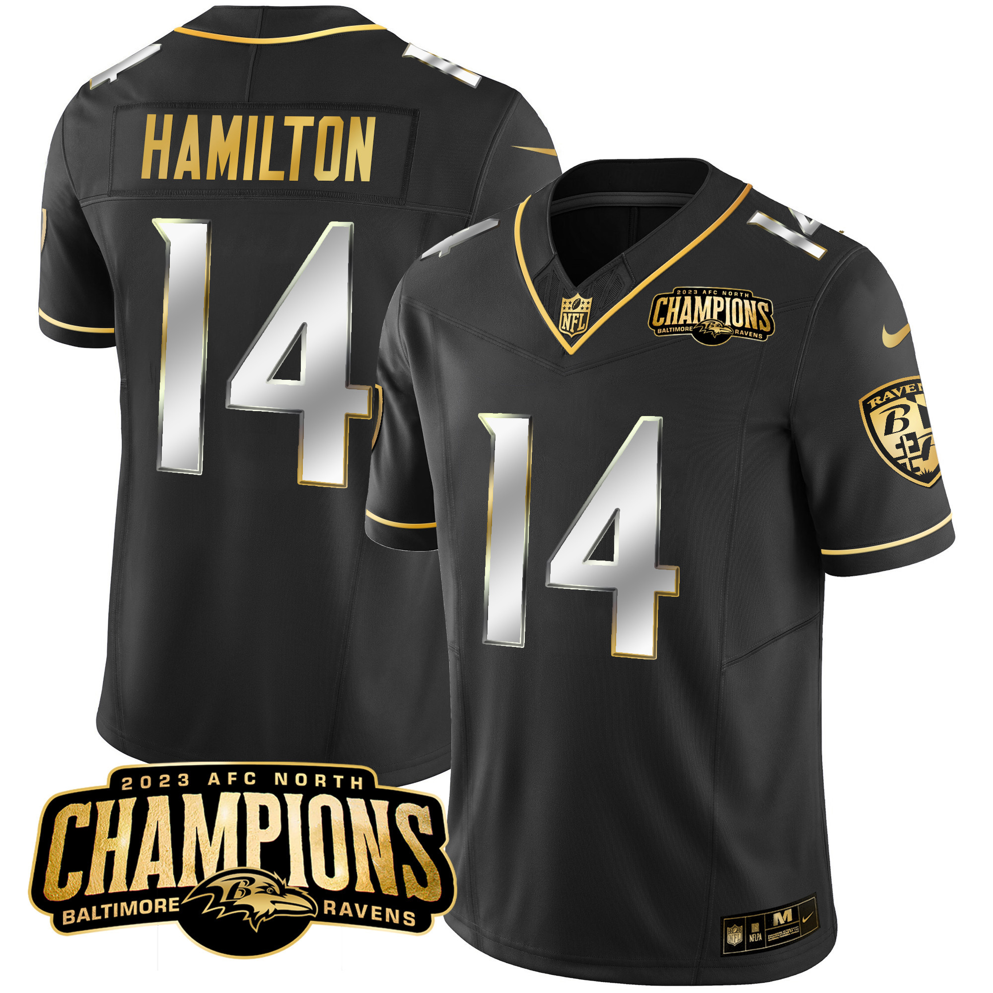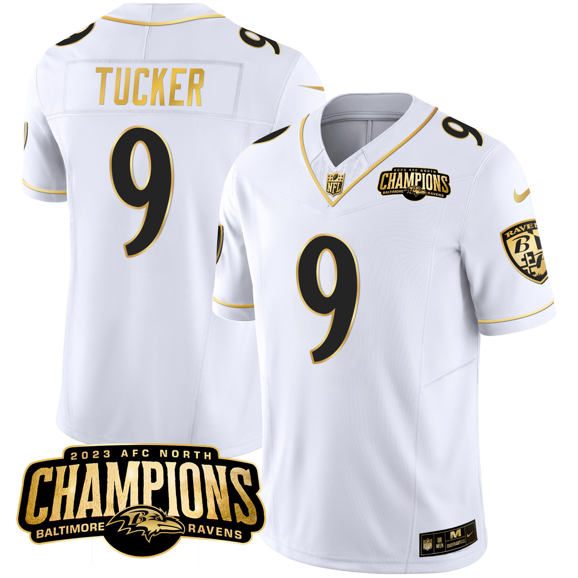 Men’s Ravens 2023 AFC North Champions Patch Gold Vapor Jersey – All Stitched