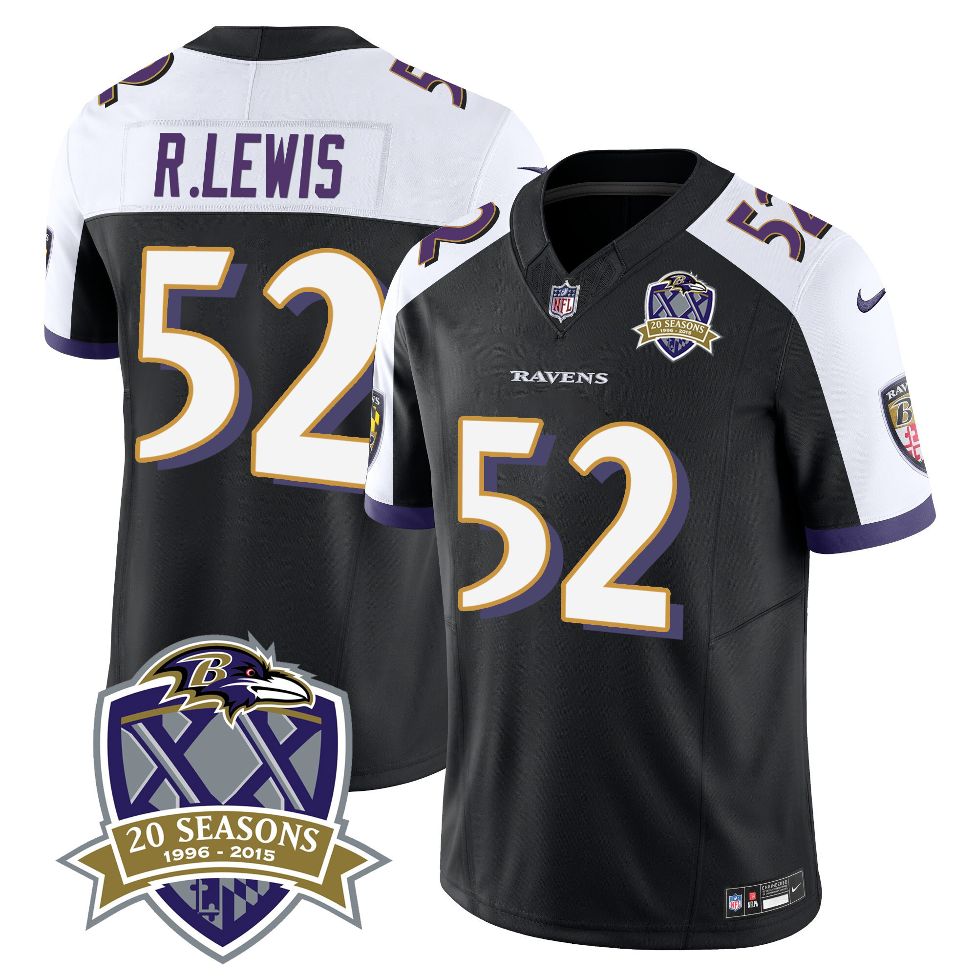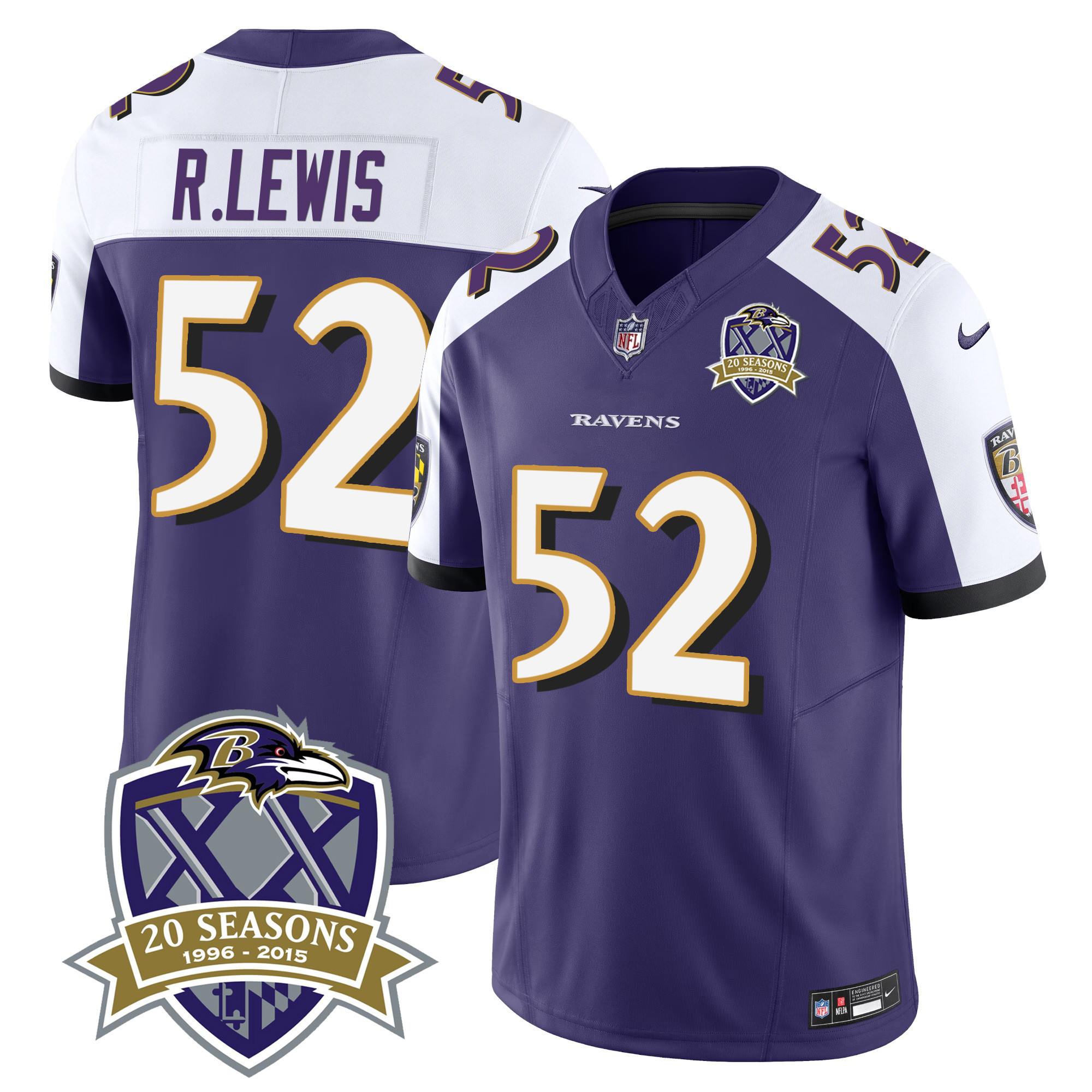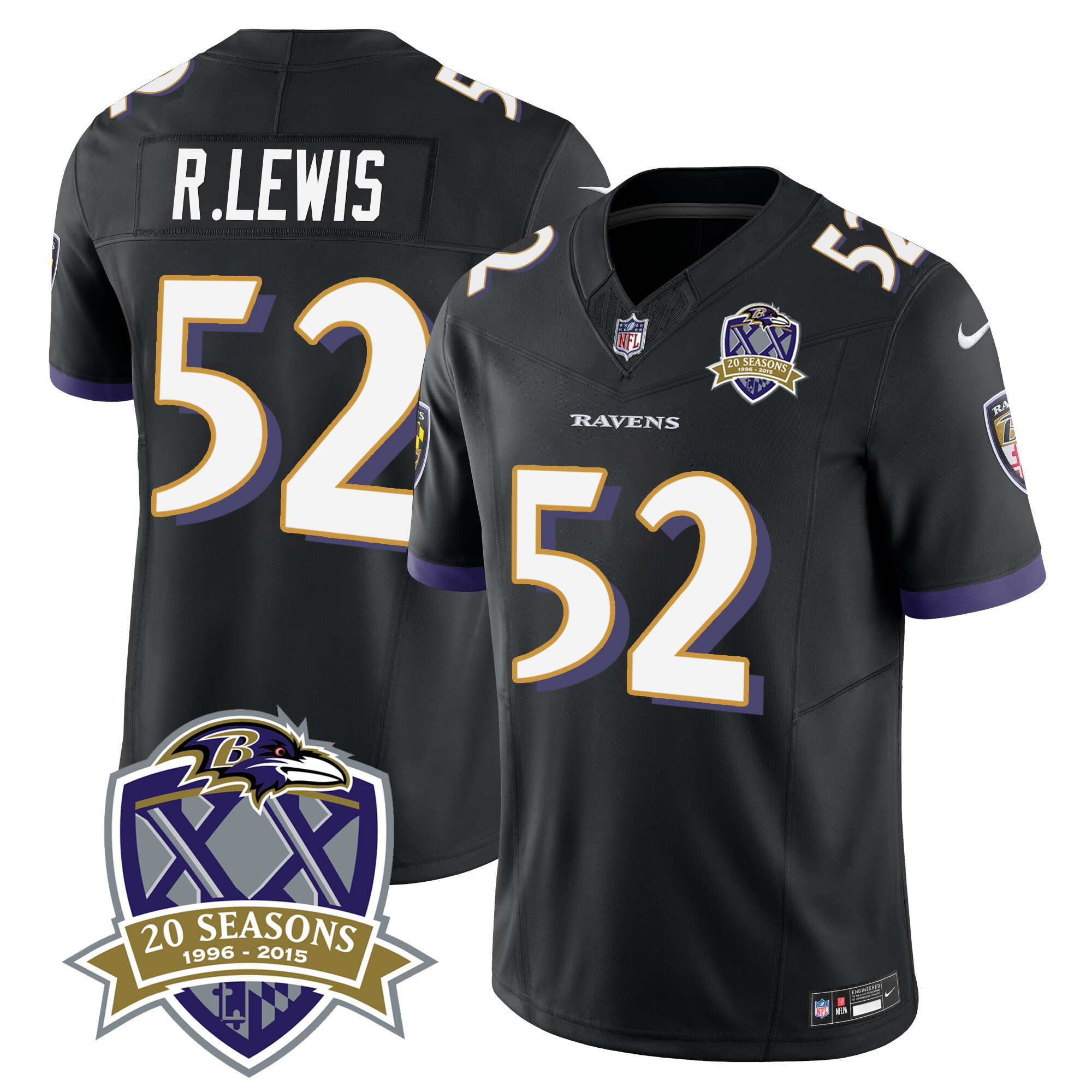 Men’s Ravens 20th Season Patch Vapor Limited Jersey – All Stitched