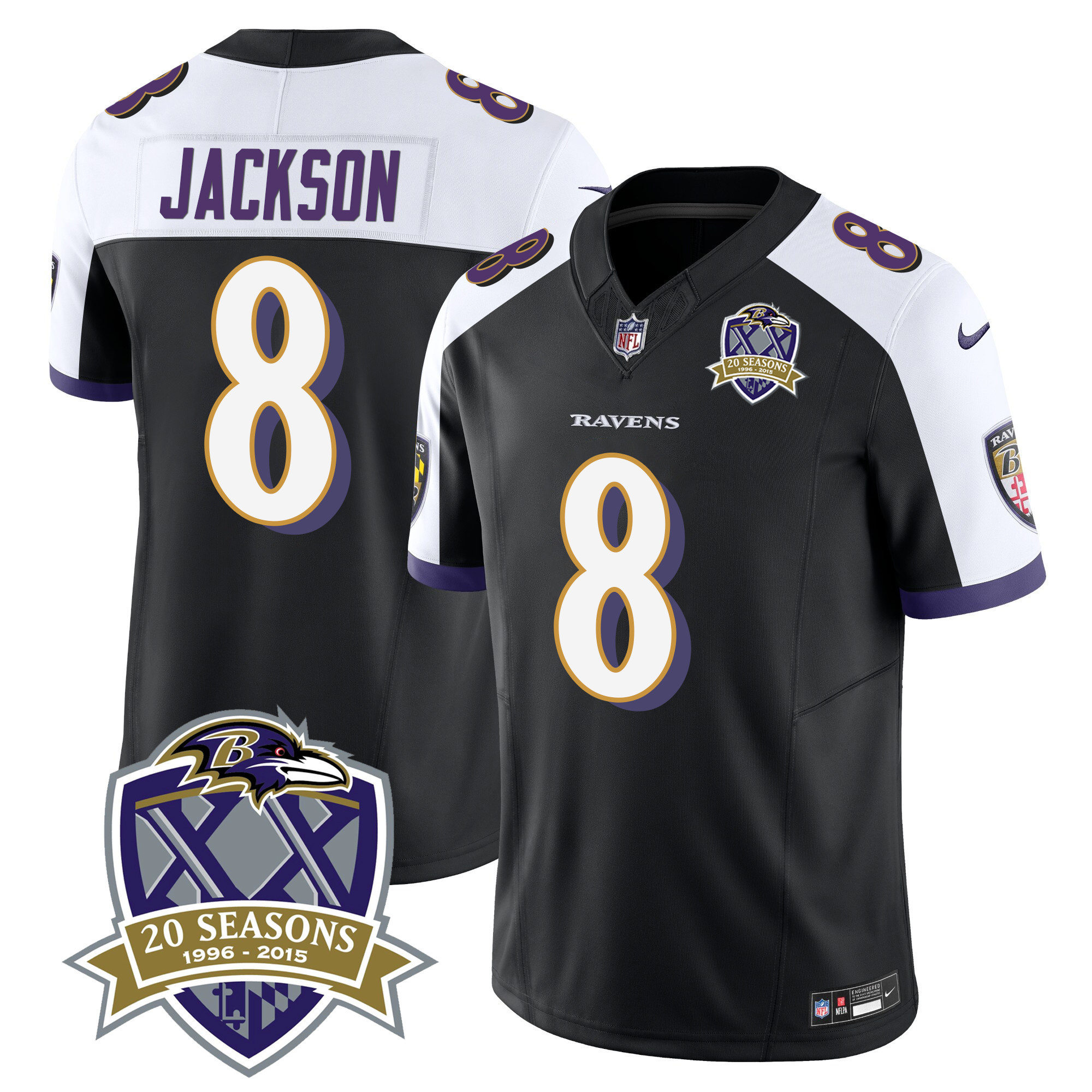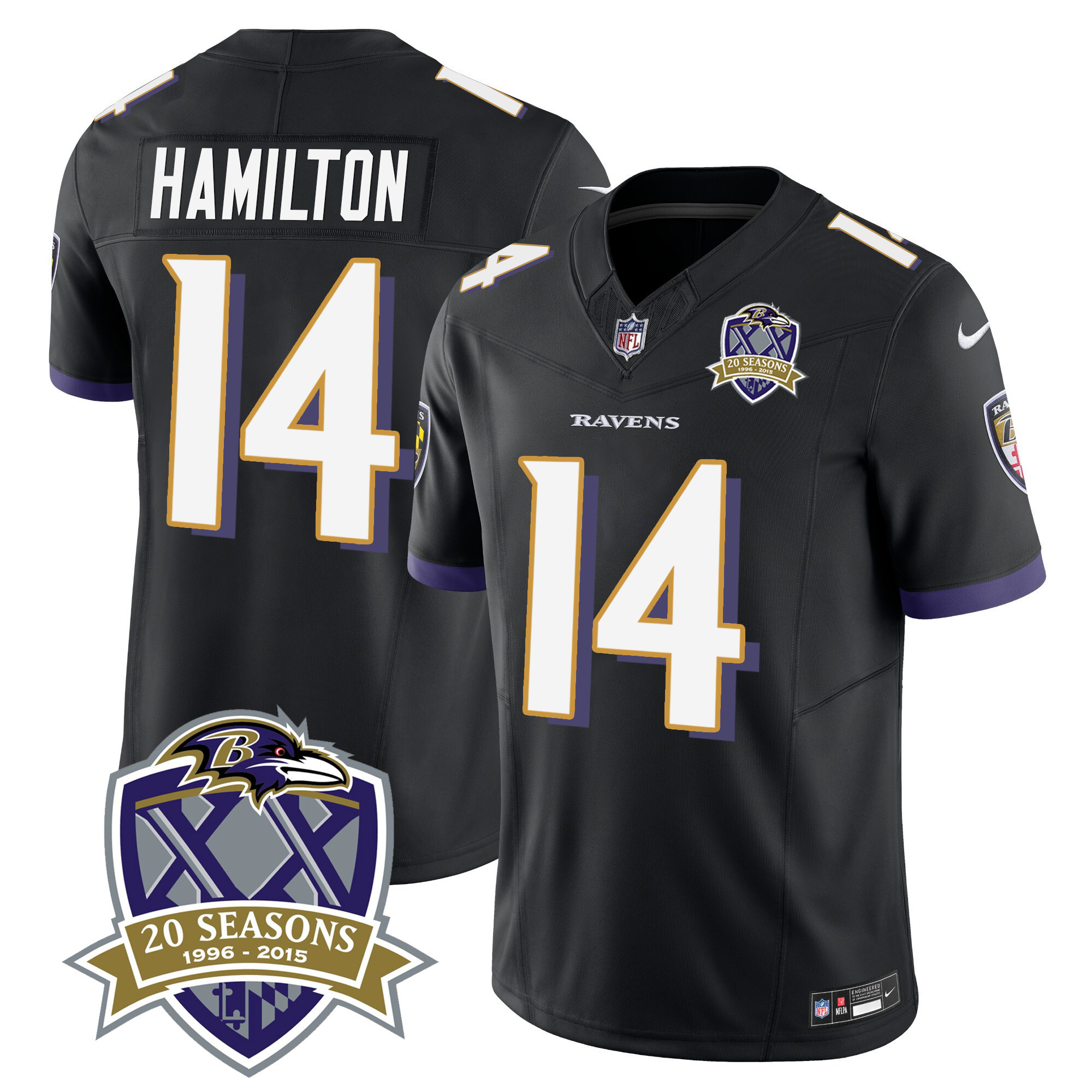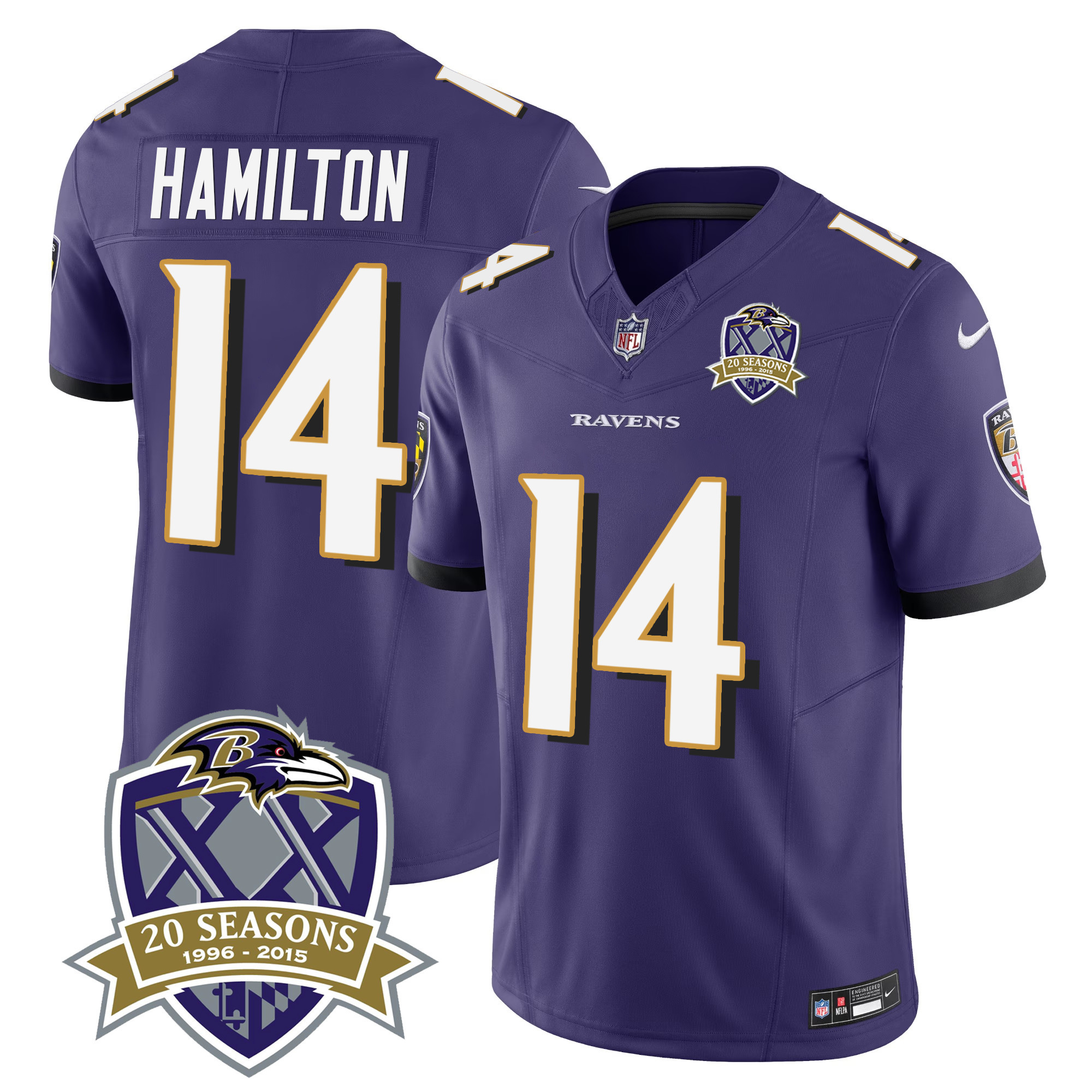 Men’s Ravens 20th Season Patch Vapor Limited Jersey – All Stitched