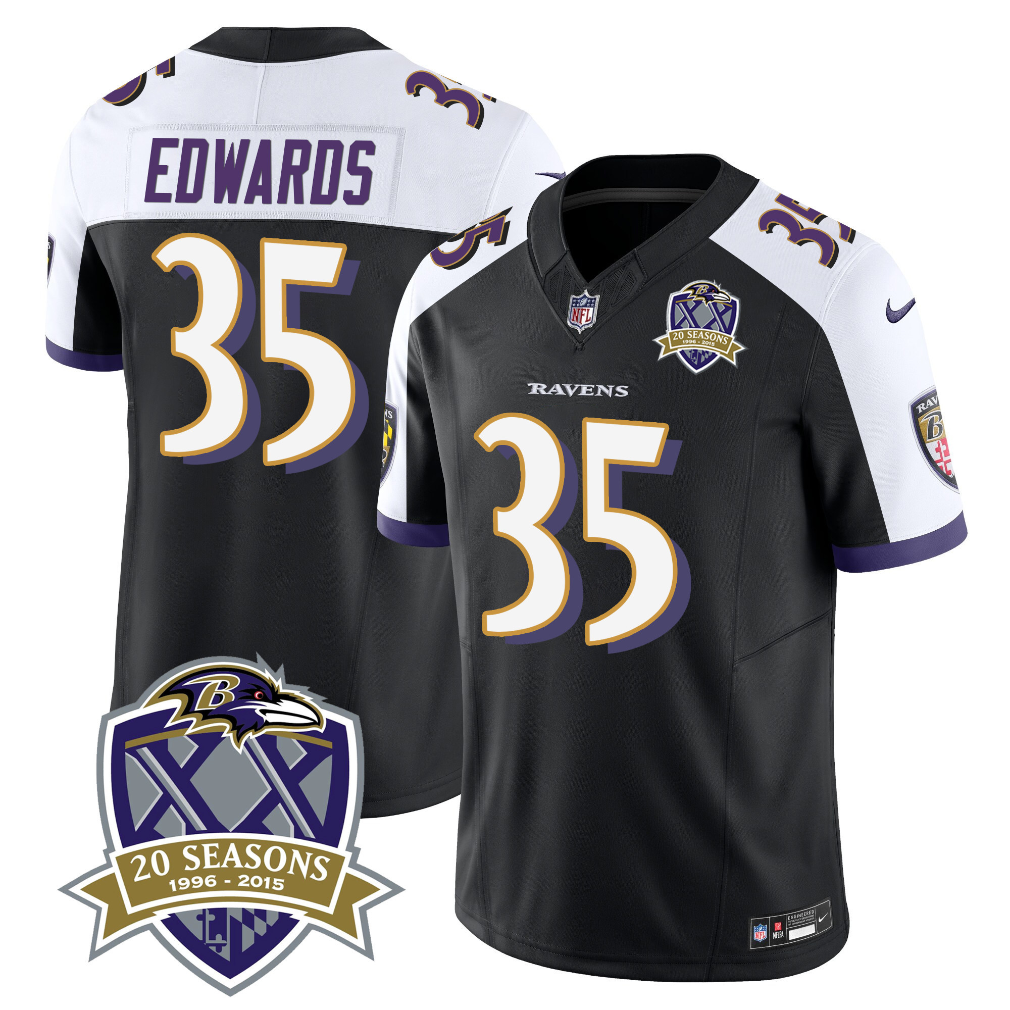 Men’s Baltimore Ravens 2025 Vapor Baseball Jersey – 30th Anniversary Patch – All Stitched