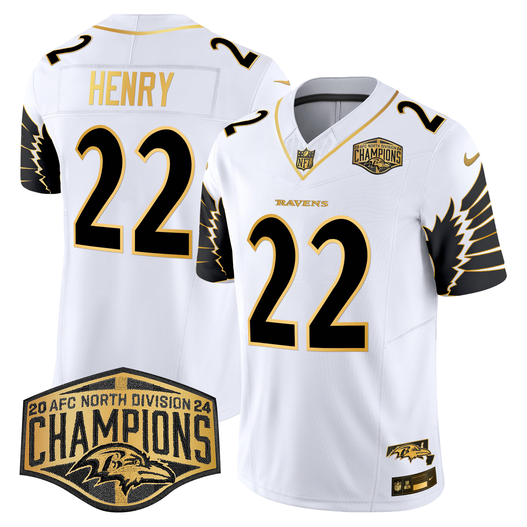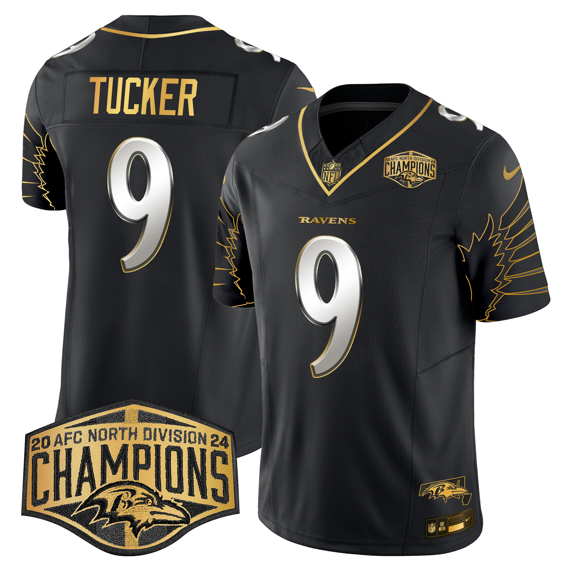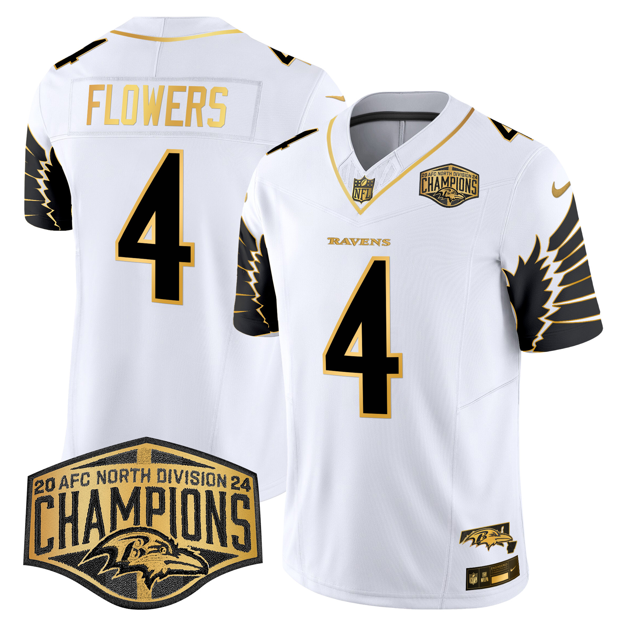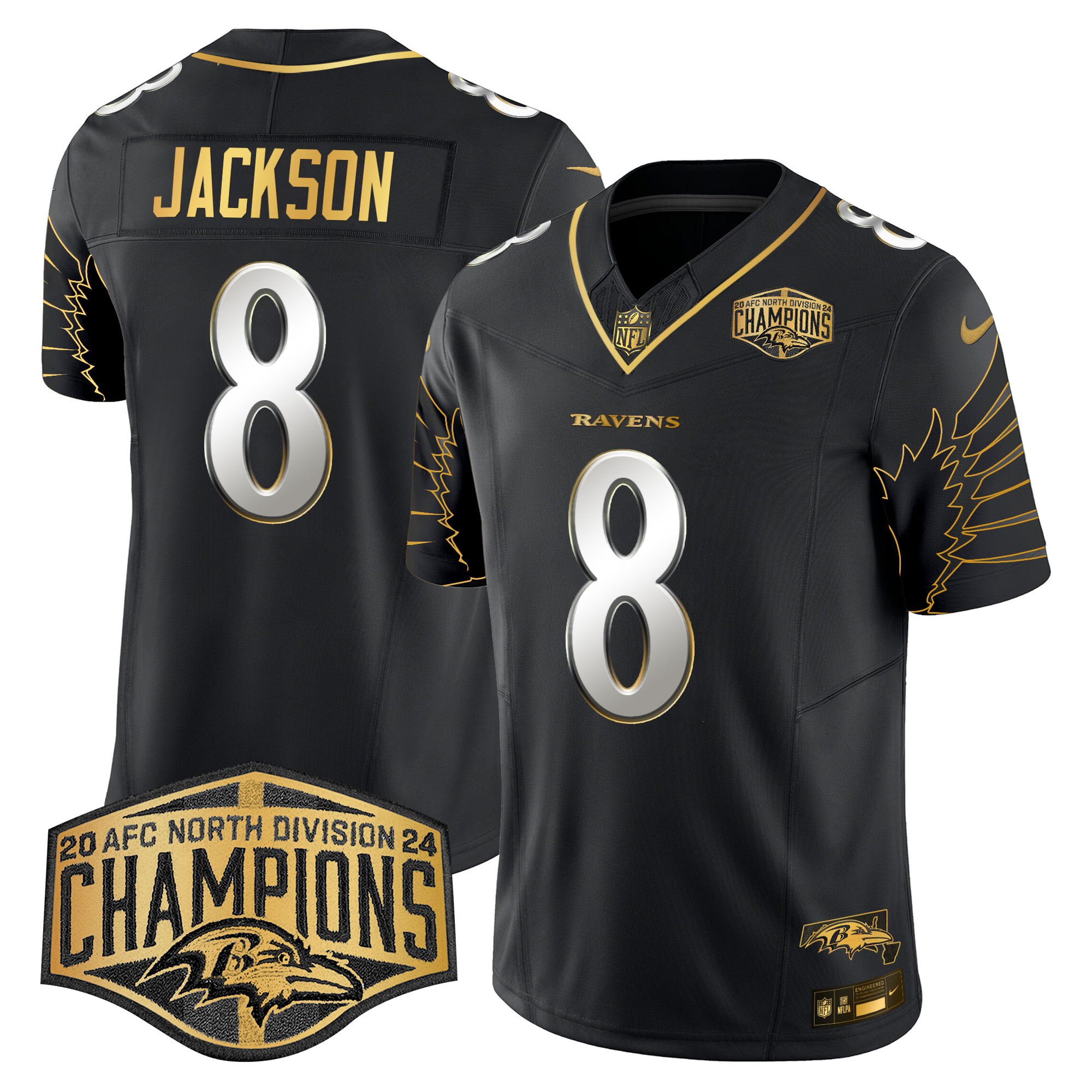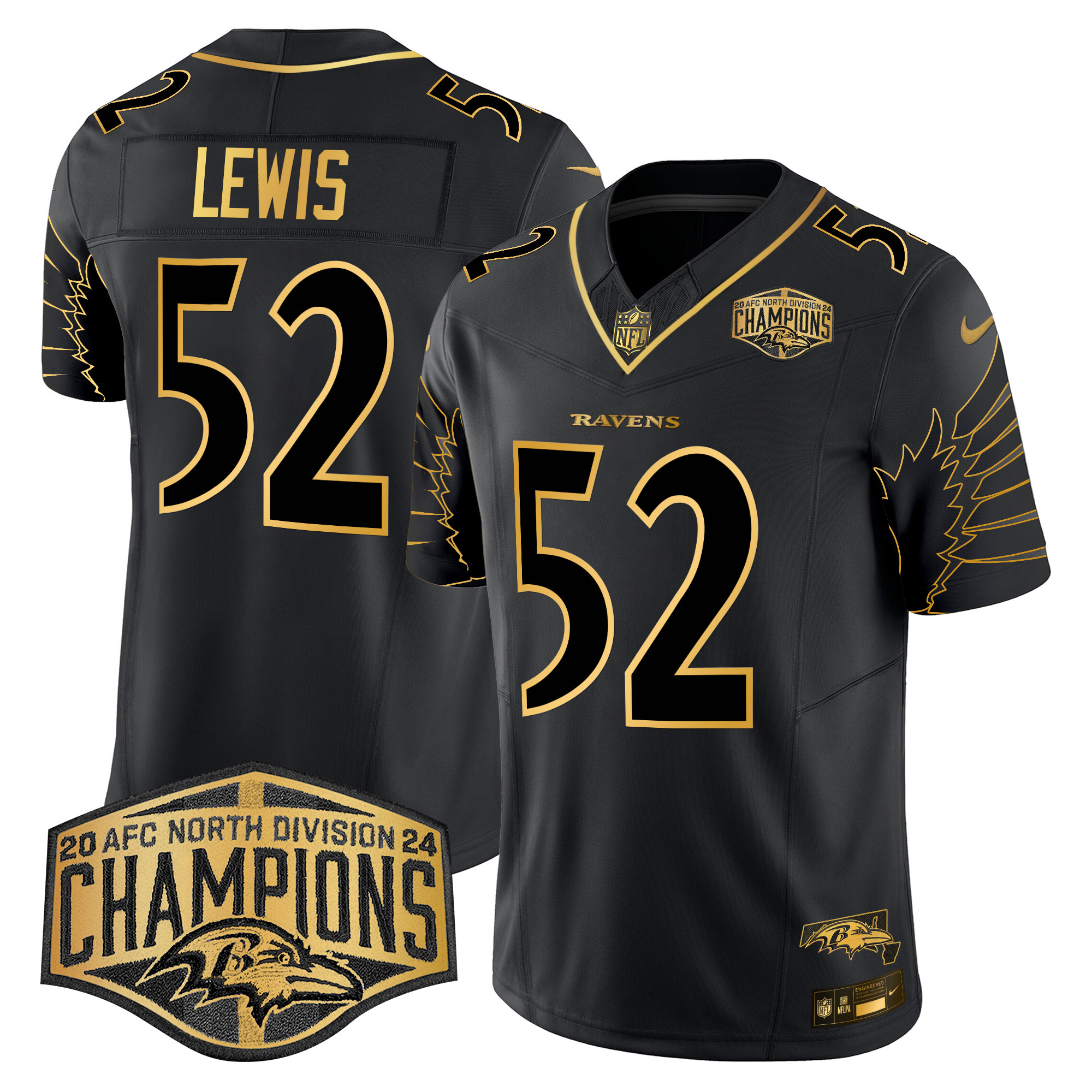 Men’s Ravens Maryland 2024 AFC North Division Champions Patch Gold Vapor Limited Jersey – All Stitched