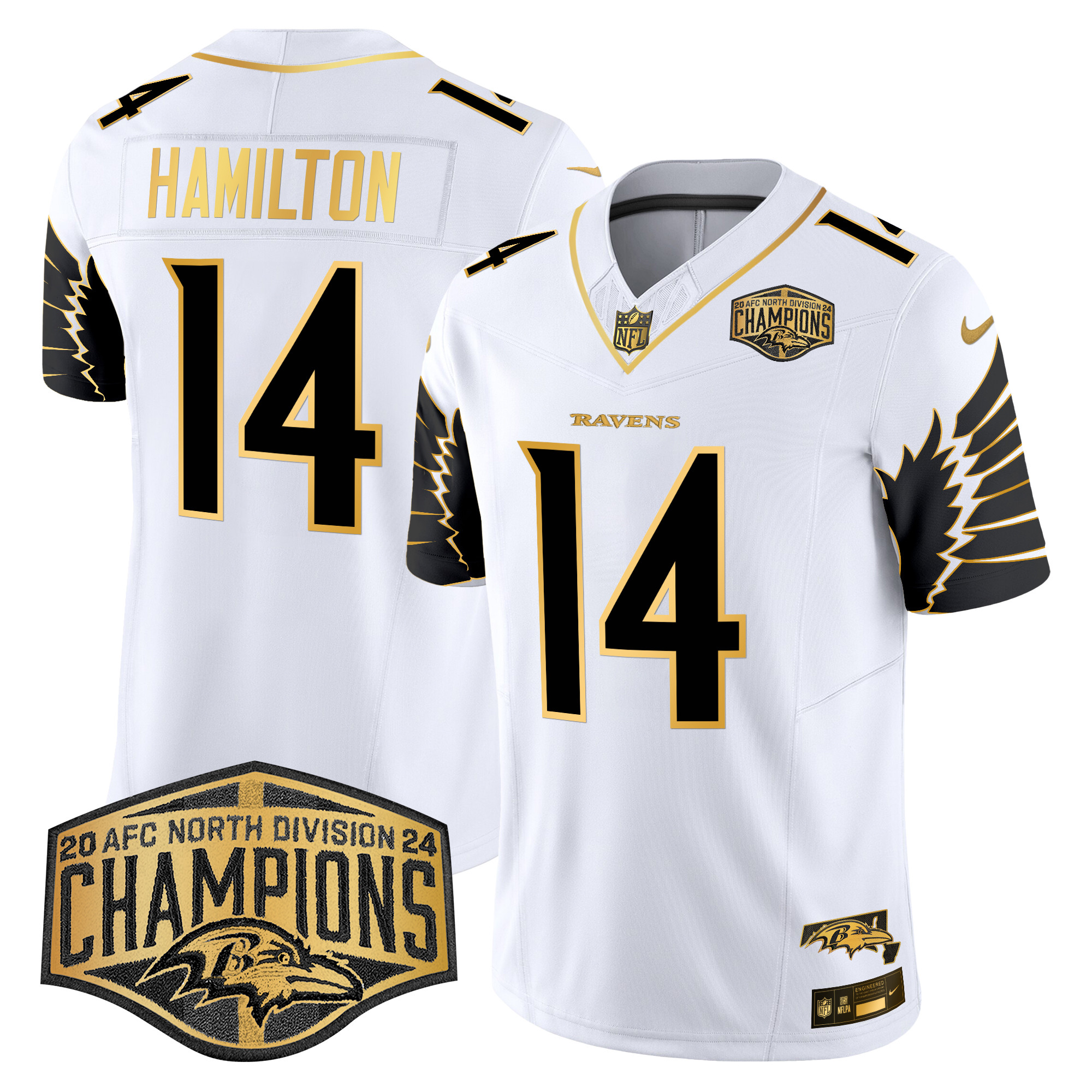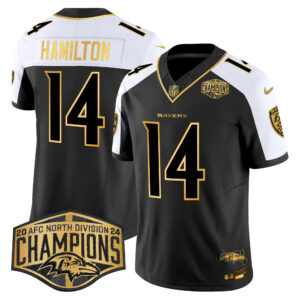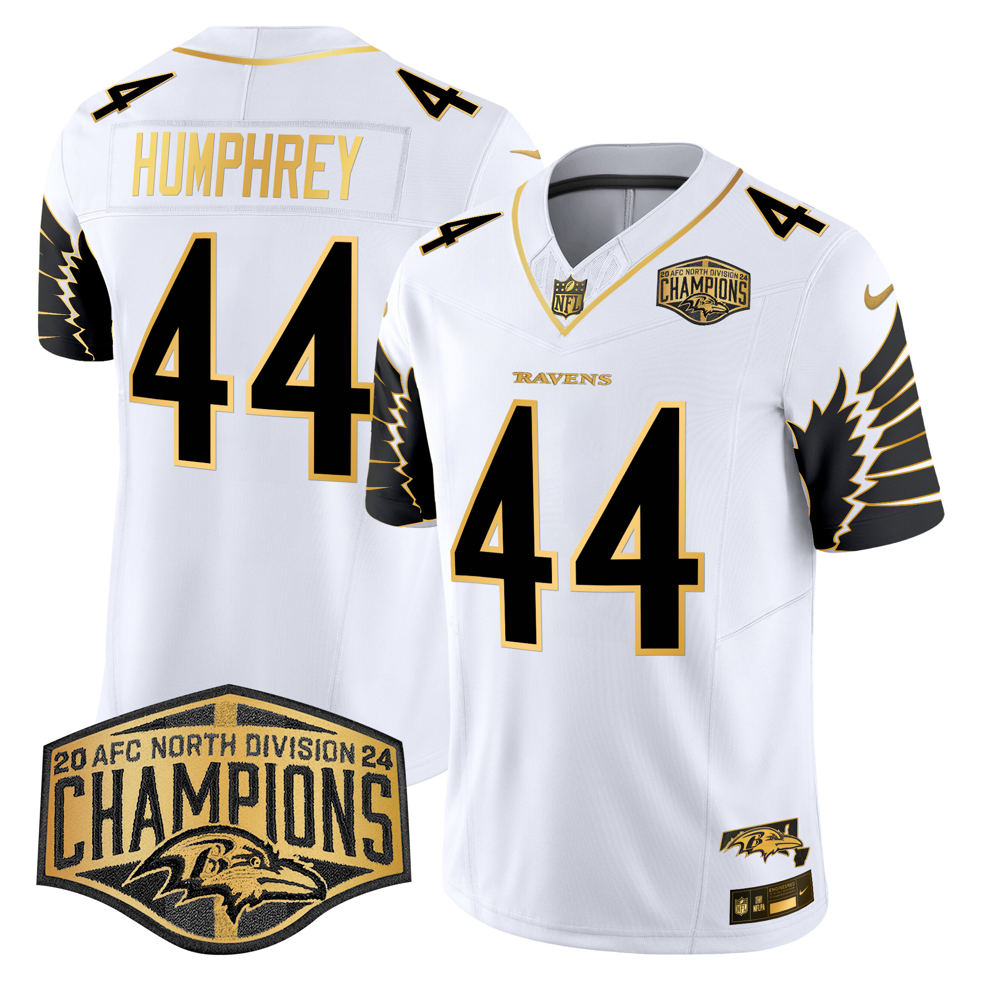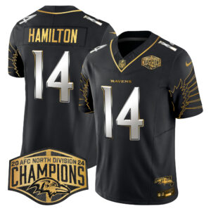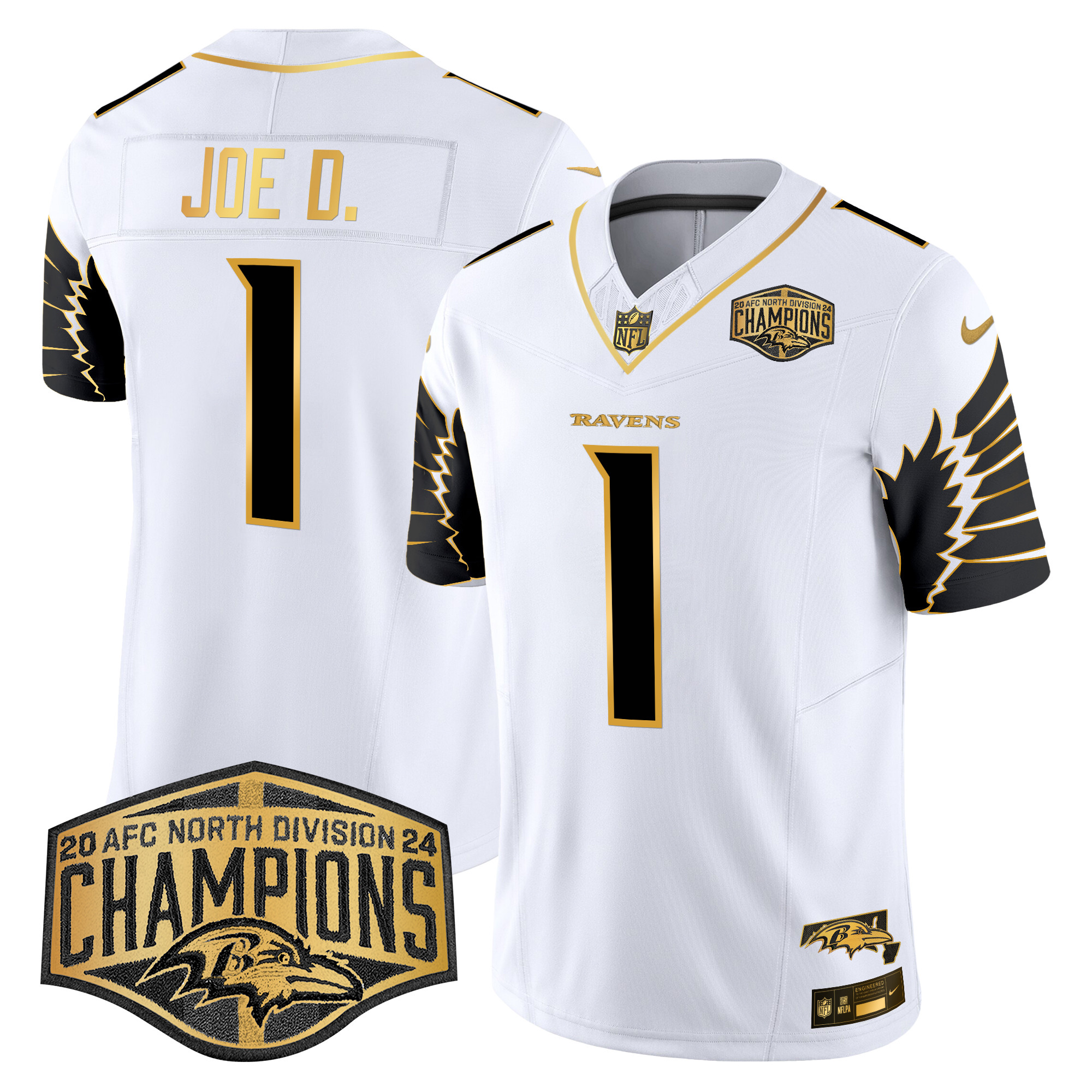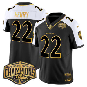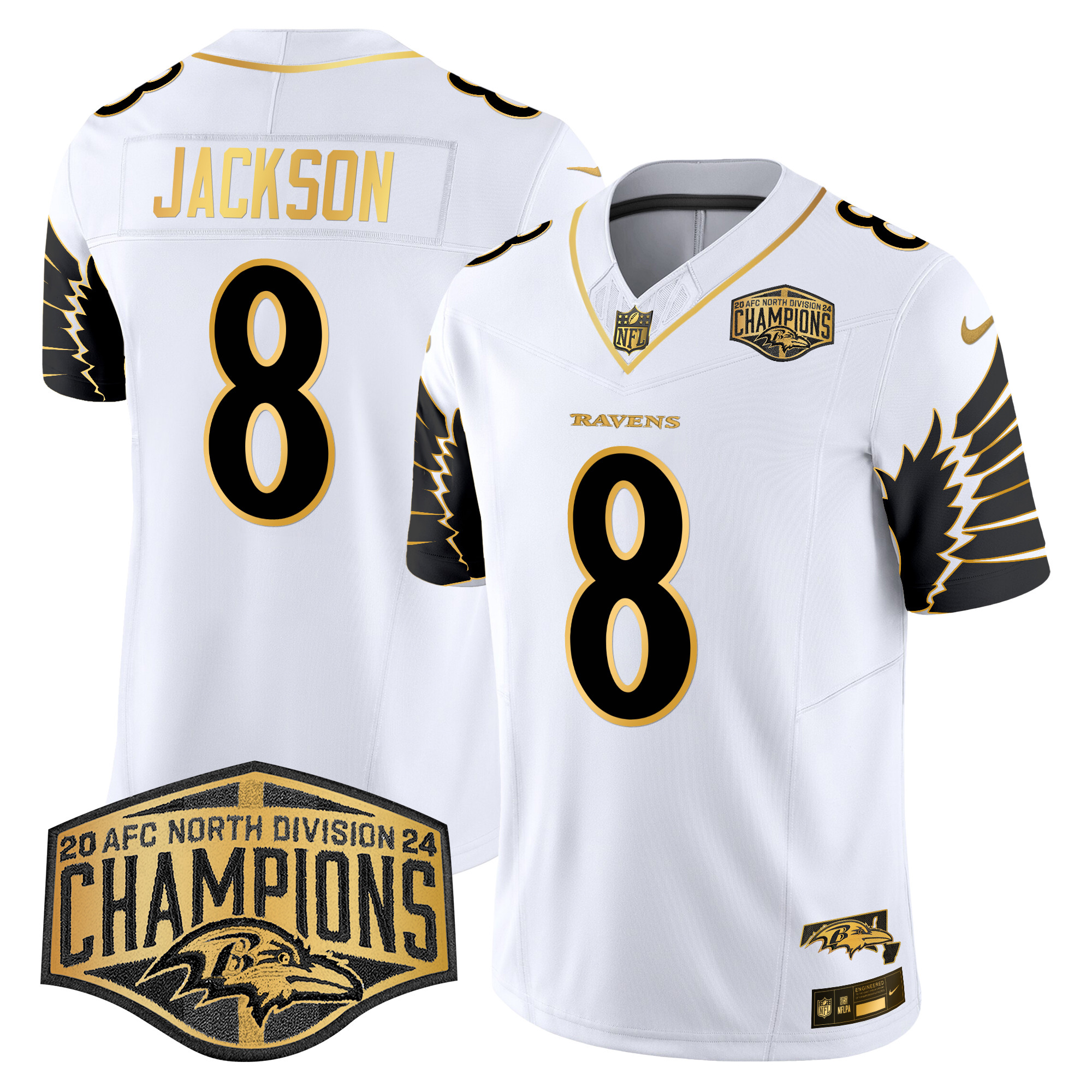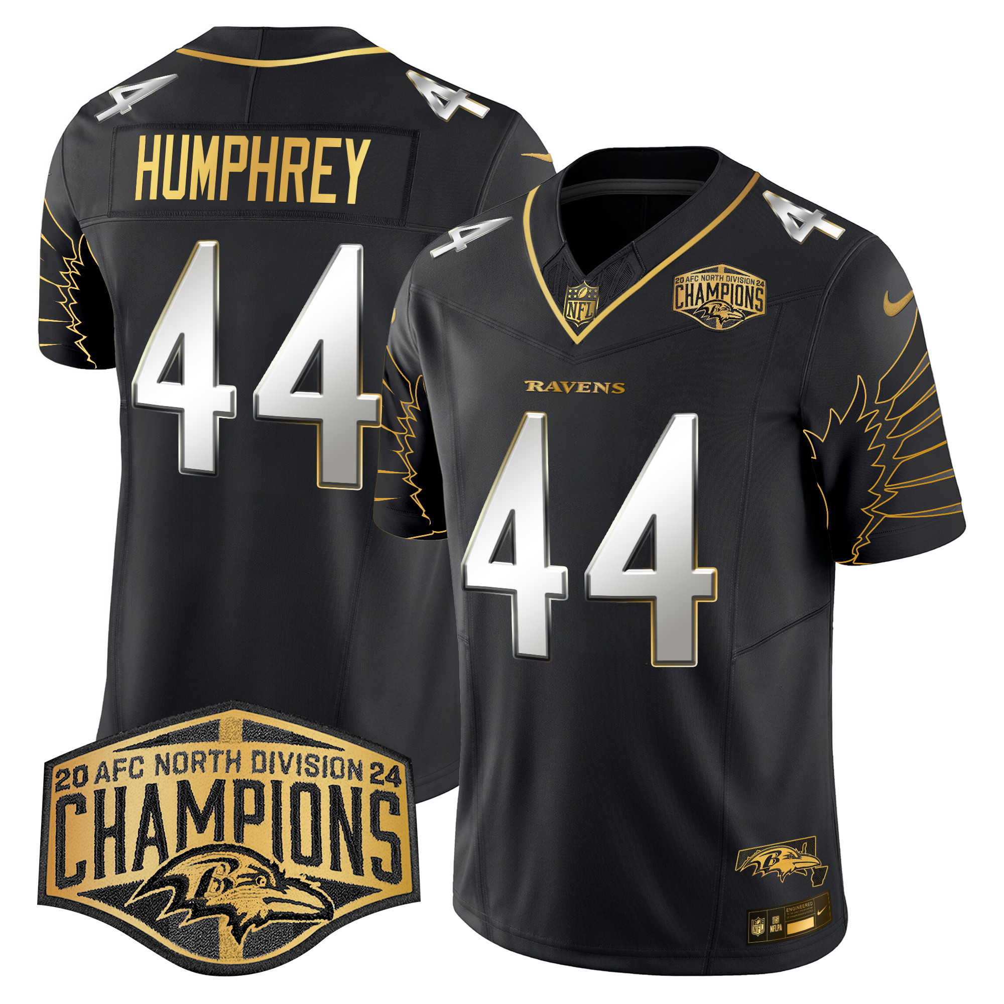 Men’s Ravens Maryland 2024 AFC North Division Champions Patch Gold Vapor Limited Jersey – All Stitched